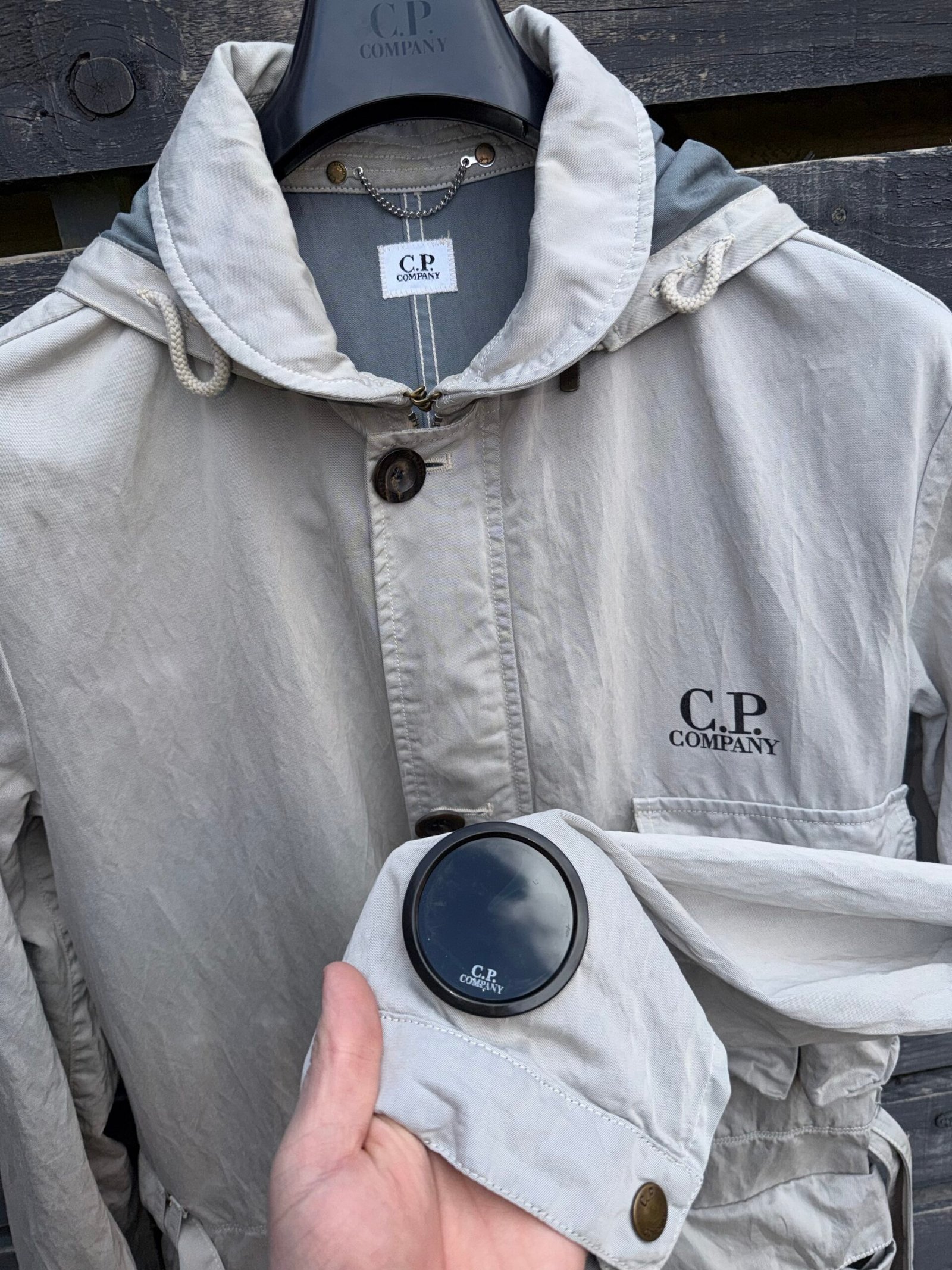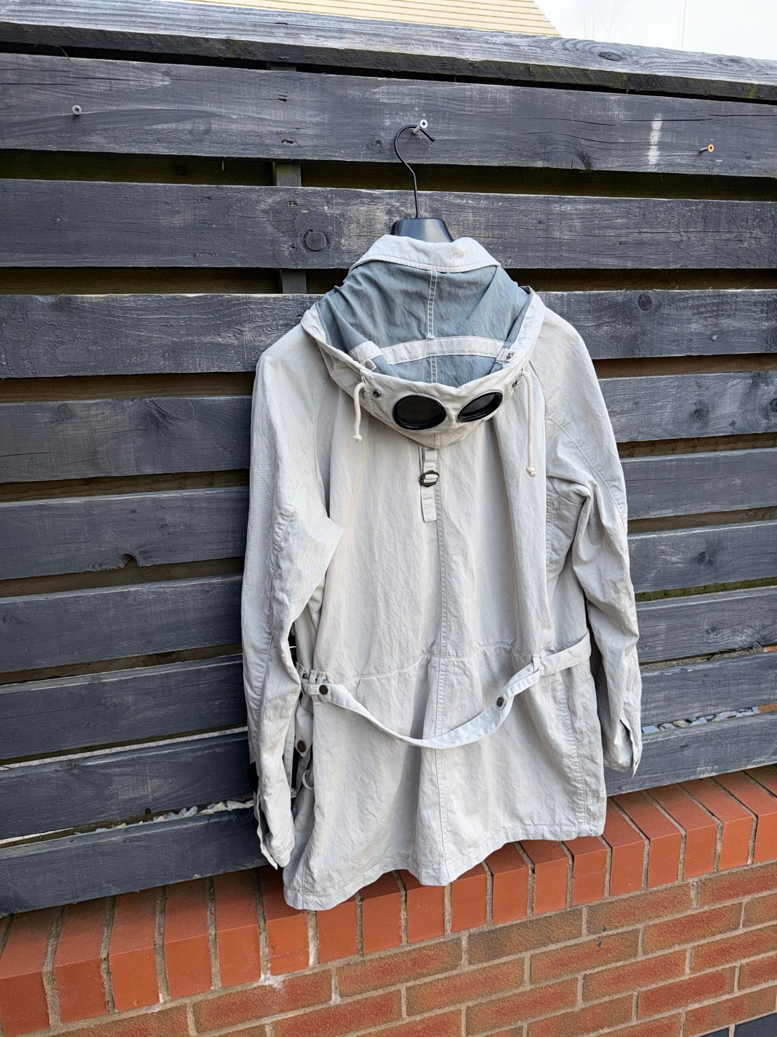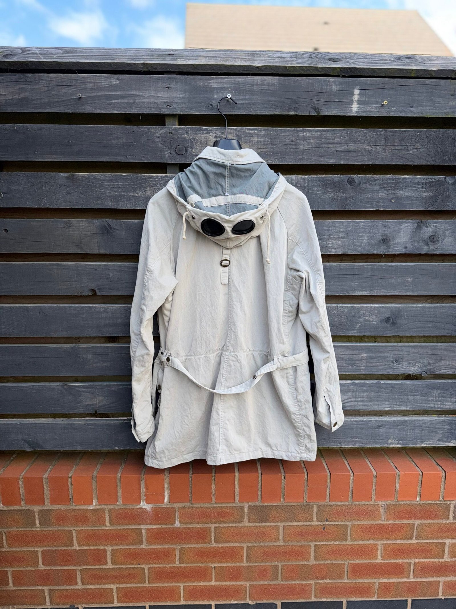 C.P. Company Belted Mille Miglia Jacket from 2010 — a proper archival piece from the brand’s most iconic line. Features the signature watchviewer lens on the sleeve, originally designed for drivers, alongside a belted waist for a structured, functional fit. Built with durable, technical fabric and packed with utility detailing, this is classic C.P. innovation with that unmistakable goggle-era aesthetic. A standout bit of terrace heritage that rarely comes up. Very good condition. Please Note this item is pre-owned and may show minor signs of wear.