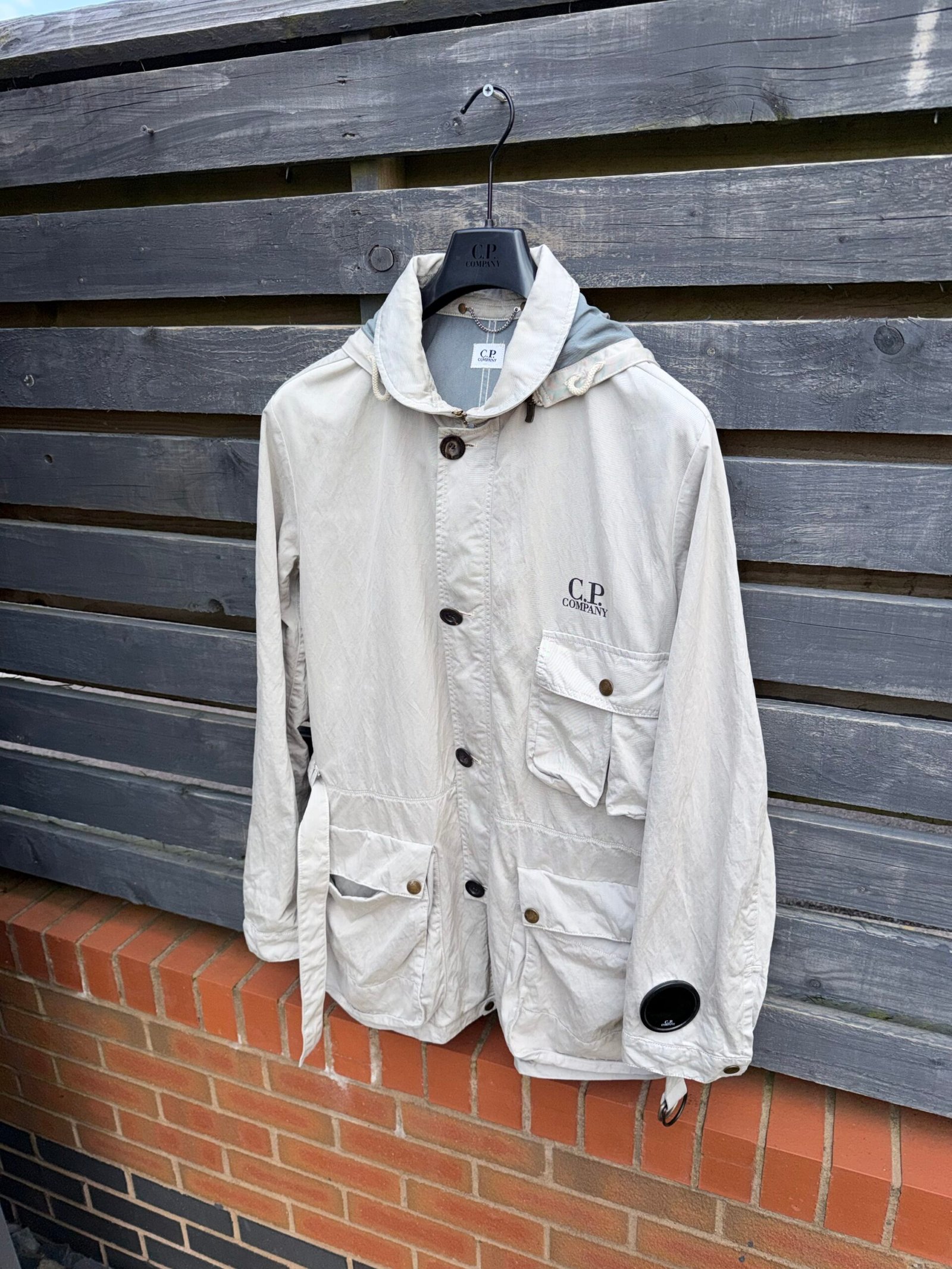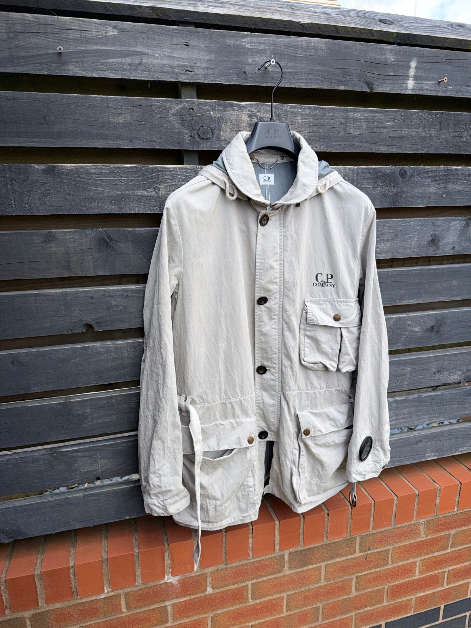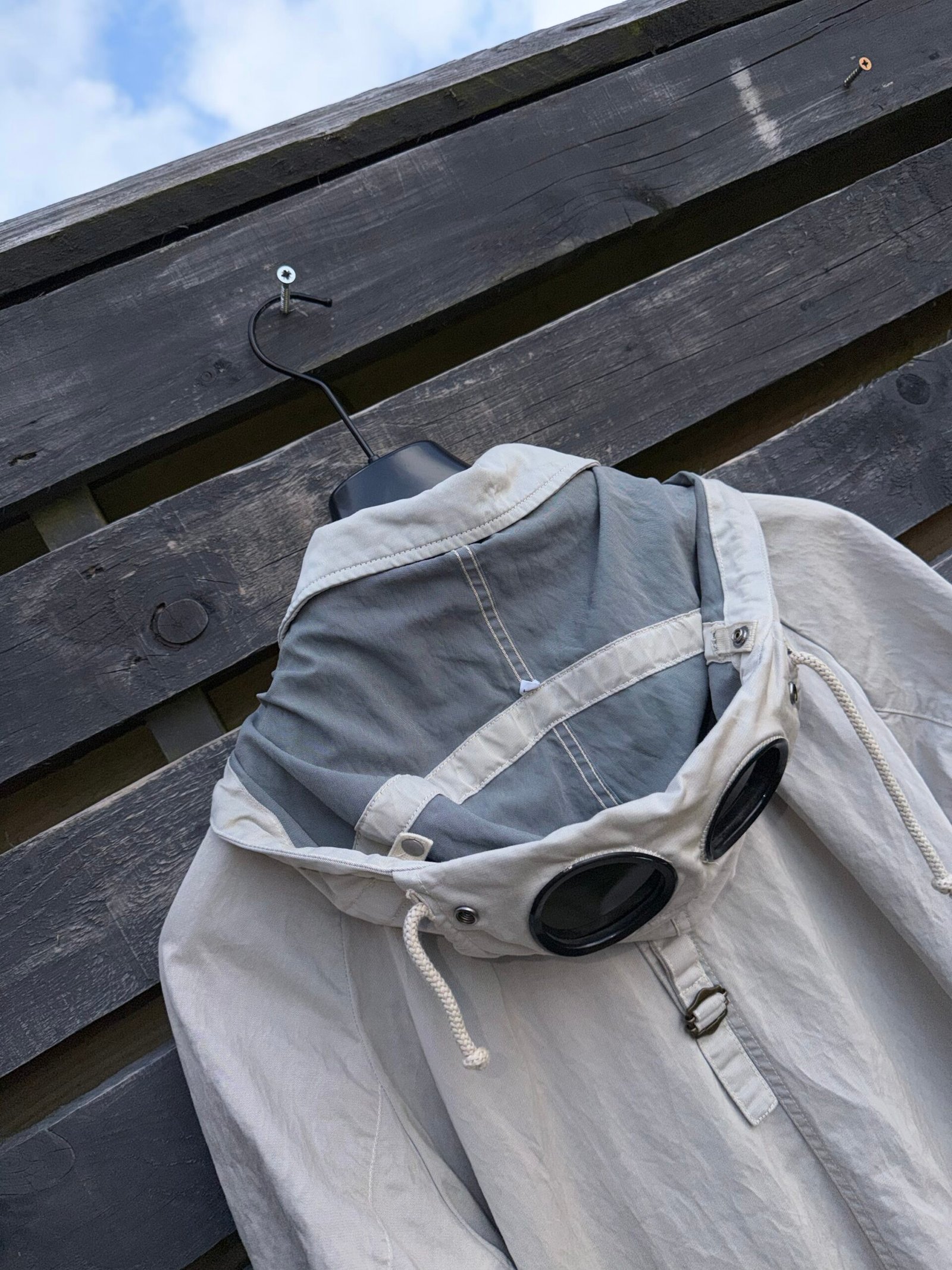 C.P. Company Belted Mille Miglia Jacket from 2010 — a proper archival piece from the brand’s most iconic line. Features the signature watchviewer lens on the sleeve, originally designed for drivers, alongside a belted waist for a structured, functional fit. Built with durable, technical fabric and packed with utility detailing, this is classic C.P. innovation with that unmistakable goggle-era aesthetic. A standout bit of terrace heritage that rarely comes up. Very good condition. Please Note this item is pre-owned and may show minor signs of wear.