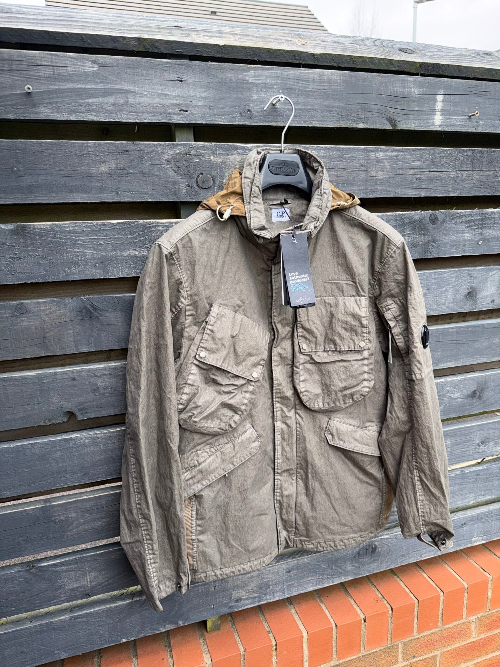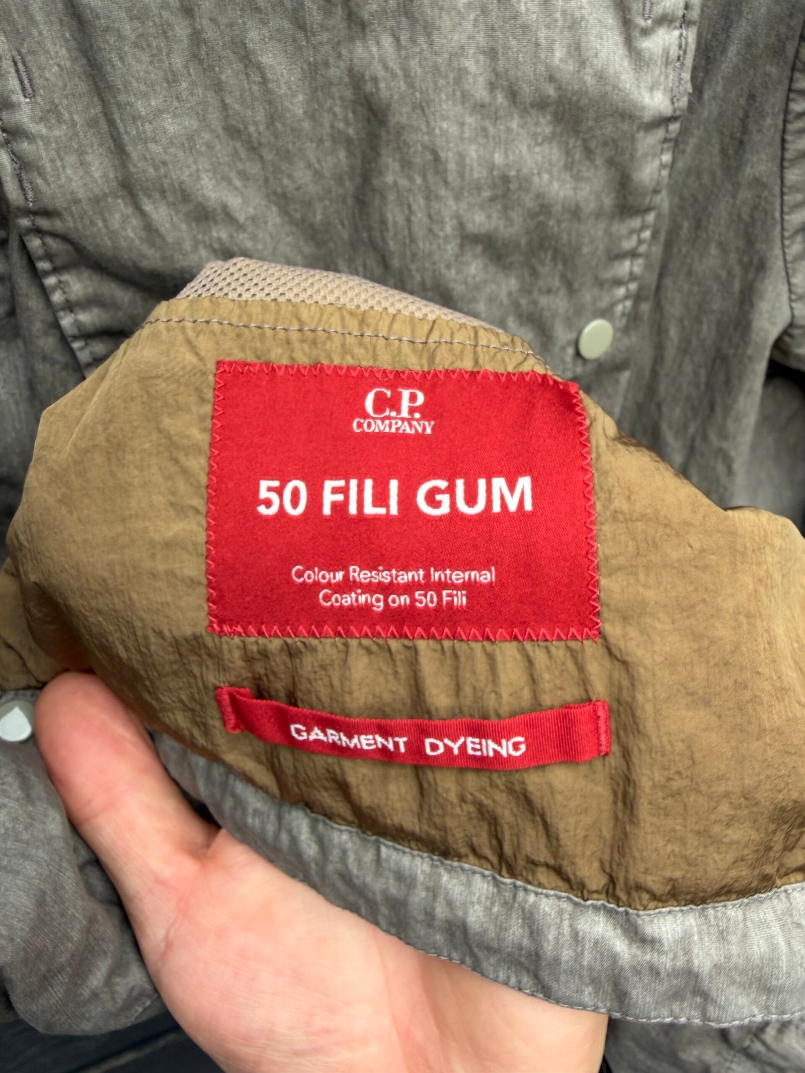 The CP Company 50 Fili Gum Arm Lens Jacket is a true icon of Italian sportswear heritage. Crafted from C.P. Company’s signature 50 Fili Gum fabric – a tightly woven cotton/nylon blend finished with a subtle polyurethane coating – it delivers a structured feel with light water resistance and a distinctive matte sheen.