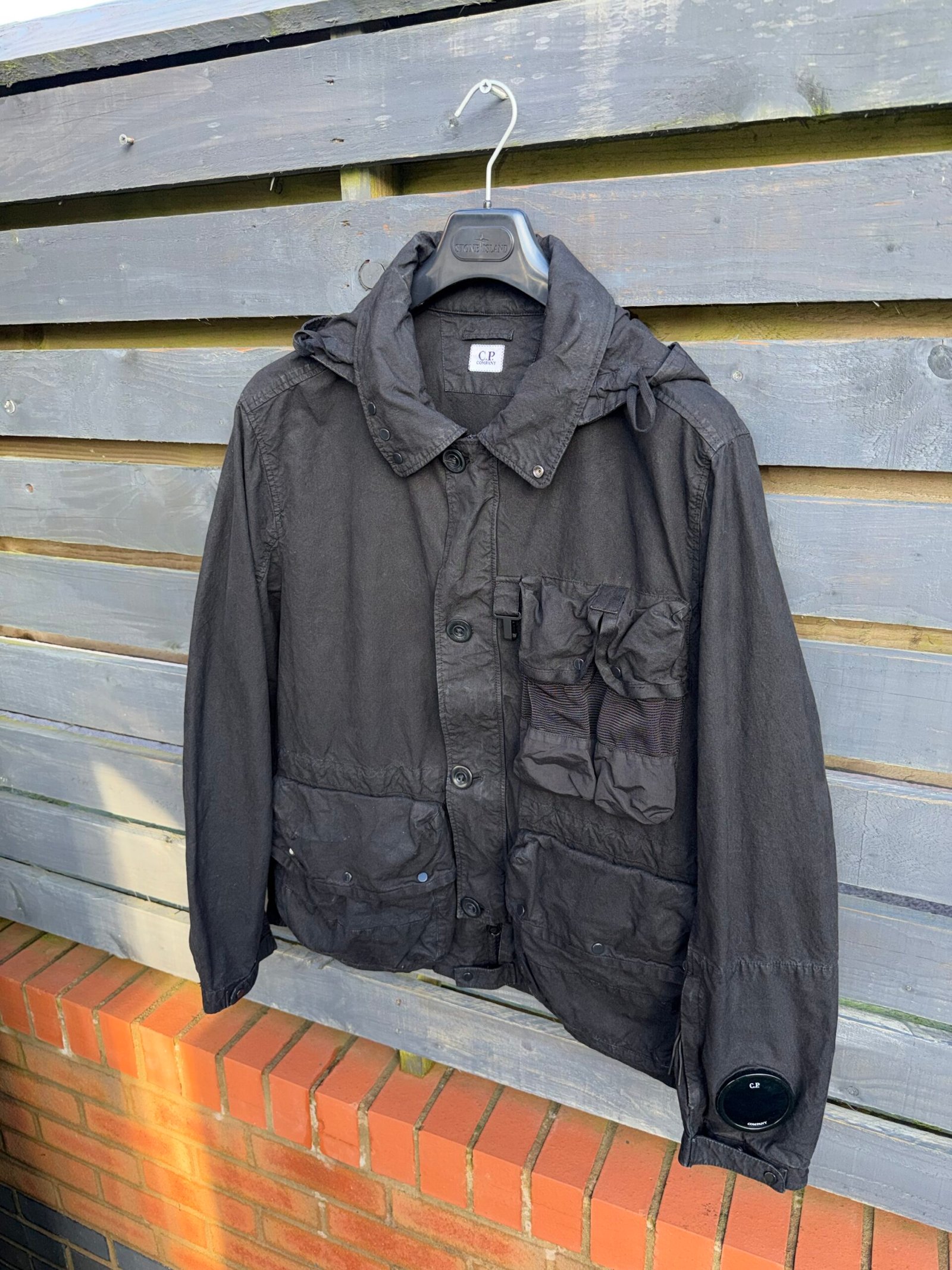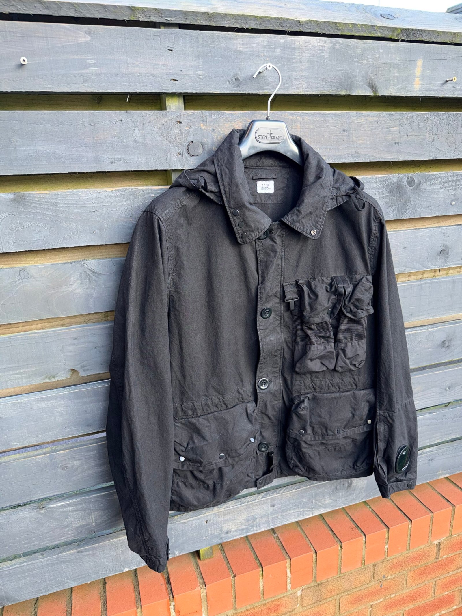 Technical outerwear staple crafted from BA-TIC fabric — garment dyed for depth of colour with a lightweight yet durable finish. Features the iconic Mille Miglia watchviewer lens to the hood and sleeve, combining performance detailing with signature C.P. Company design. Functional, distinctive and built with that unmistakable terrace heritage edge. Very good condition. Please Note this item is pre-owned and may show minor signs of wear.