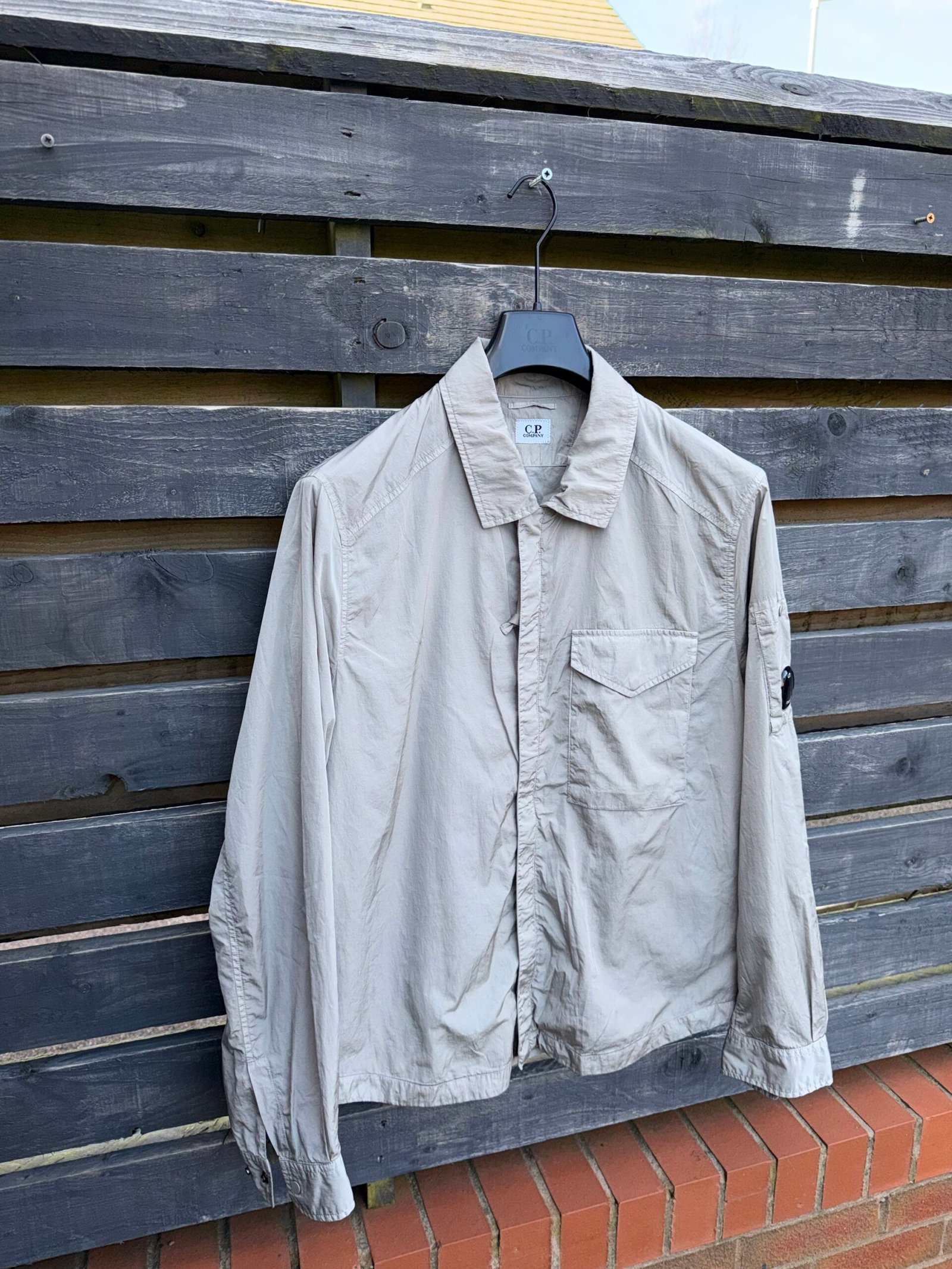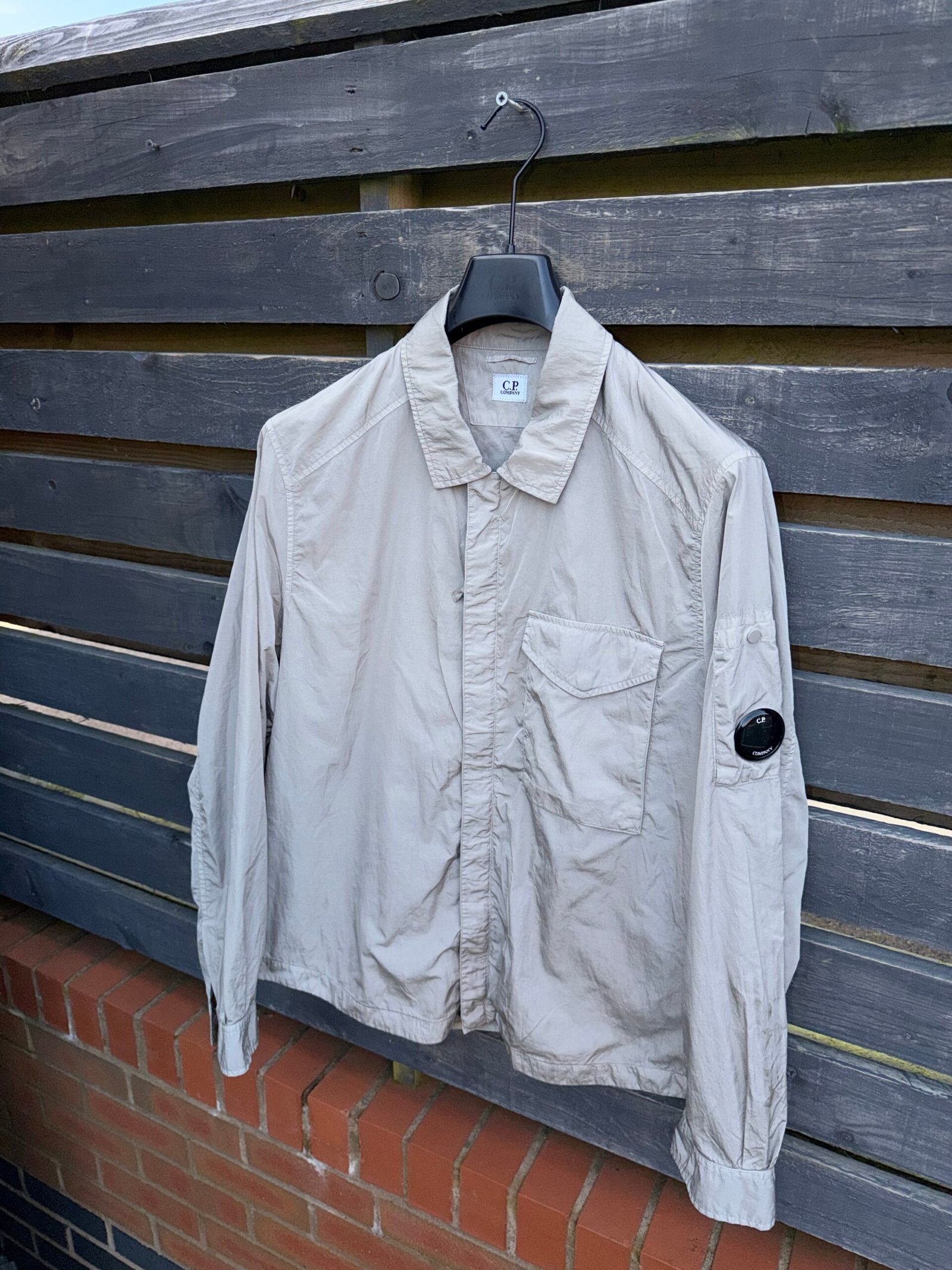 The CP Company Chrome-R Arm Lens Overshirt in Grey is a lightweight technical layer made from recycled Chrome-R nylon, offering a subtle sheen with durable, wind-resistant performance. Designed with a clean overshirt silhouette, it features a full zip front, functional pockets, and adjustable details for everyday practicality. The signature arm lens detail adds the iconic CP Company touch, blending utility with a modern, street-ready aesthetic in a versatile grey finish. Very good condition. Please Note this item is pre-owned and may show minor signs of wear
