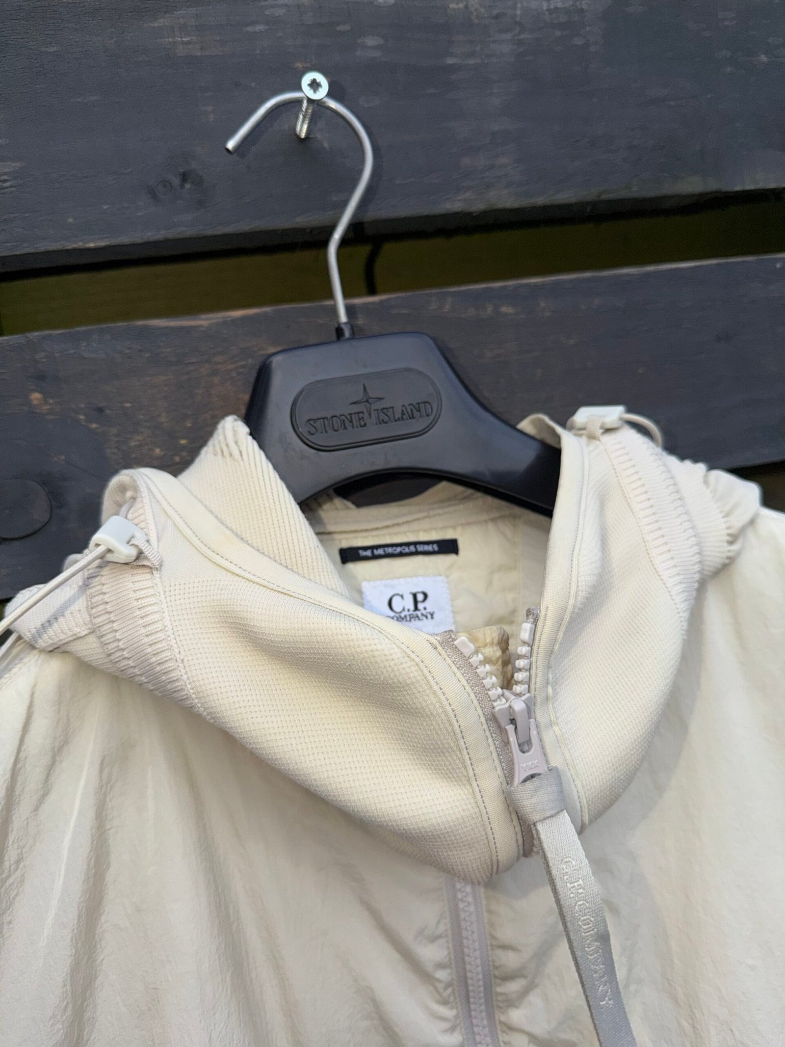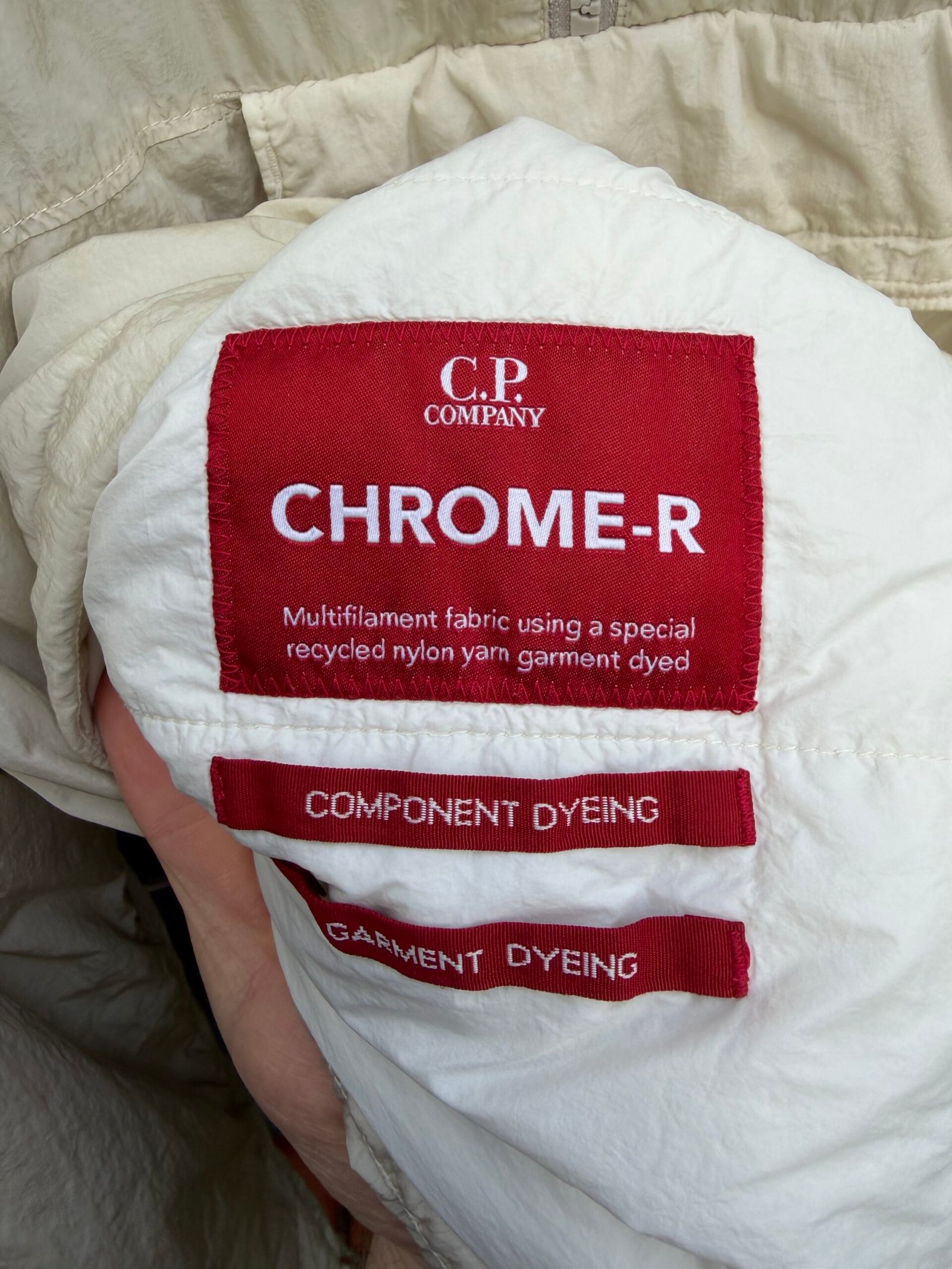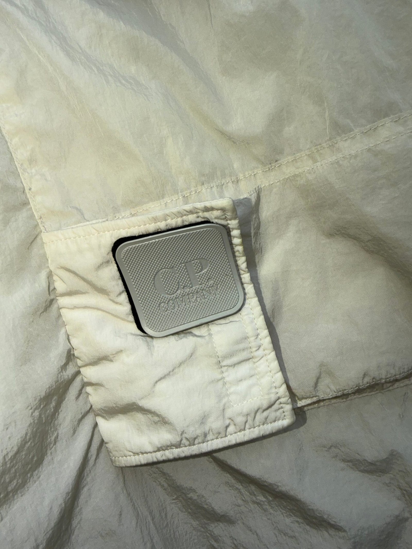 A standout technical smock from C.P. Company’s Metropolis line crafted in Chrome‑R, a recycled multifilament nylon that’s durable, garment‑dyed, and subtly weather‑resistant. Featuring a relaxed pullover silhouette with a quarter‑zip, ventilated hood, adjustable hem and hood, and practical utility pockets, it blends functional design with modern urban style. With quilted insulation for added warmth and the brand’s signature utilitarian touches like a bold logo patch, this smock is perfect for layering or as a statement outer layer in transitional weather. Very good condition. Please Note this item is pre-owned and may show minor signs of wear.