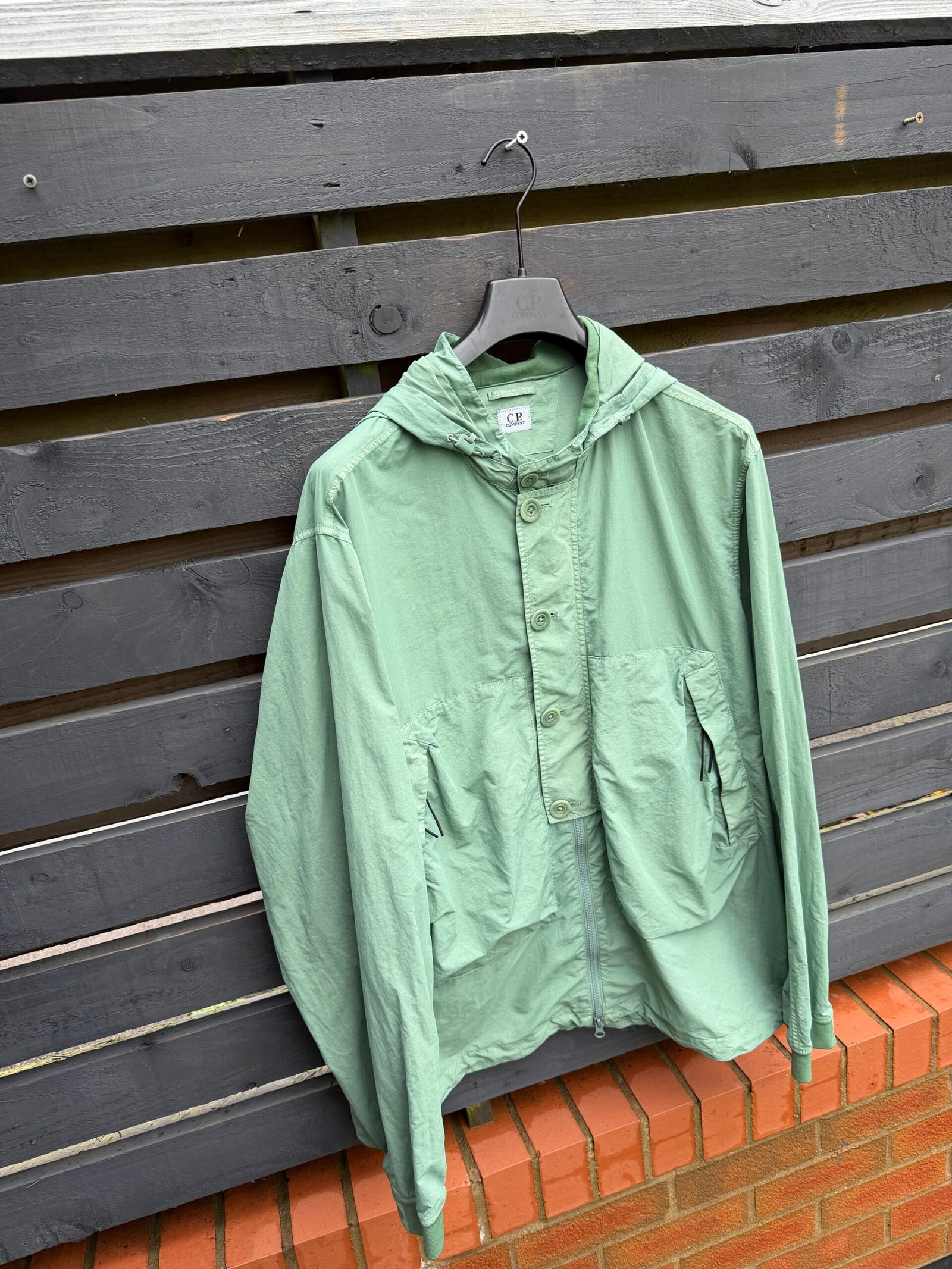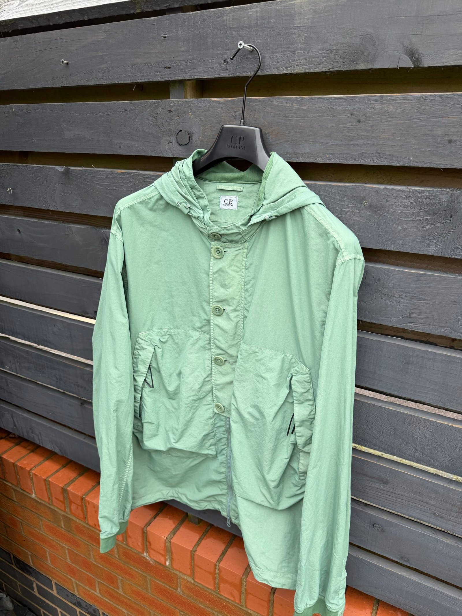 This jacket is crafted from the signature “Flatt Nylon” fabric by C.P. Company — a matt-finished, sand-effect nylon that gives a subtle lived-in texture with a premium feel.