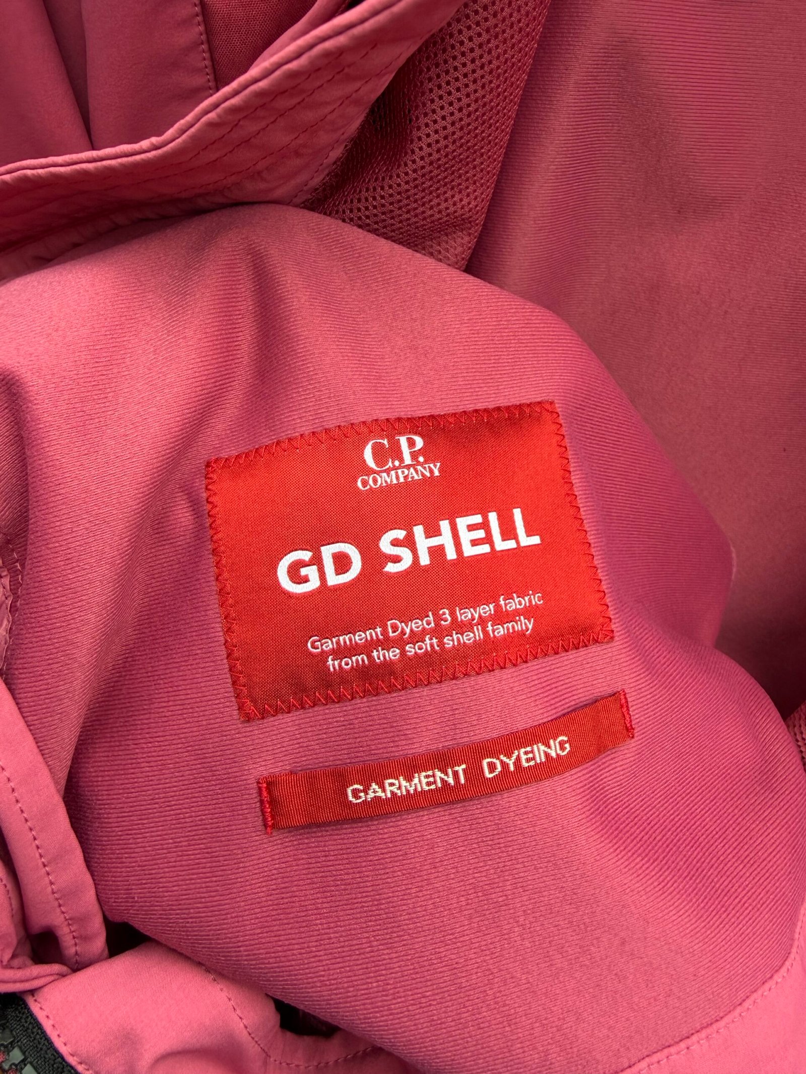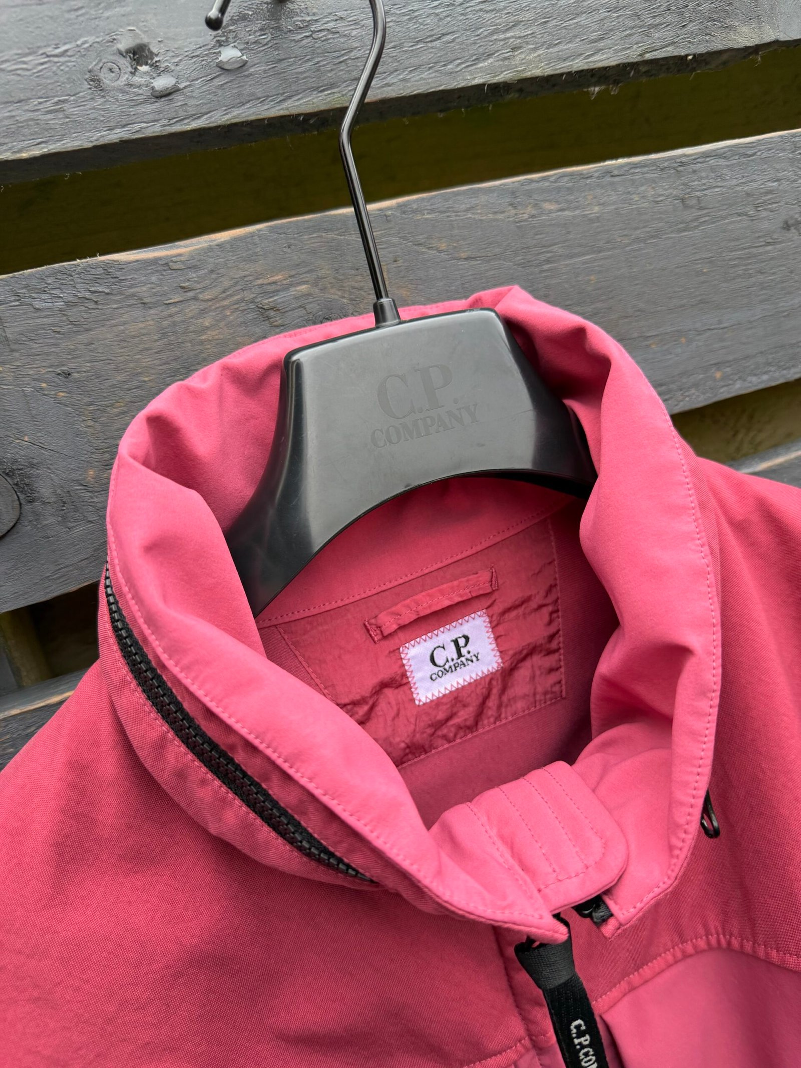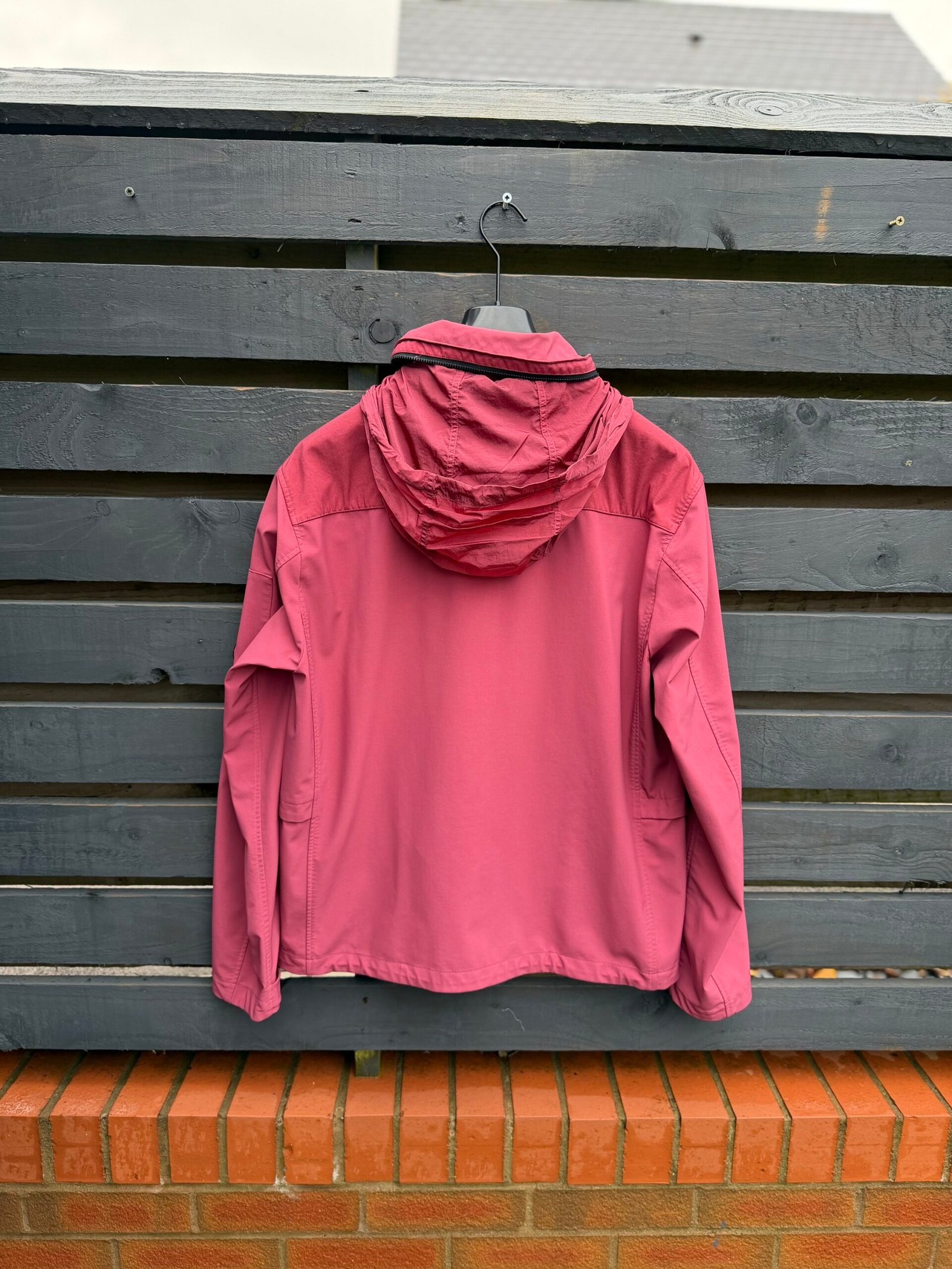 C.P. Company GD Shell Goggle Jacket – Pink. Engineered in a 3‑layer soft‑shell fabric, this piece features the signature goggle hood, full zip front, two external and two internal pockets, elasticated cuffs, and an adjustable hem and hood for optimal fit. Nylon shell with water‑resistant finish. A standout designer outerwear piece in an eye‑catching pastel pink. Very good condition.