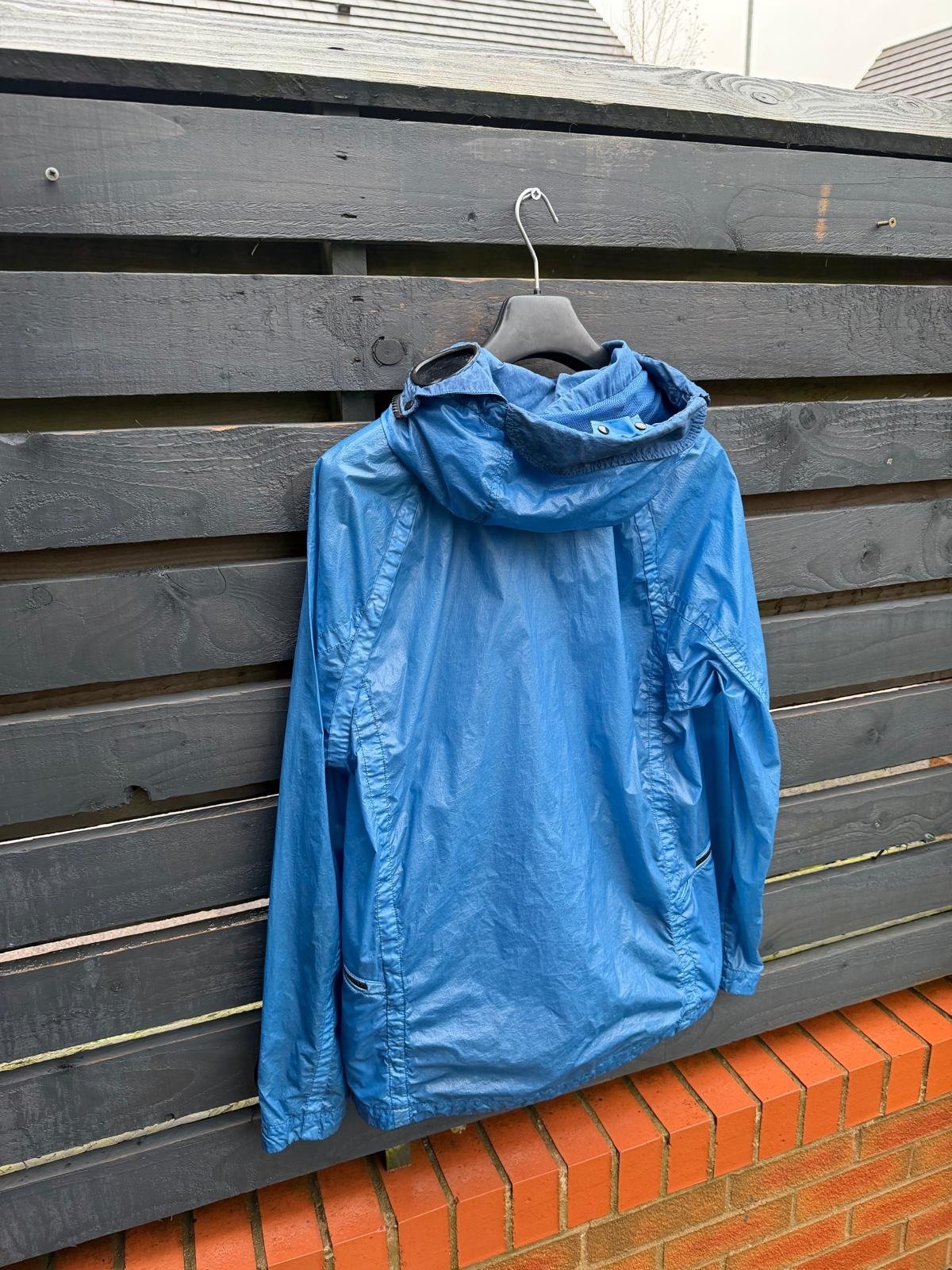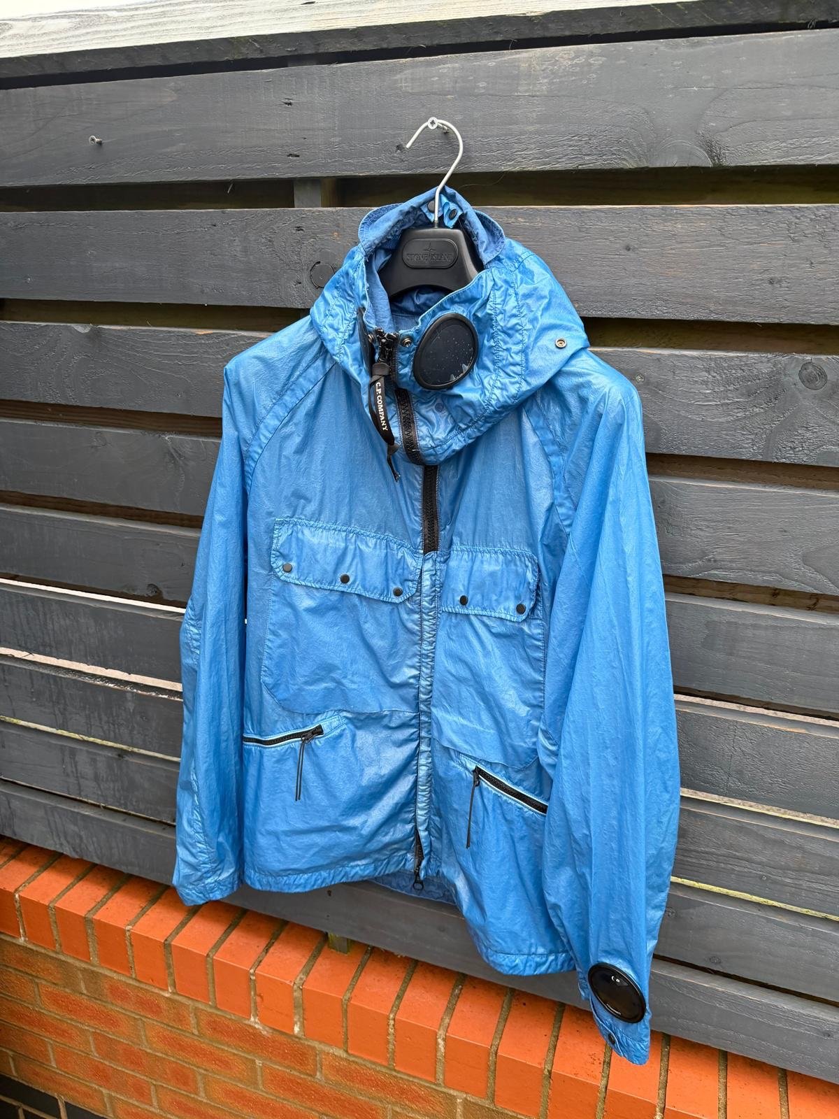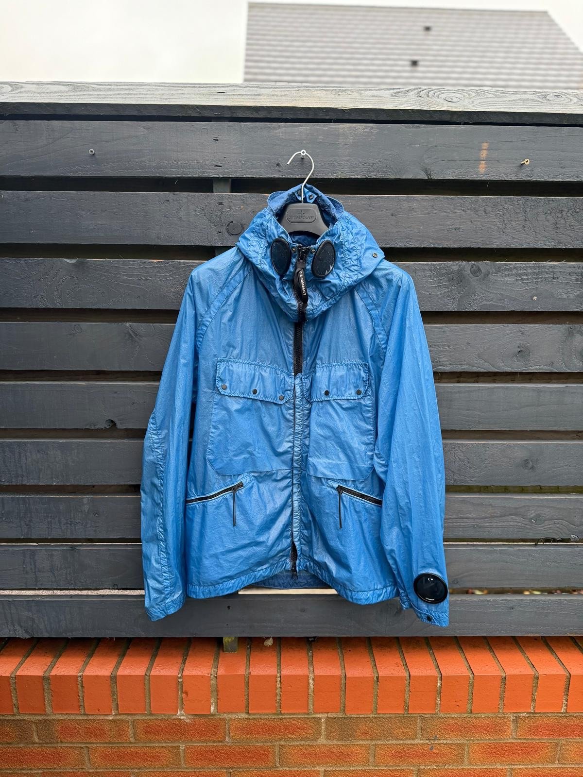 A contemporary take on a classic — the C.P. Company Nyber Explorer Mille Miglia Jacket merges utilitarian design with motorsport heritage. Built on a lightweight yet durable nylon shell with water- and wind-resistant finish, it incorporates the label’s signature full-face goggle hood and sleeve watch-viewer lens for a distinct automotive-inspired edge. Multiple functional pockets, a 2-way zip closure, adjustable cuffs and hem make it as practical as it is iconic — perfect for those who appreciate technical outerwear with heritage roots. Very good condition.