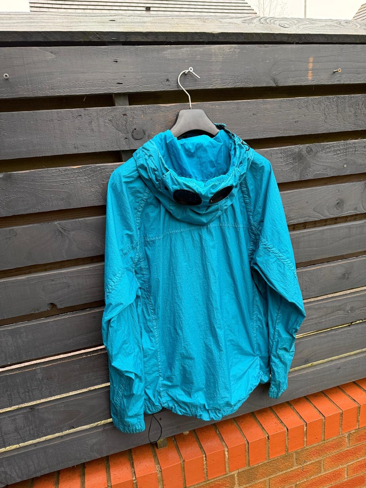 A modern update to C.P. Company’s iconic Mille Miglia legacy — this goggle jacket blends utilitarian functionality with motorsport-inspired style. It features a detachable hood with built-in goggles, a signature wrist “watch-viewer” lens, multiple practical pockets, a weather-resistant Nyfoil shell, and a garment-dyed finish for a distinctive, unique look. Ideal for those wanting heritage-driven design with everyday utility. Very good condition, small mark to the front but noticeable due to the colour.