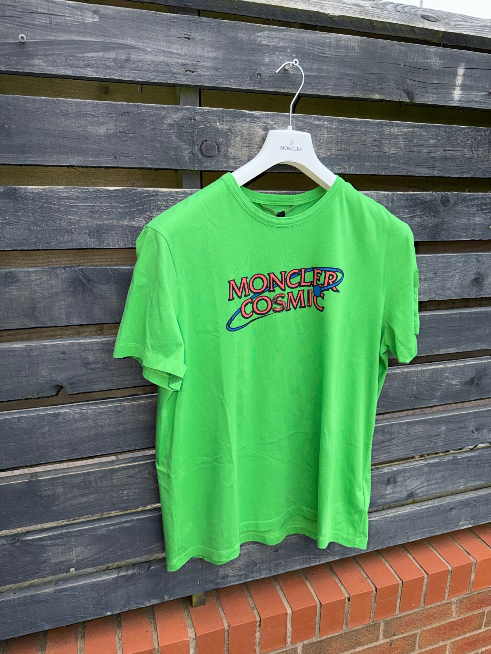The Moncler Cosmic Print Maglia T-Shirt delivers a bold, graphic-led take on the brand’s premium casualwear. Crafted from soft cotton jersey, it offers a comfortable, breathable feel with a clean crewneck silhouette. The standout cosmic-inspired print adds a statement edge, while Moncler’s signature detailing reinforces its luxury identity. Finished with a regular fit and refined construction, it’s a versatile piece that blends everyday wearability with elevated streetwear appeal.