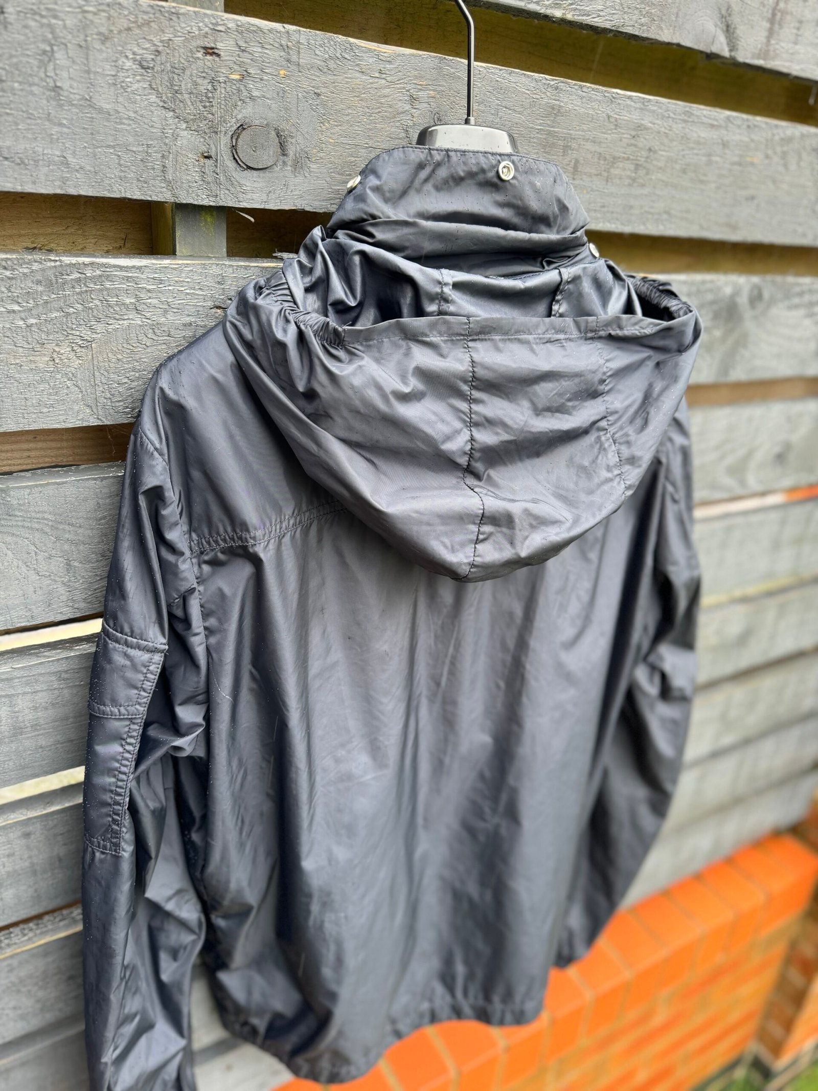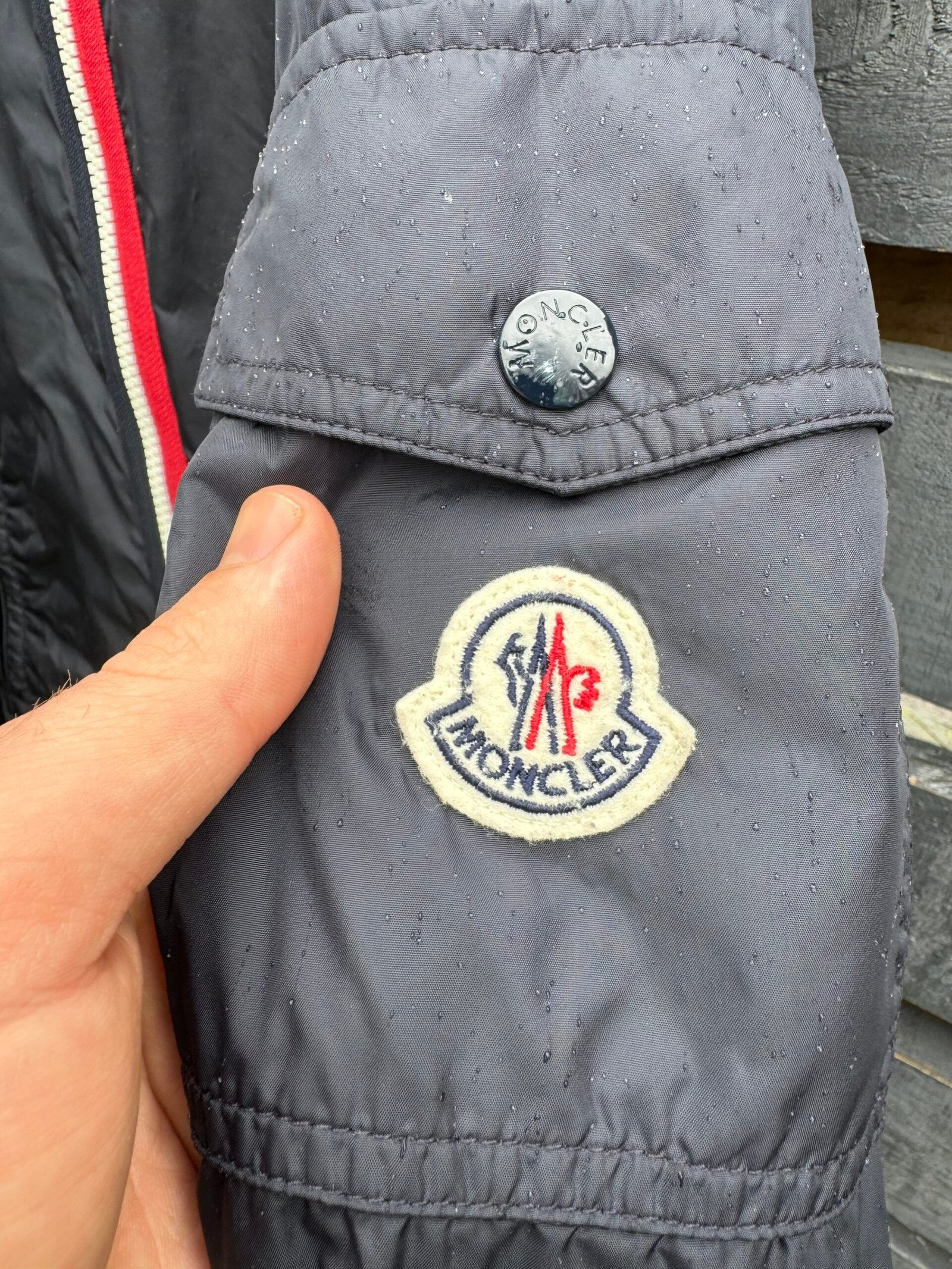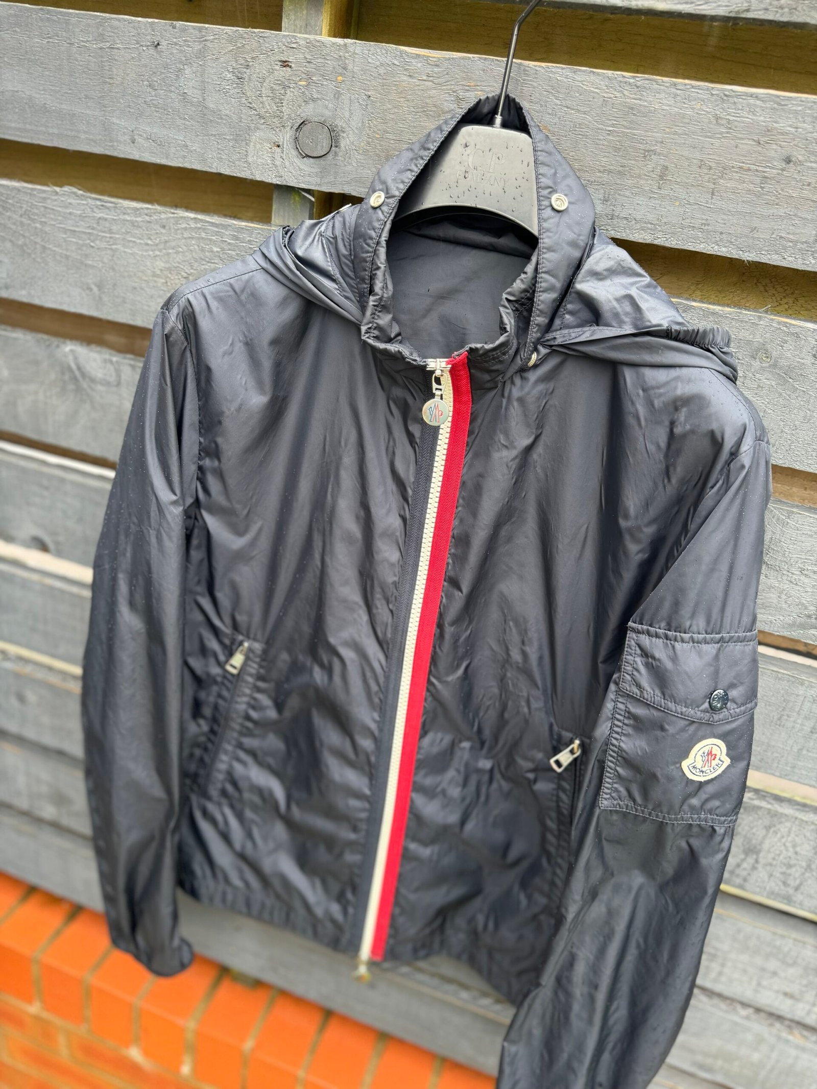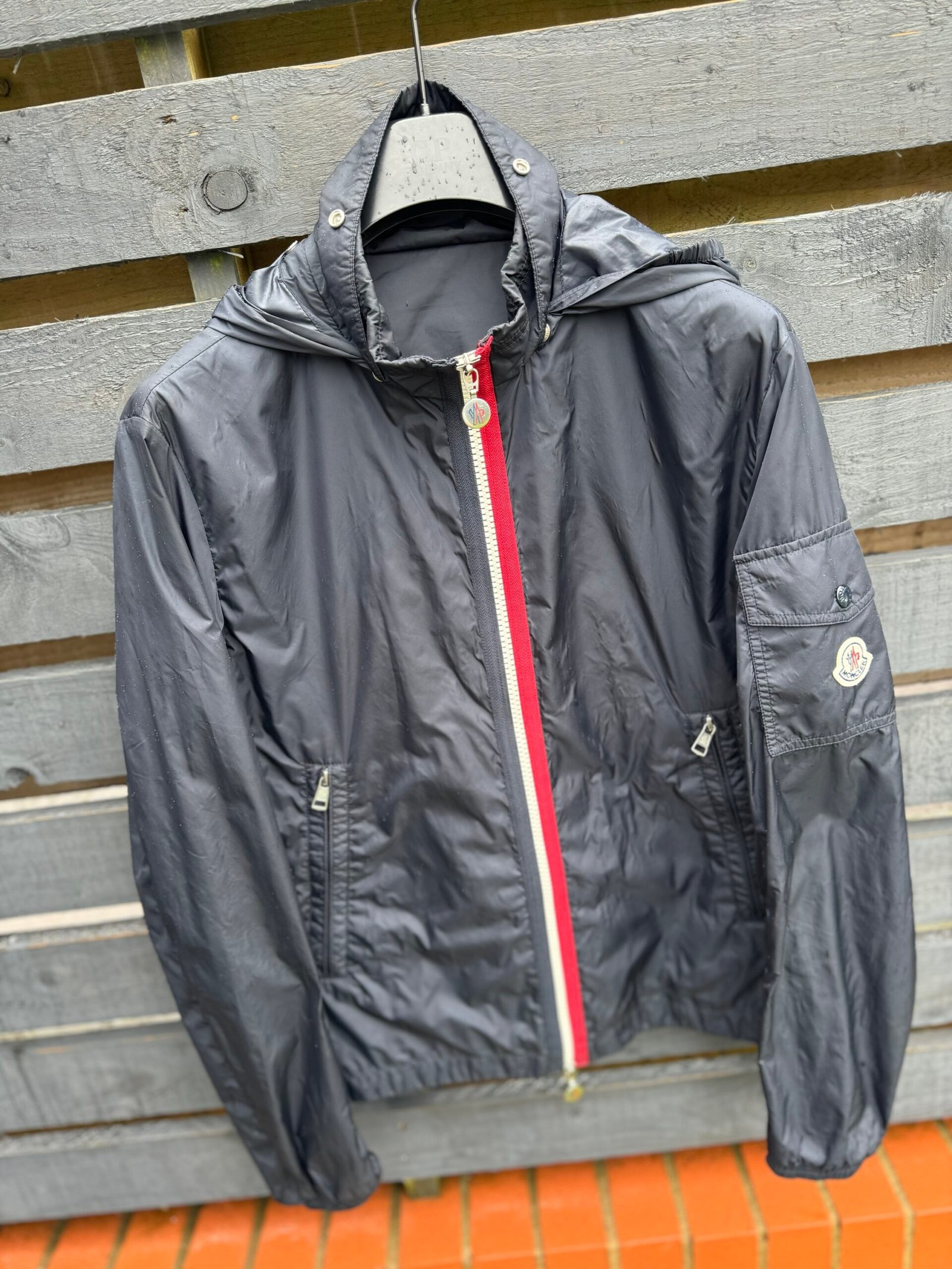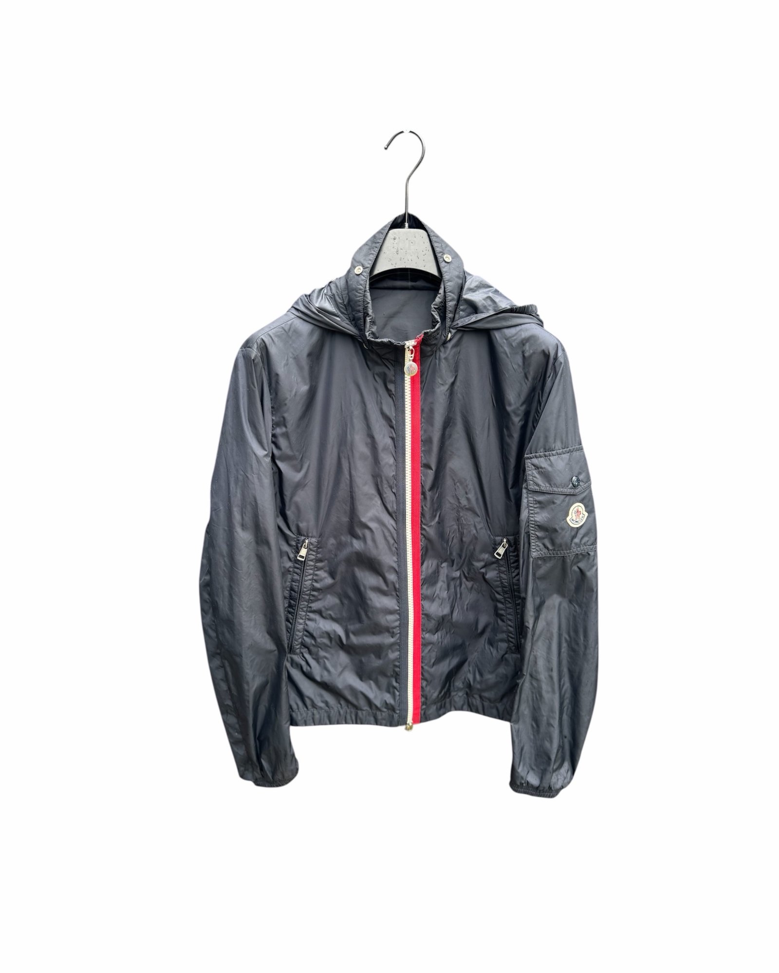 A sleek, lightweight windbreaker crafted from 100% polyamide for durable, water-resistant performance. Features include a hidden hood in the collar, elasticated cuffs and hem, two zip side pockets, and a utility pocket on the sleeve. The front zip is accented with Moncler’s signature tricolour trim, and the iconic Moncler logo patch sits on the left arm. Designed for a streamlined, modern fit — perfect for layering in transitional weather.