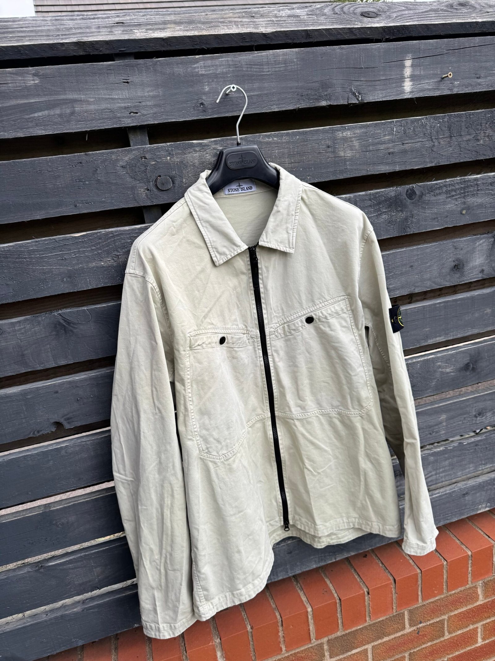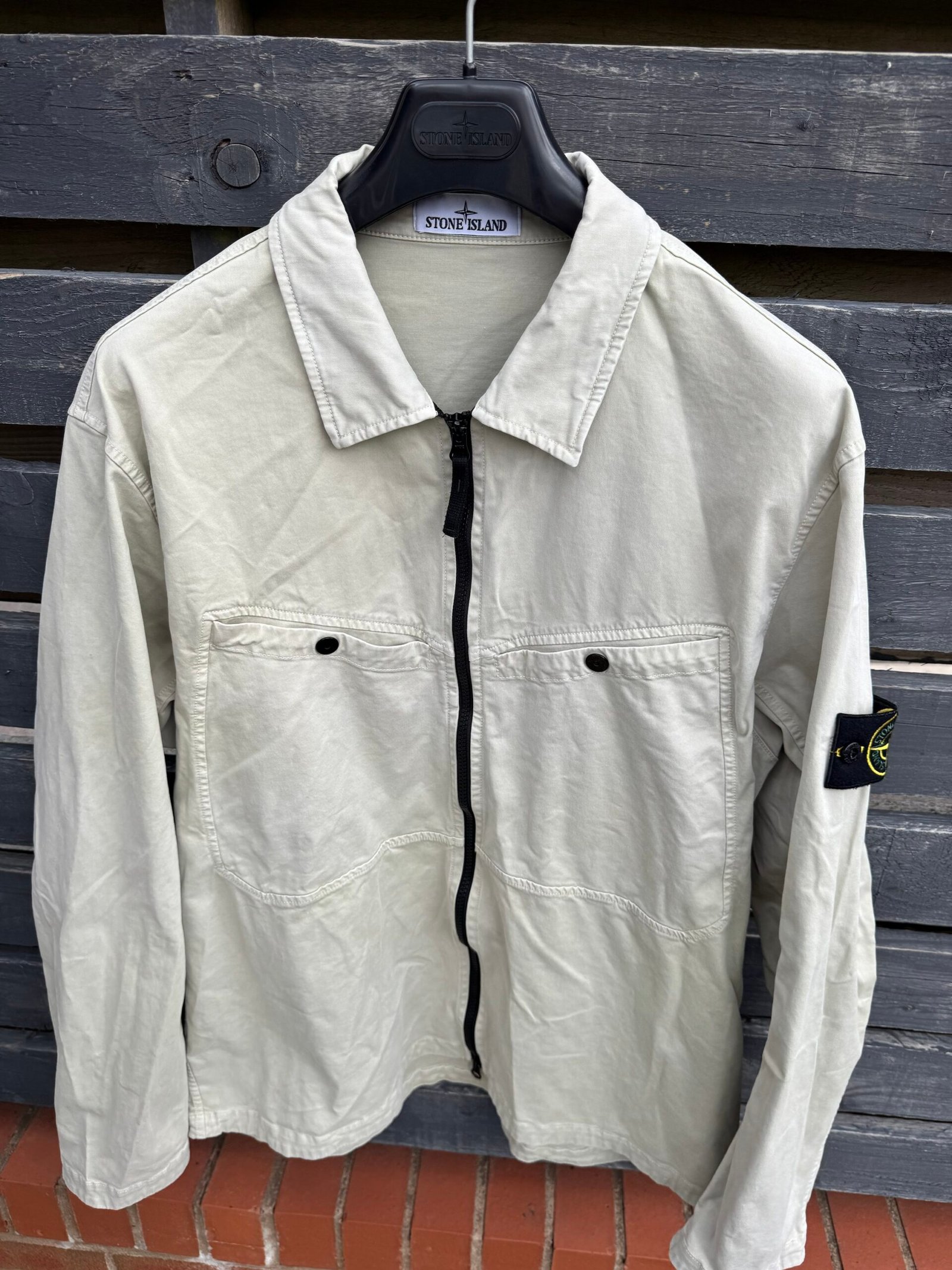 Crisp beige tones meet utility style in this double-pocket overshirt — rugged in feel, refined in cut. Layer it over tees or shirts for that no-fuss, streetwise look.