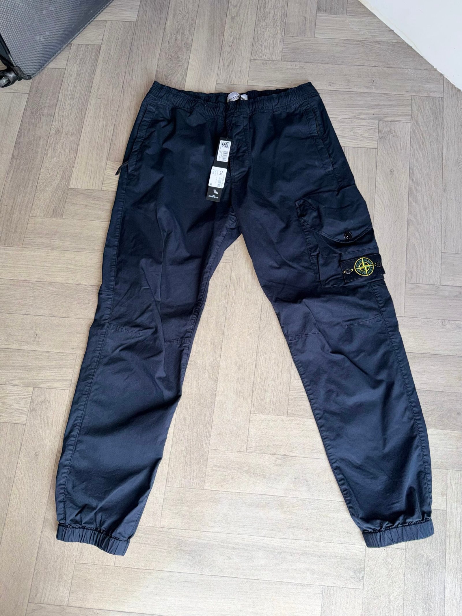 Stone Island Cargo Trousers — Rugged yet refined trousers designed for utility and style. Crafted from durable, high-quality fabric with practical cargo pockets and signature Stone Island detailing, these trousers combine functionality with a contemporary silhouette. Ideal for everyday wear or adventurous outings, they deliver comfort, versatility, and understated designer edge.
