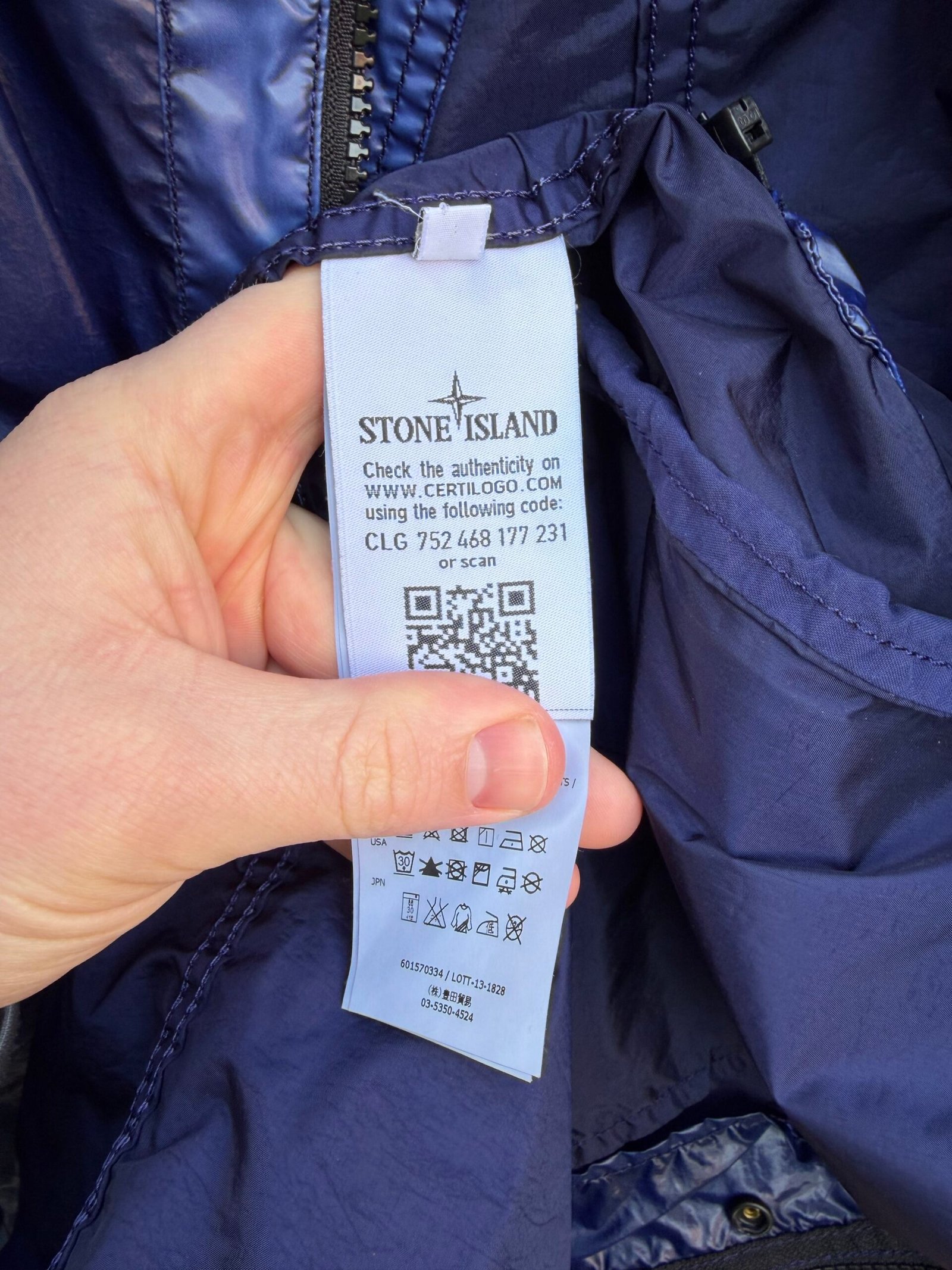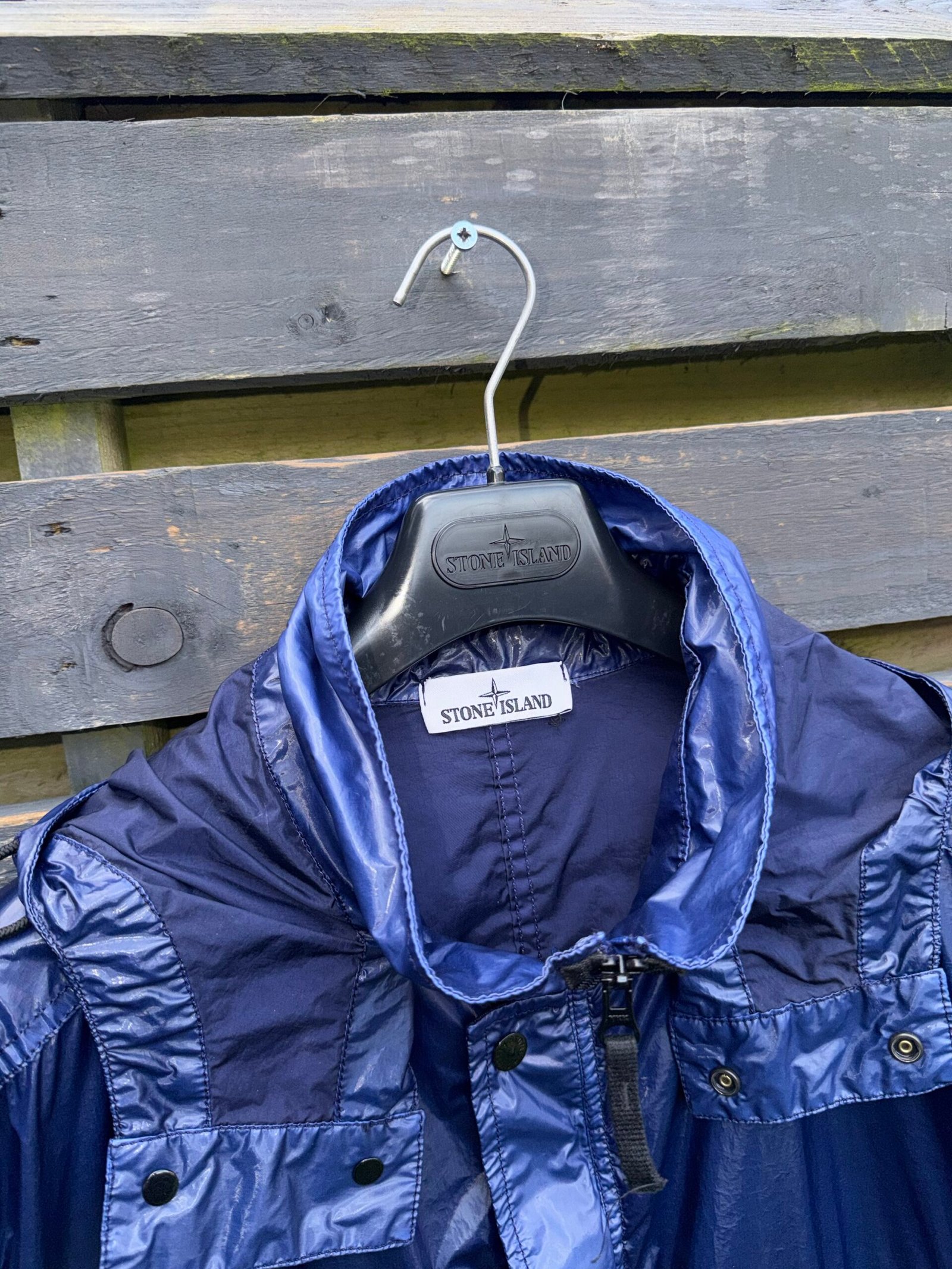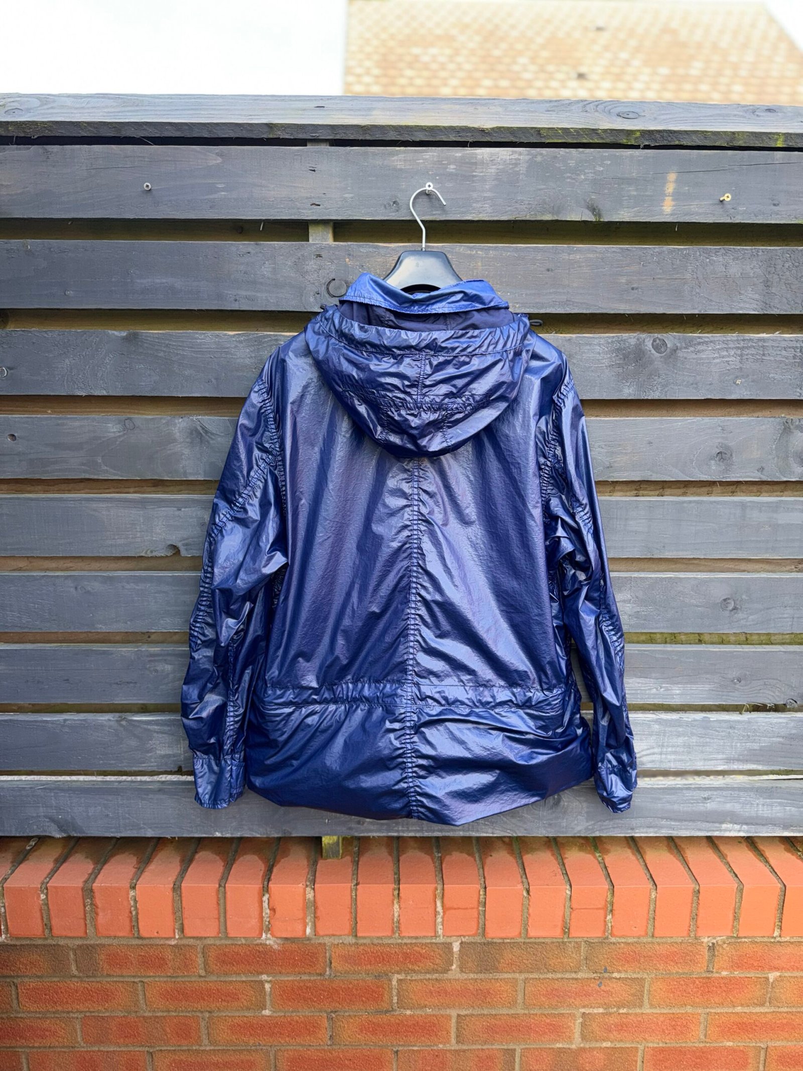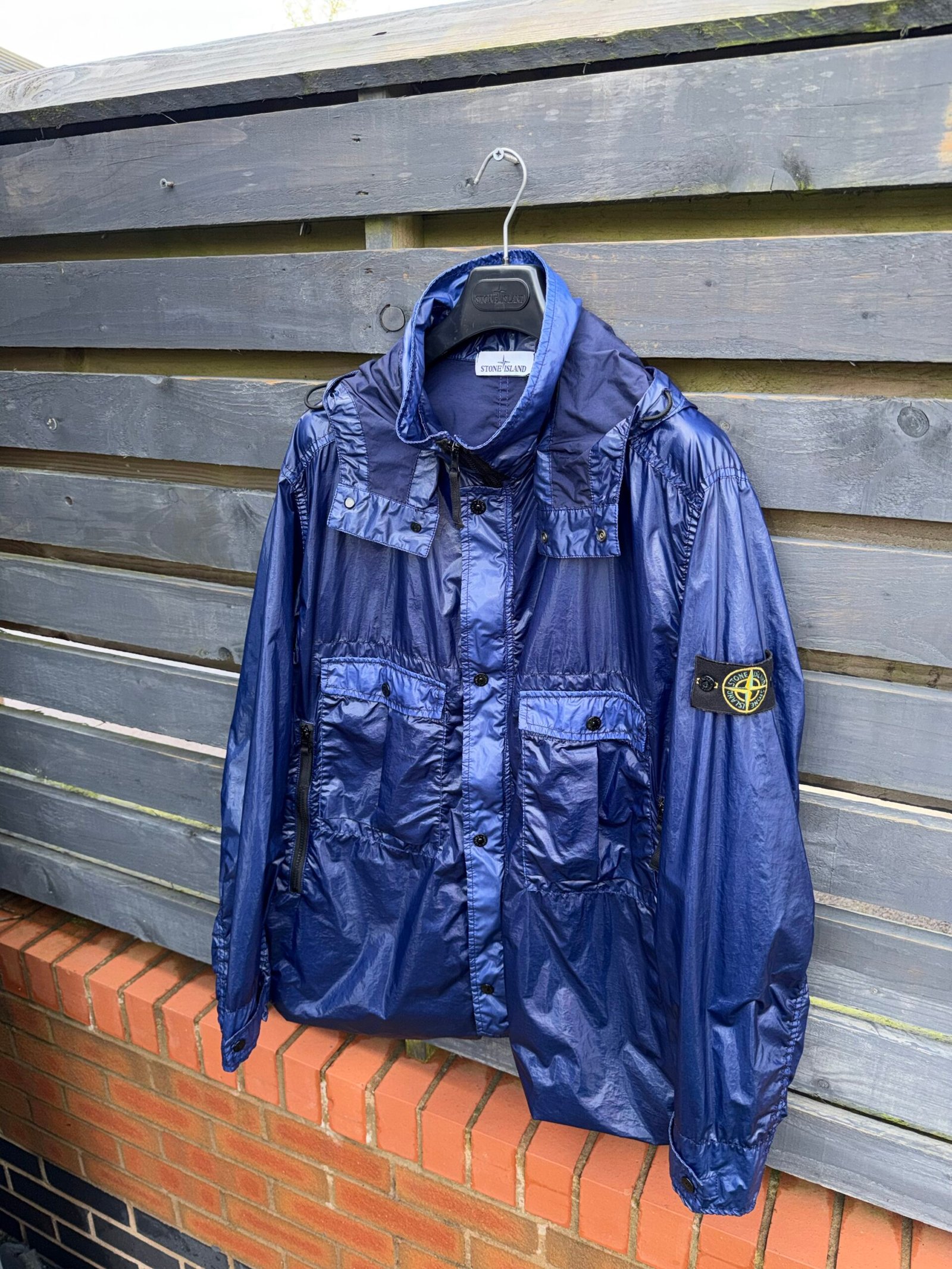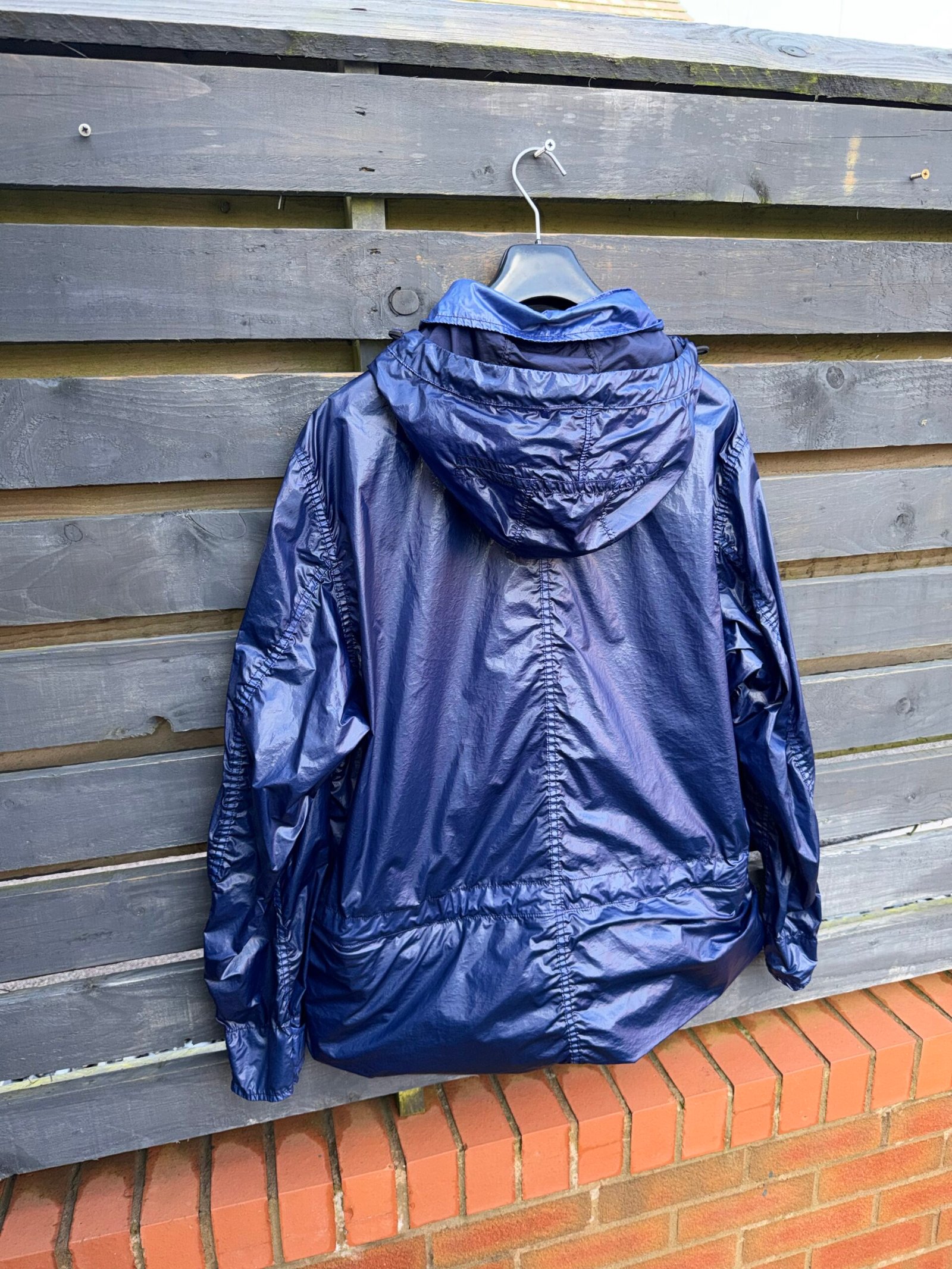 Stone Island Crinkle Gloss Parka Jacket in a distinctive, high-shine finish. Crafted from the brand’s signature crinkle gloss fabric, offering a lightweight yet durable feel with a unique textured look. Features a full zip and button fastening, adjustable hood, and functional pocket detailing for everyday wear. Finished with the iconic Stone Island badge on the sleeve, delivering a perfect balance of technical design and standout streetwear style. Very good condition. Please Note this item is pre-owned and may show minor signs of wear.