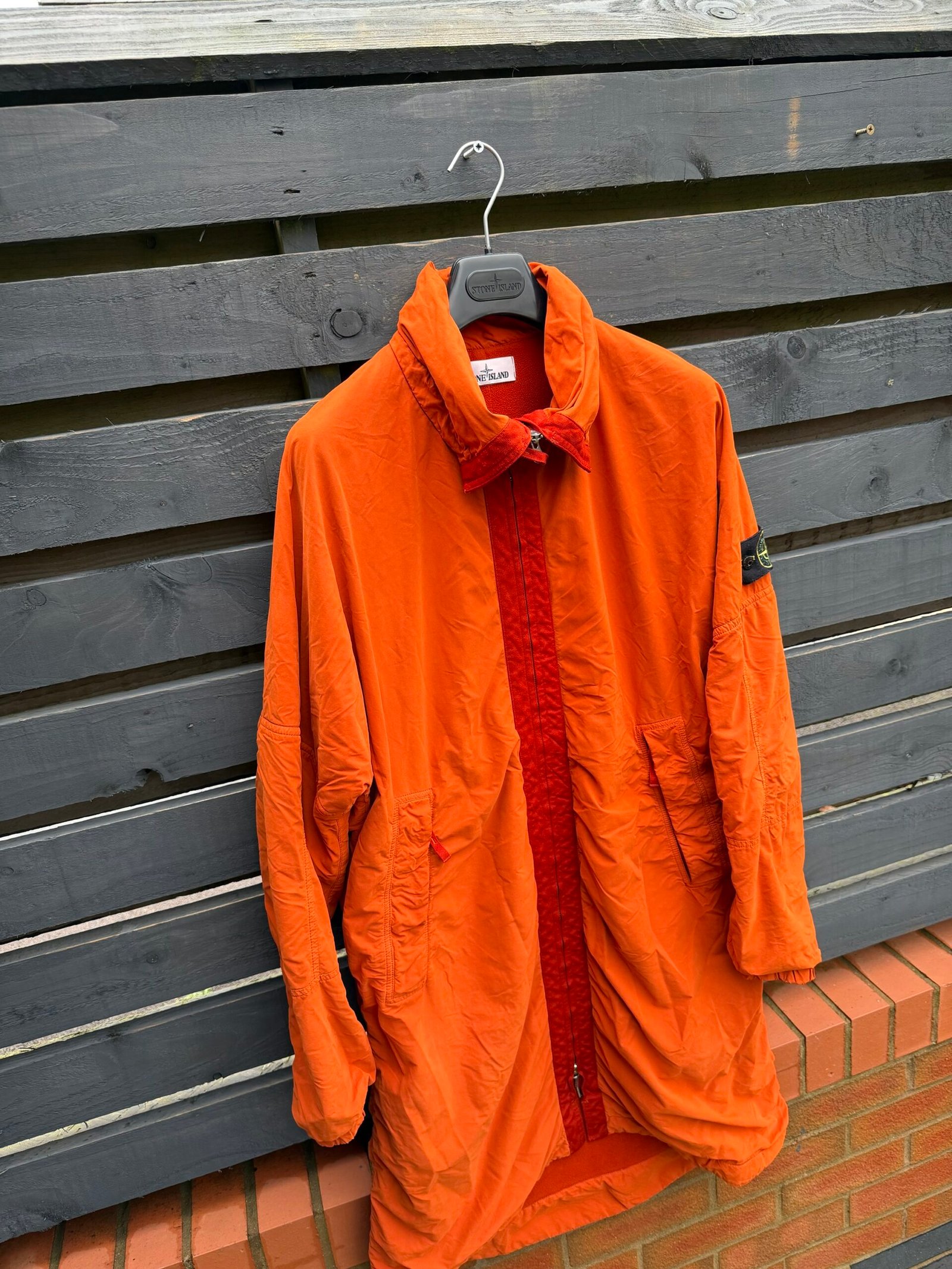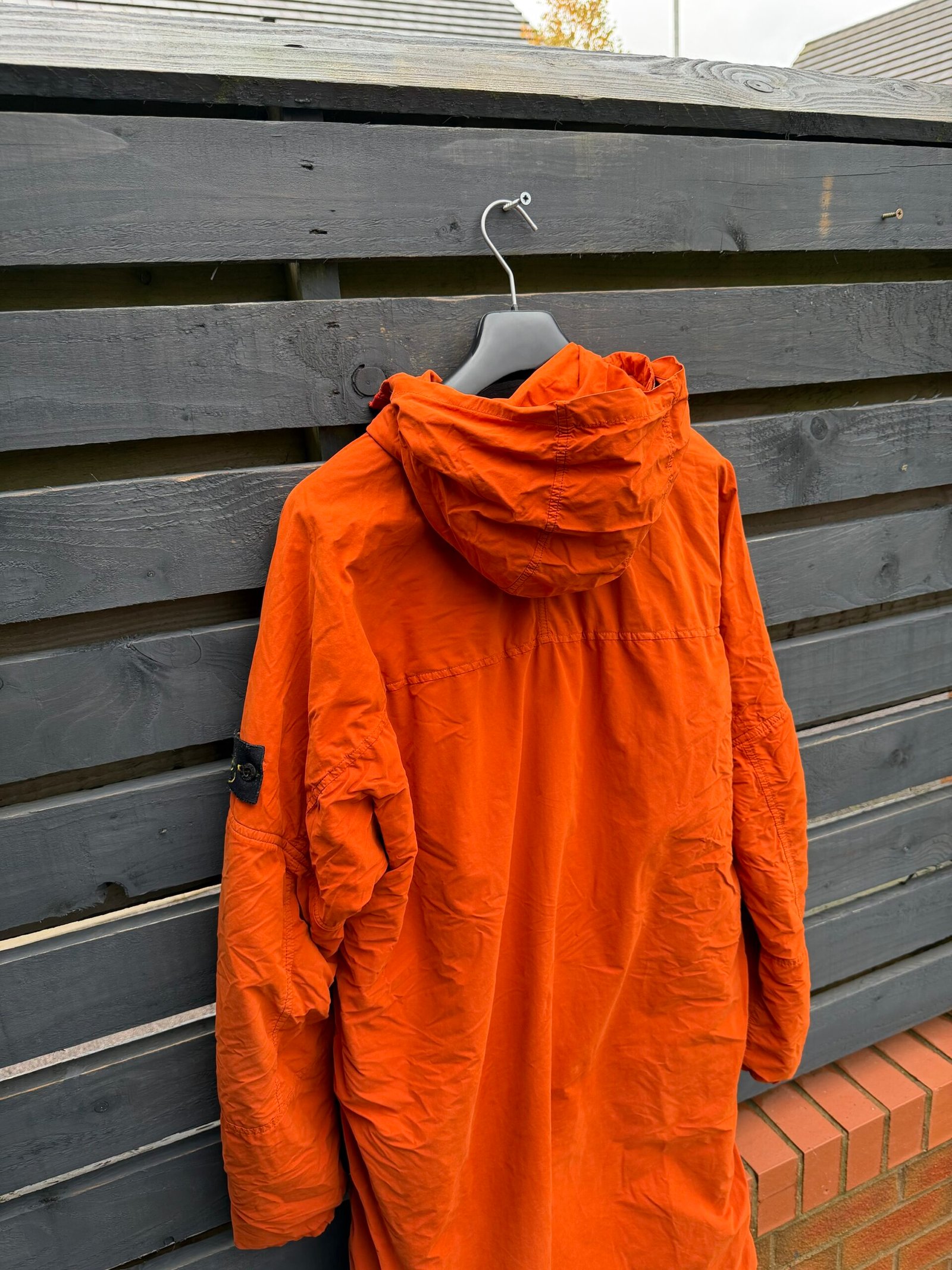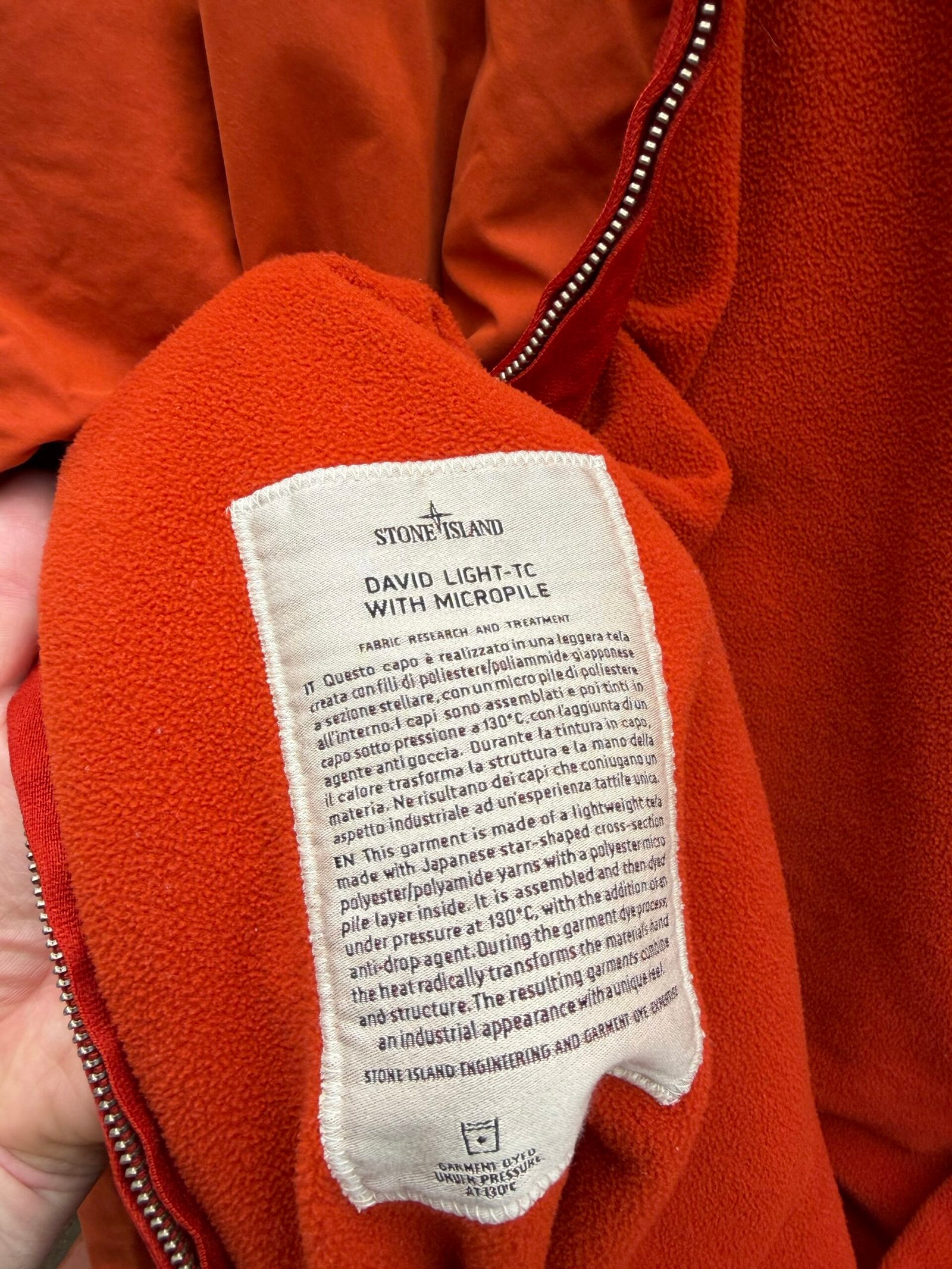Step into technical luxury. This Stone Island parka is built in the signature David Light-TC fabric — a lightweight tela woven using Japanese star-shaped cross-section polyester/polyamide yarns, layered internally with a polyester micropile lining. The garment is then assembled and garment-dyed under pressure at 130 °C, transforming its hand and structure for a unique industrial look and rich tactile feel. Worn, good condition.