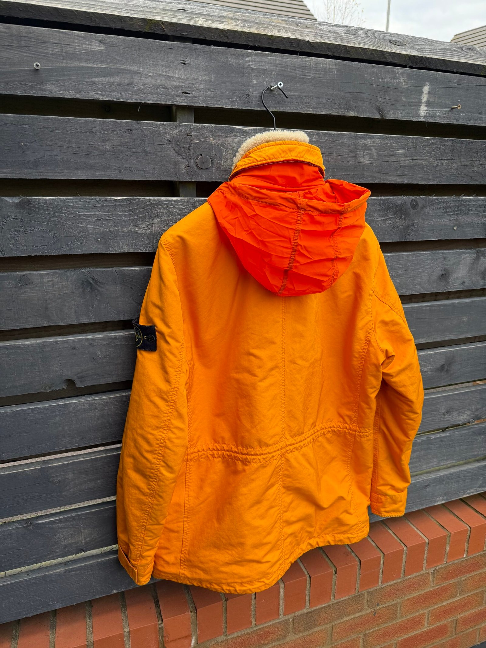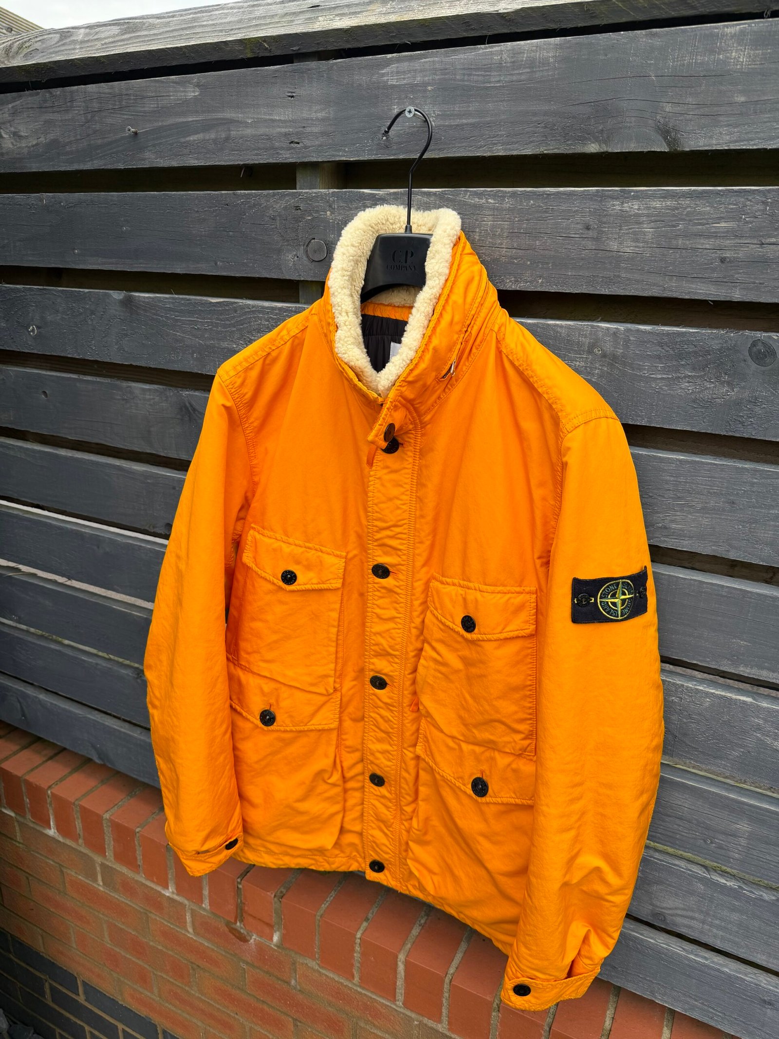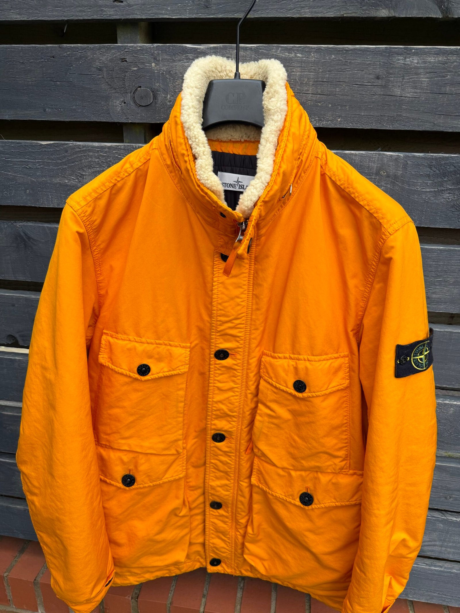 A heavyweight technical masterpiece, this Stone Island David-TC Field Jacket combines a garment-dyed matte shell with plush shearling lining for serious warmth and comfort. Insulated with Primaloft for lightweight performance, it’s built to take on the cold while keeping a clean, structured silhouette. Finished with functional pocket detailing and the iconic compass badge — a top-tier piece for any SI collector. Very good condition.