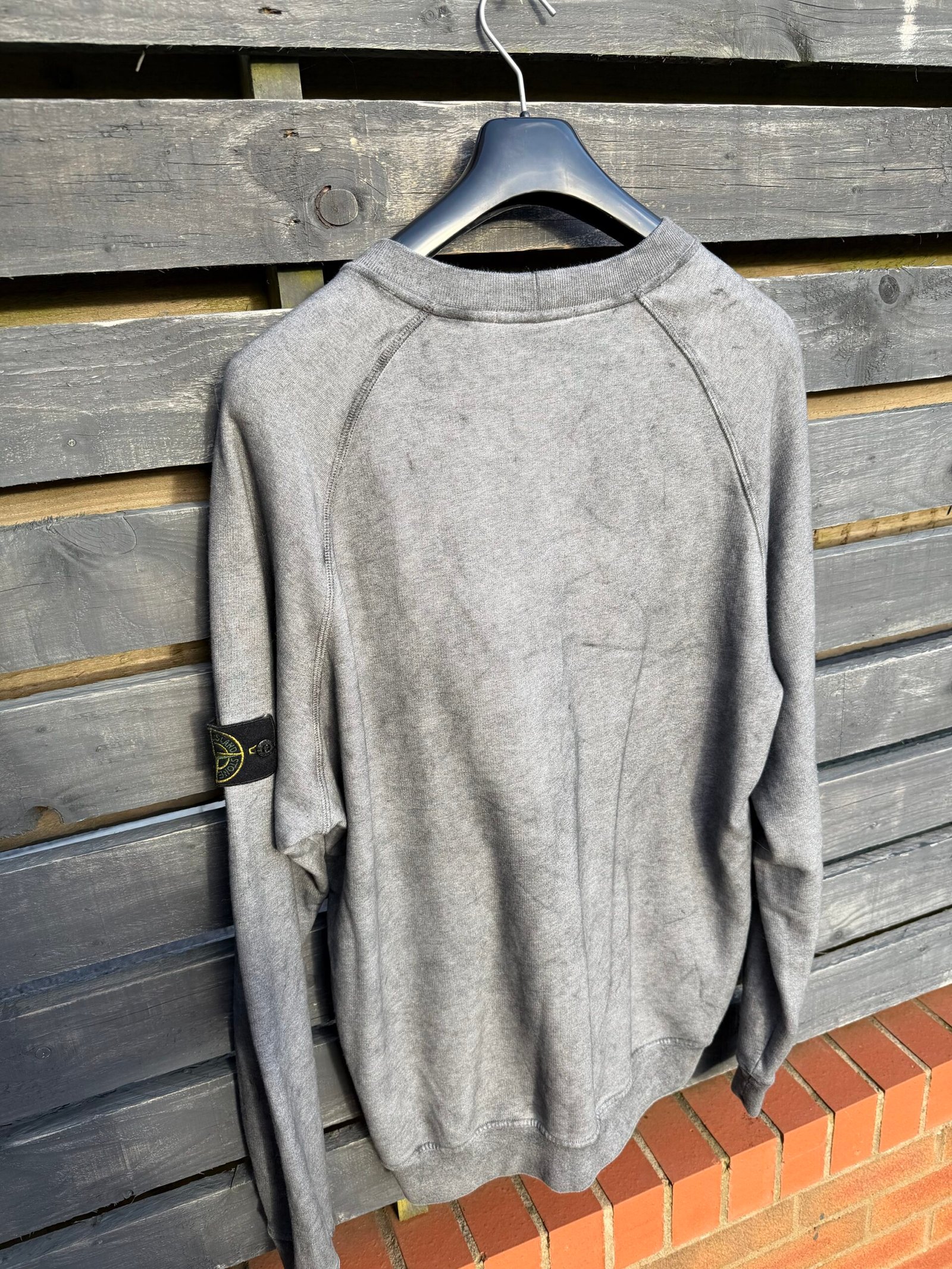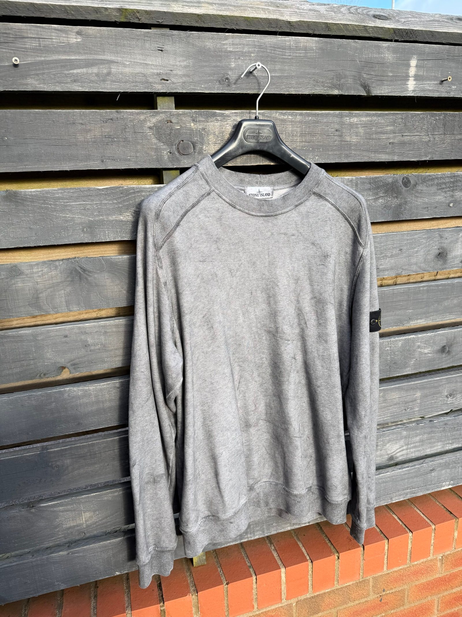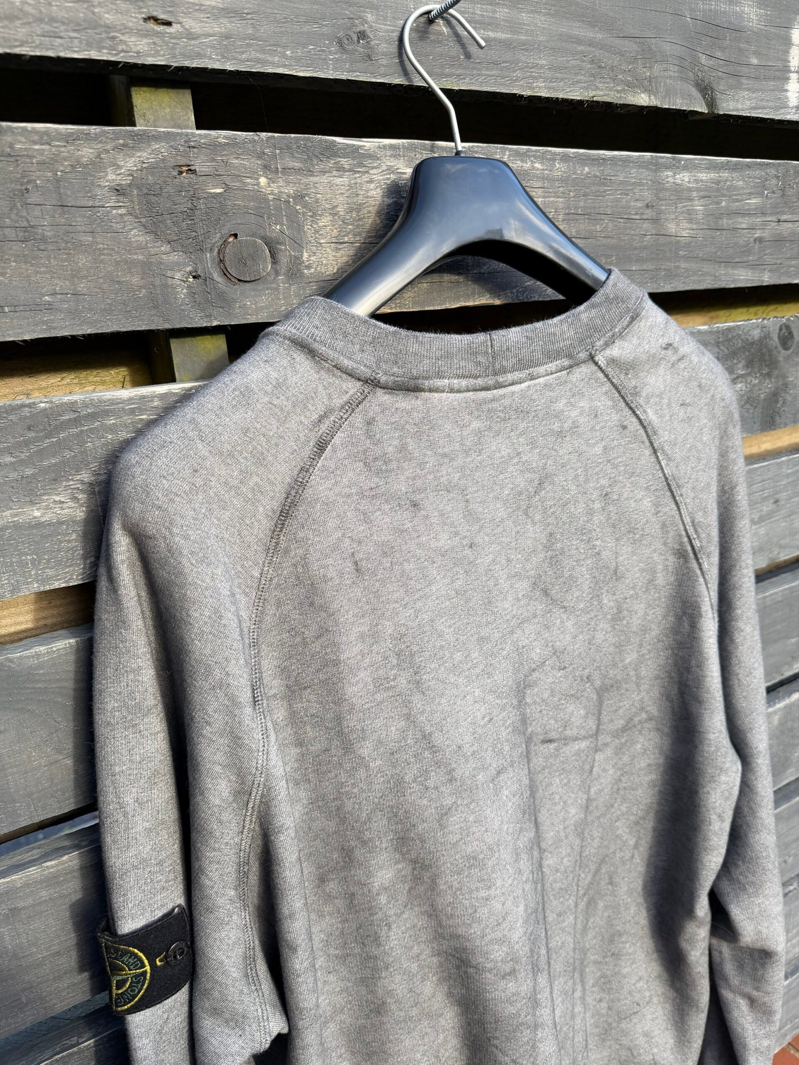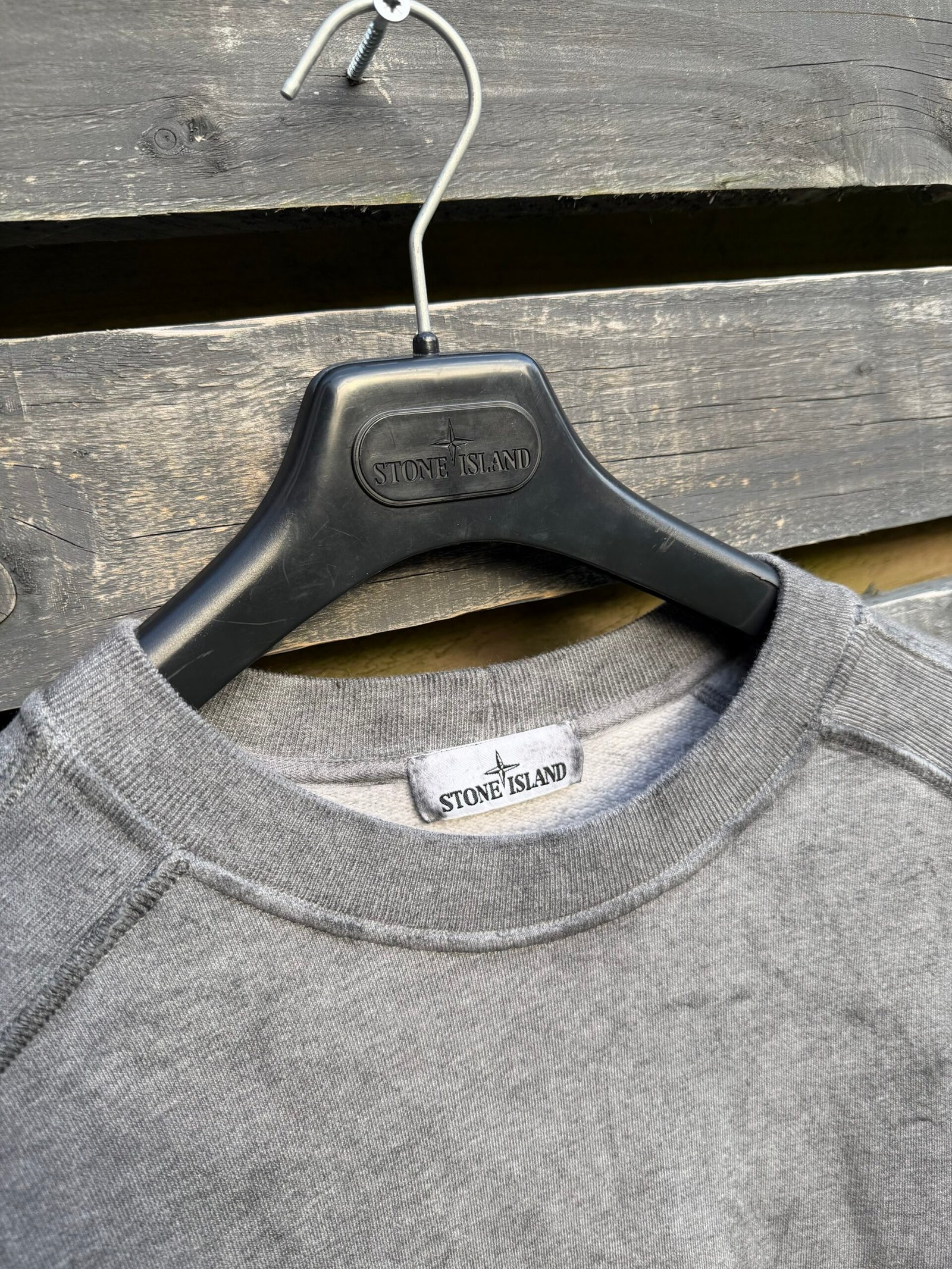 This Stone Island sweatshirt features the brand’s signature Dust Technique in a versatile grey hue, giving a unique, worn-in texture and depth. Crafted from premium cotton for soft comfort, with a classic crewneck silhouette. Finished with the iconic compass badge — a subtle yet unmistakable statement of SI style and craftsmanship. Very good condition.