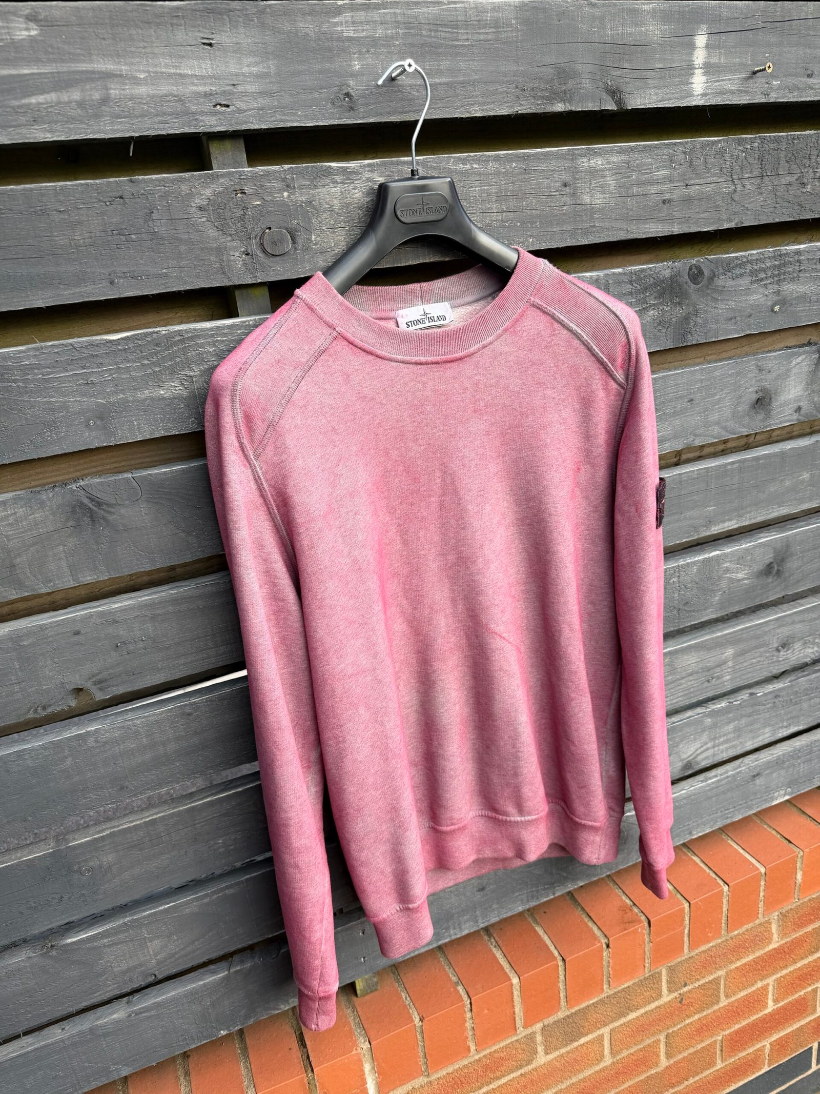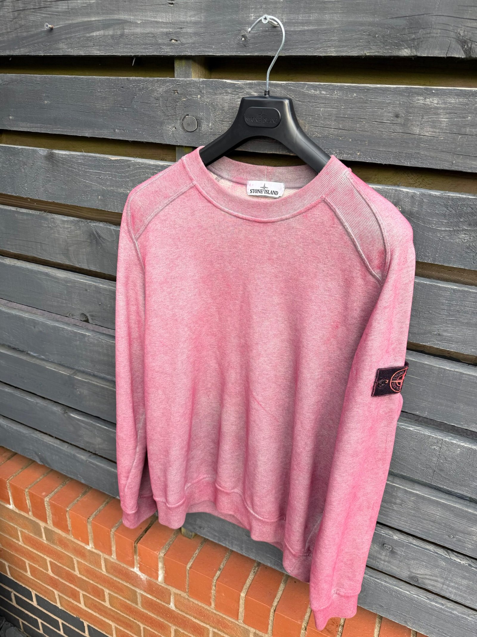 This process gives each sweatshirt a one-of-a-kind finish, making every piece unique. Designed with a classic crew neckline, ribbed trims, and the iconic detachable Stone Island compass badge on the sleeve, it delivers a perfect balance of comfort, individuality, and signature Stone Island style.