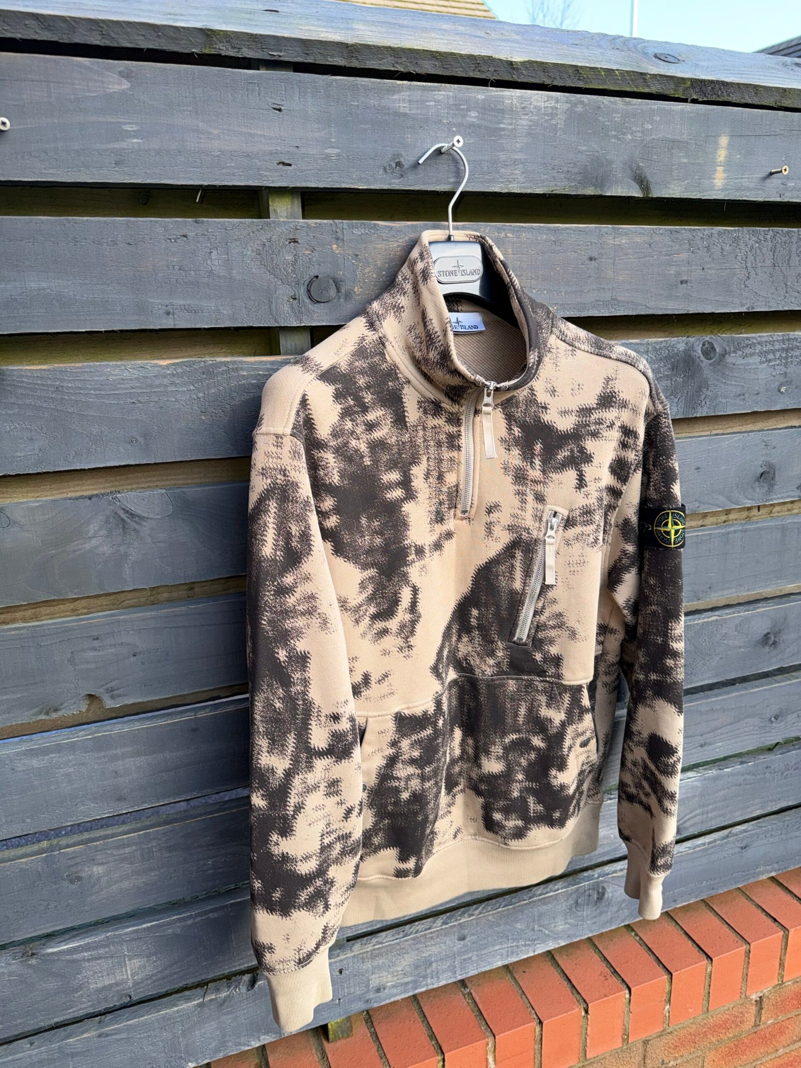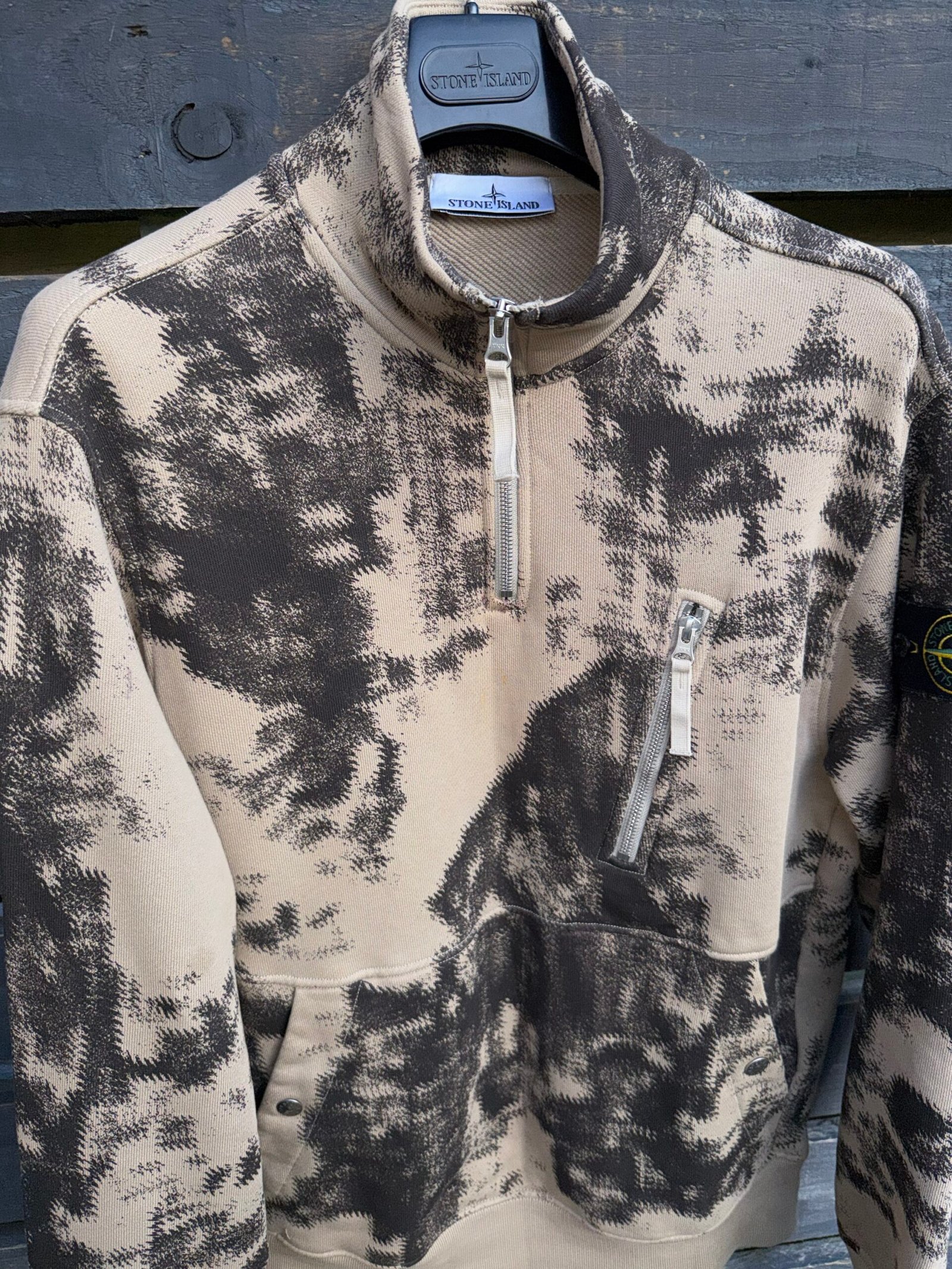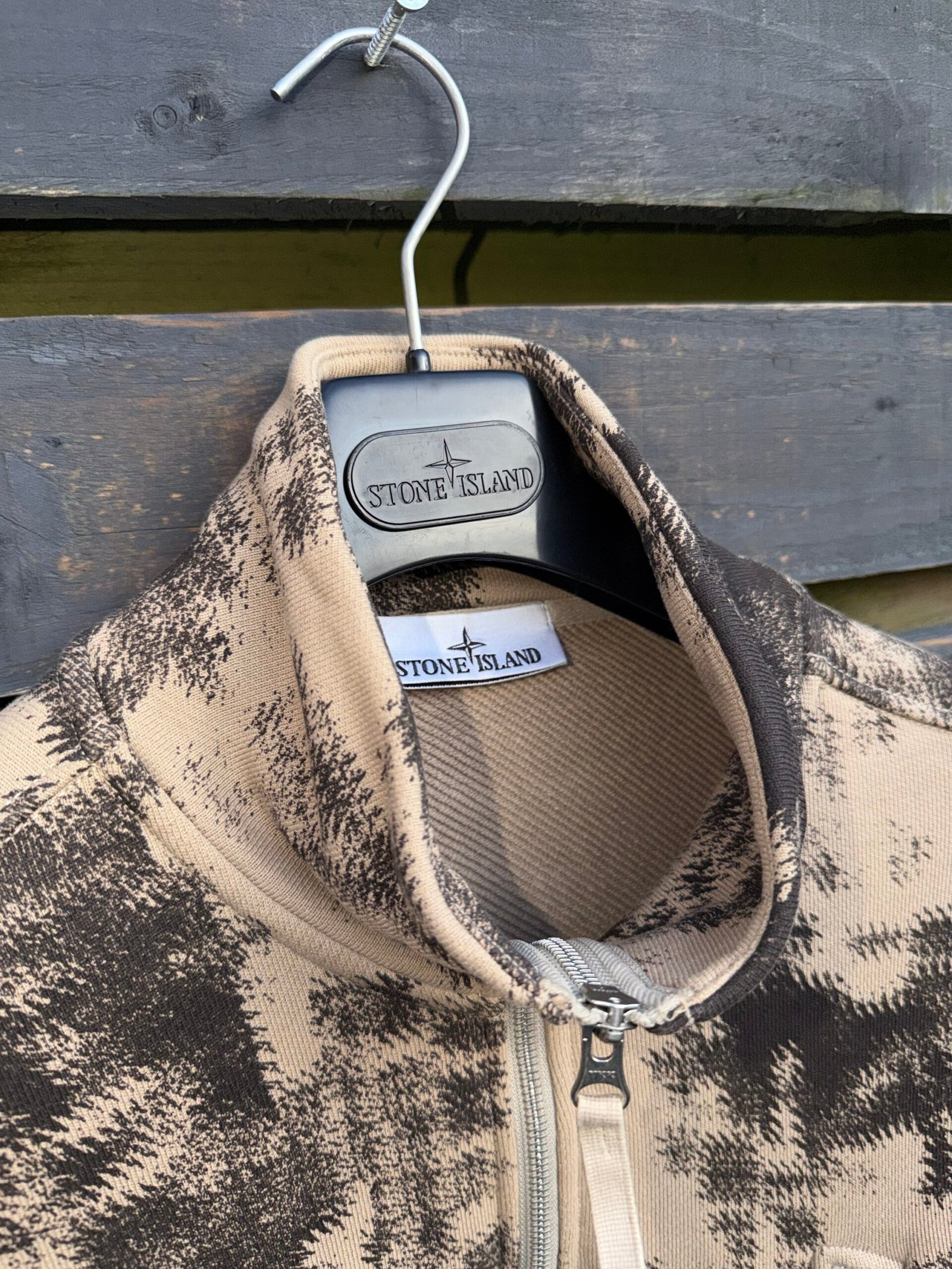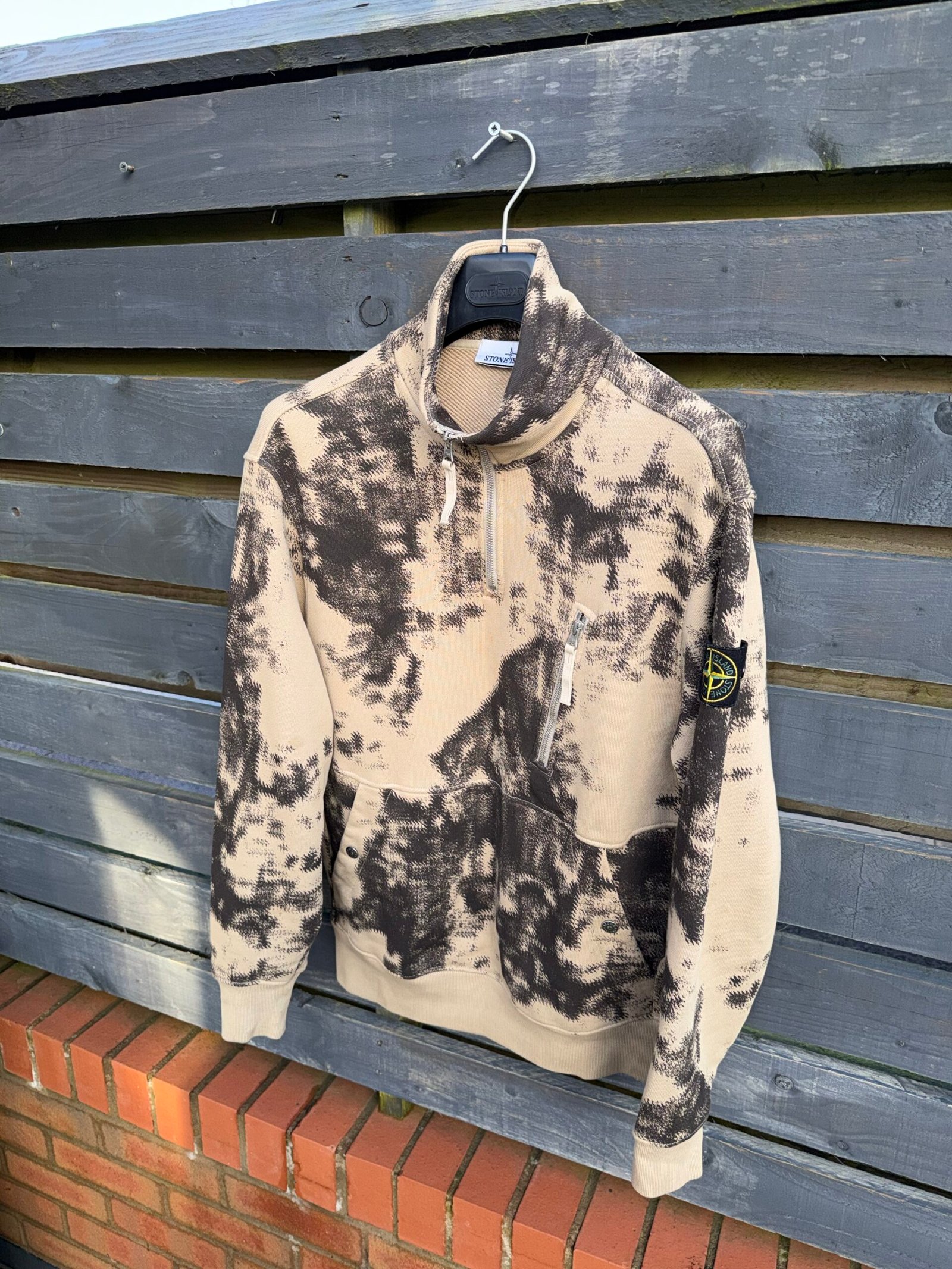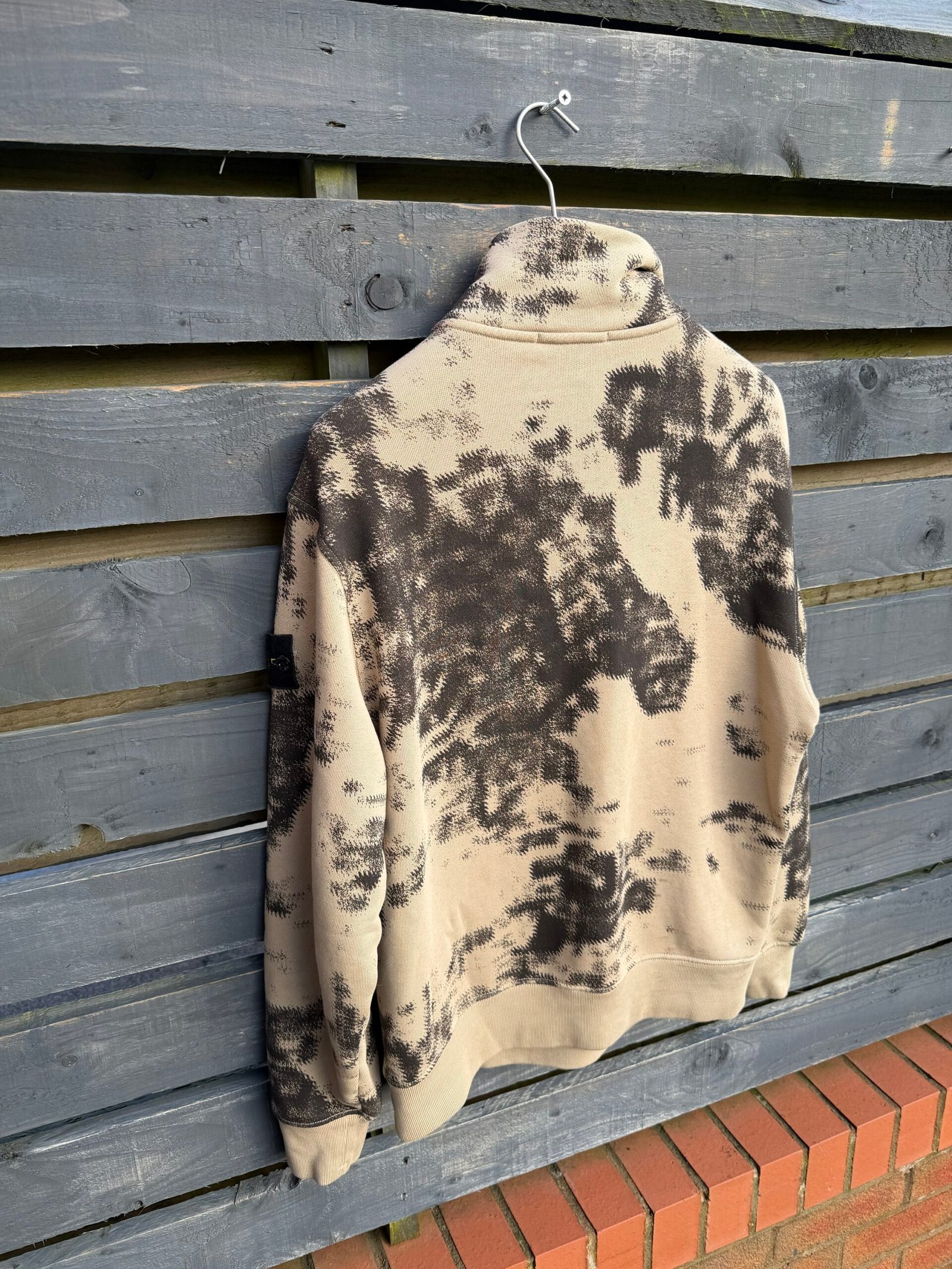 Standout camo piece featuring Stone Island’s distinctive Earth Mapping print throughout. Crafted from premium cotton fleece for a comfortable, structured fit. Finished with ribbed trims and the iconic removable compass badge to the sleeve. Bold graphic, classic silhouette. Very good Condition. Please Note this item is pre-owned and may show minor signs of wear.