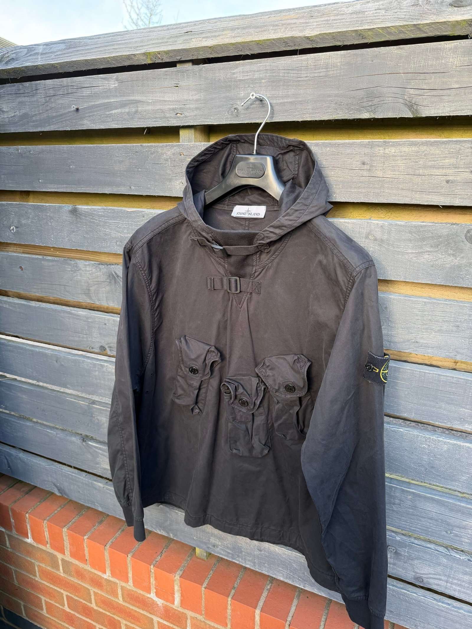 A premium gabardine smock featuring a durable, structured feel with Stone Island’s signature garment-dyed finish. Designed with multiple utility pockets, a clean pullover silhouette, and the iconic compass badge on the sleeve — a functional, stylish piece perfect for everyday wear. Immaculate.