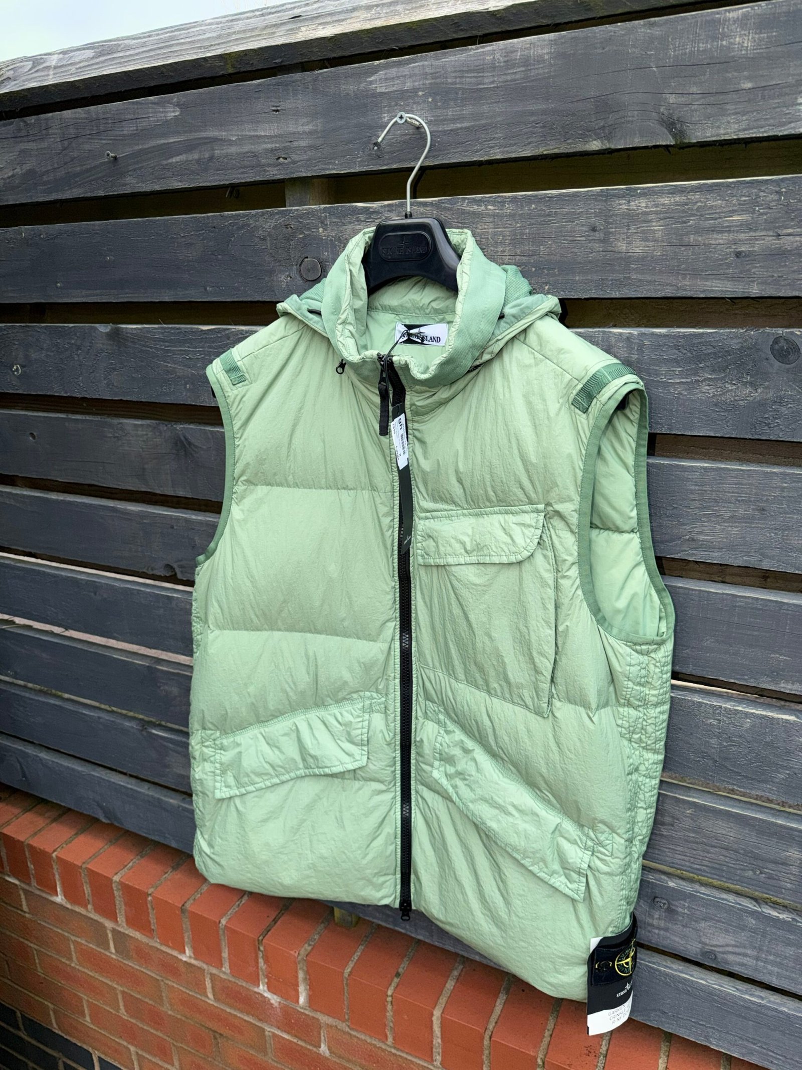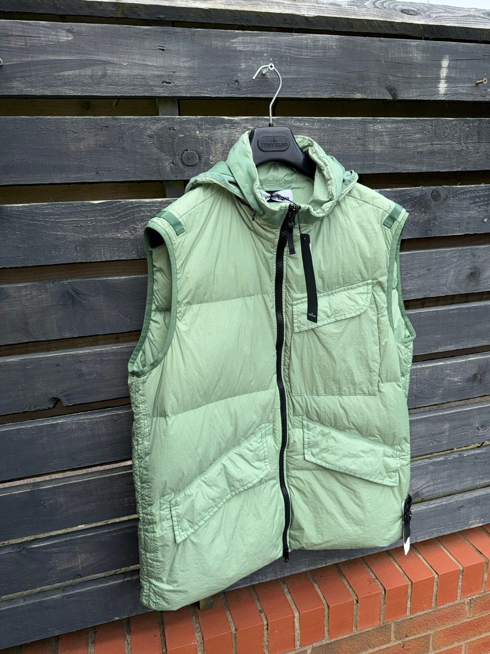 Stone Island Garment Dyed Crinkle Reps Down Gilet — A premium insulated gilet that blends technical performance with Stone Island’s signature garment‑dyed aesthetic. Crafted in crinkle reps fabric for a textured, contemporary look, it’s filled with quality down to deliver lightweight warmth and comfort. With functional detailing and a sleek silhouette, this gilet adds versatile layering and refined style to both casual and urban outfits.