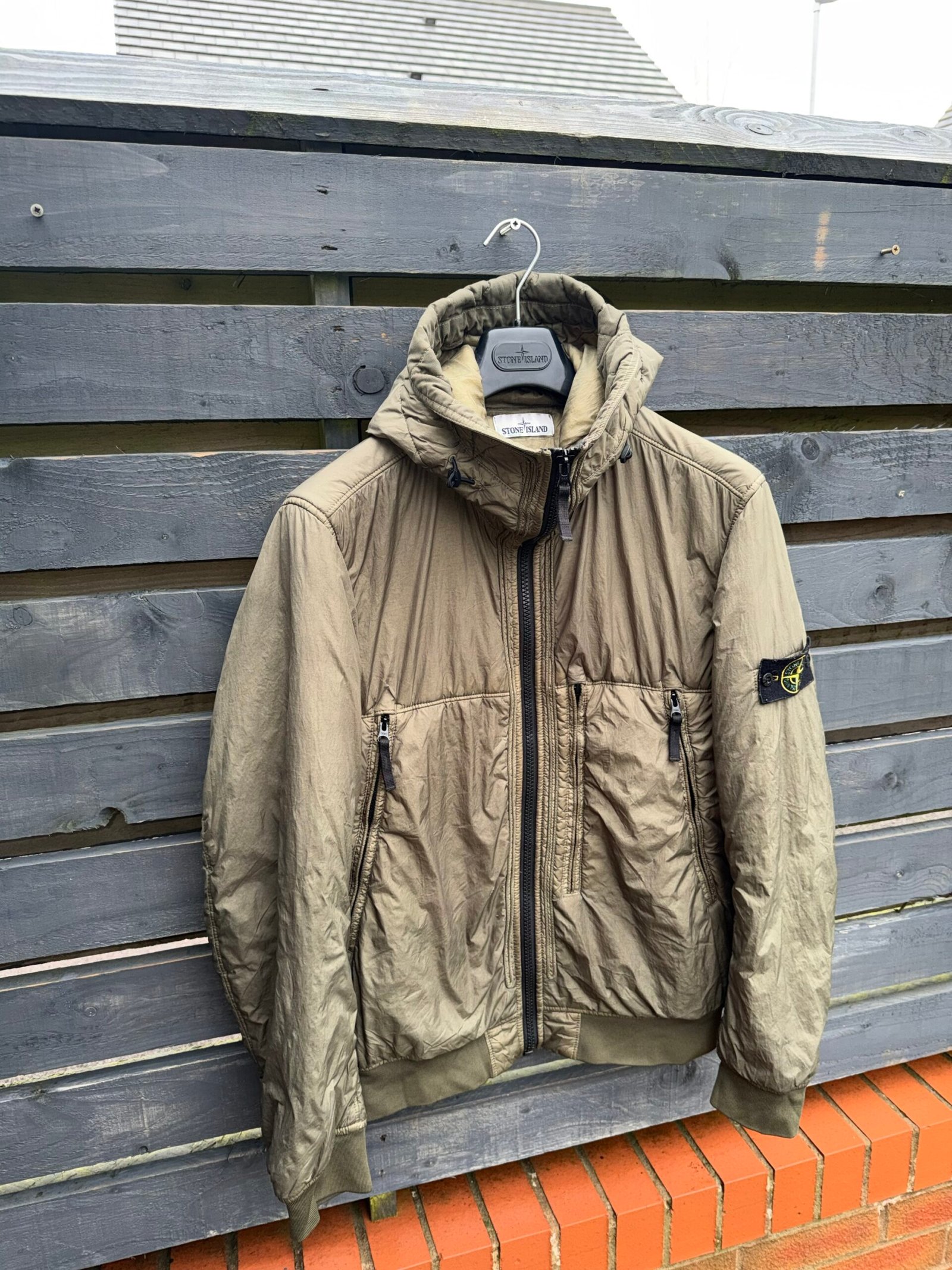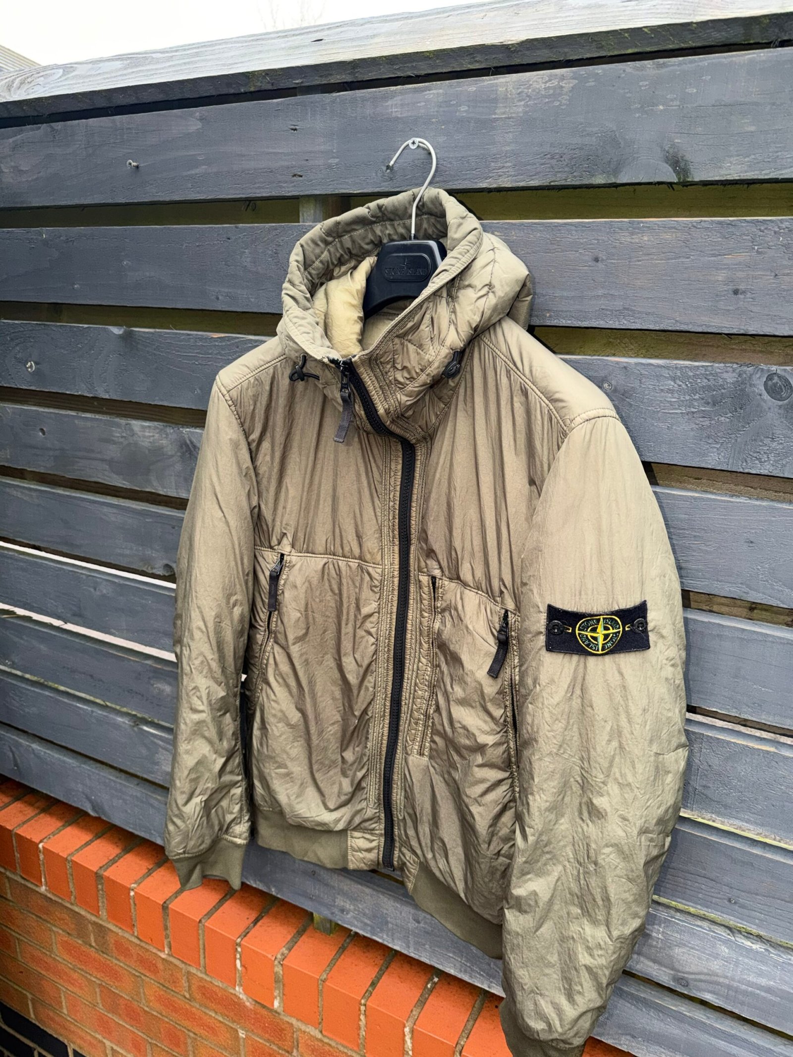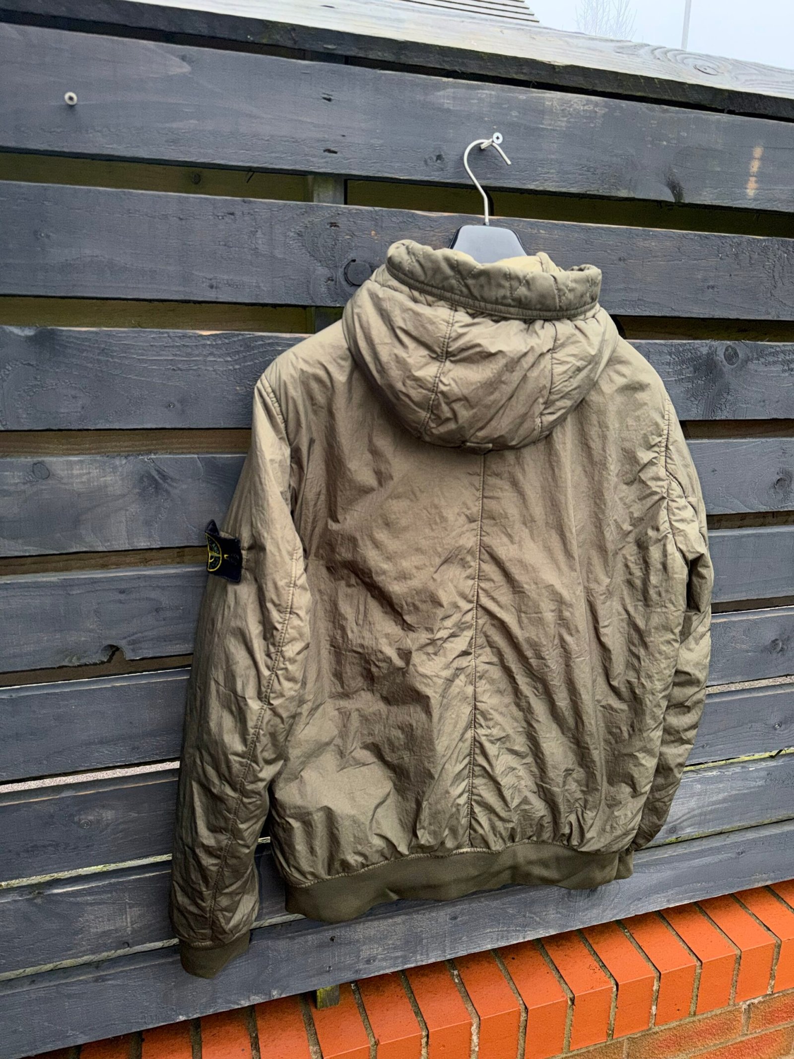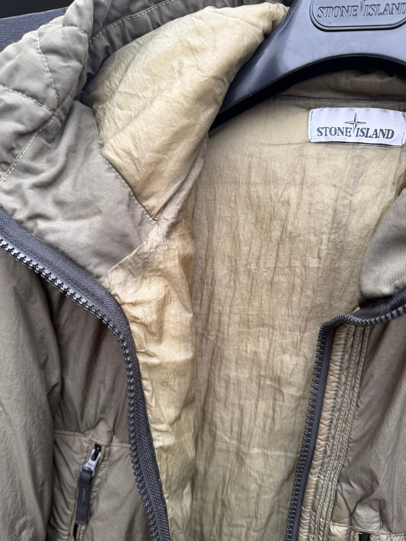 Stone Island Garment Dyed Crinkle Reps NY jacket, made from a durable nylon reps fabric with a distinctive crinkled texture. Garment dyed for rich depth of colour, it features a concealed hood, practical pockets, and the iconic Stone Island compass badge on the sleeve. A functional, weather-ready piece with a clean, technical aesthetic.Good Condition. Small scratch on the front of the jacket. Please Note this item is pre-owned and may show minor signs of wear.