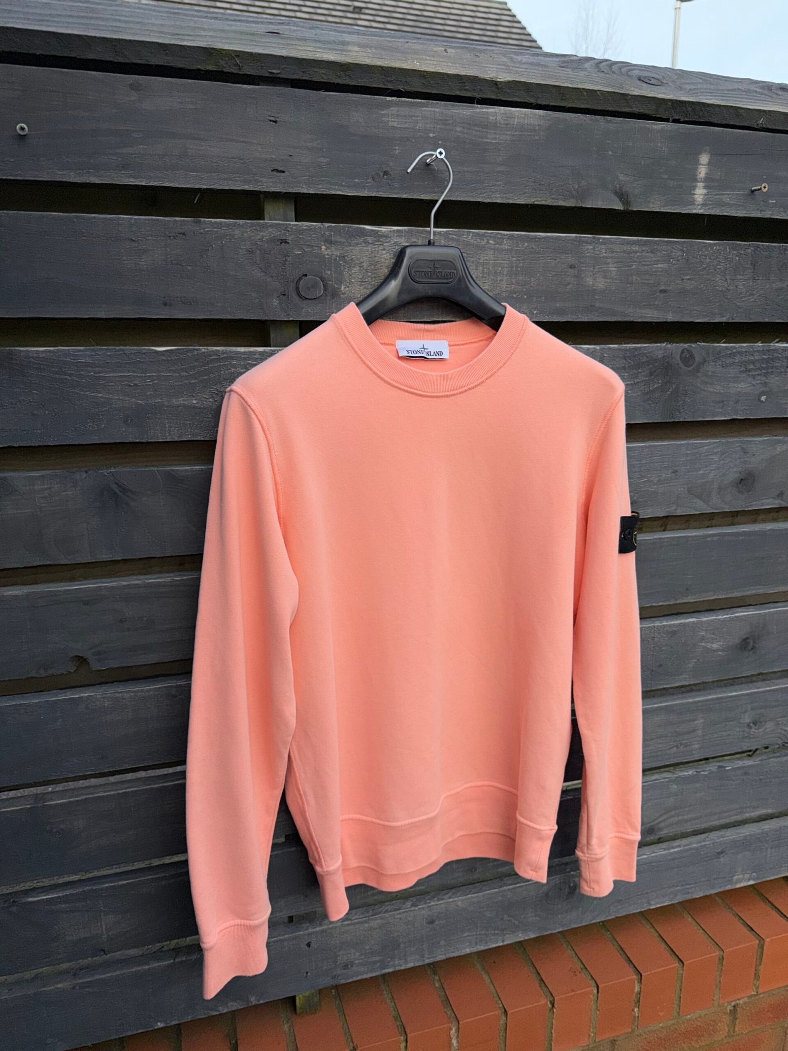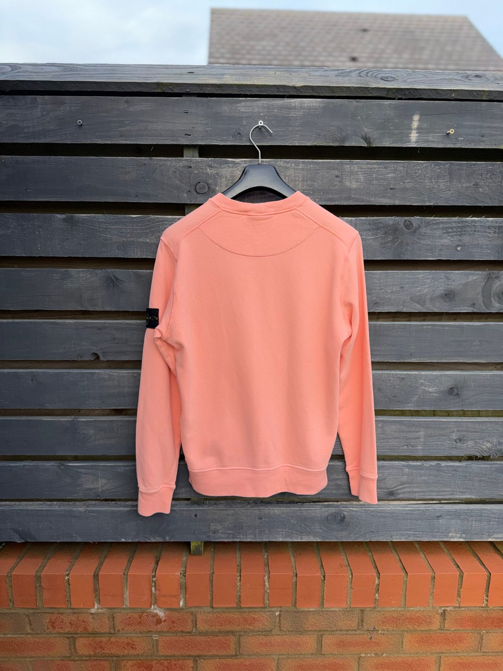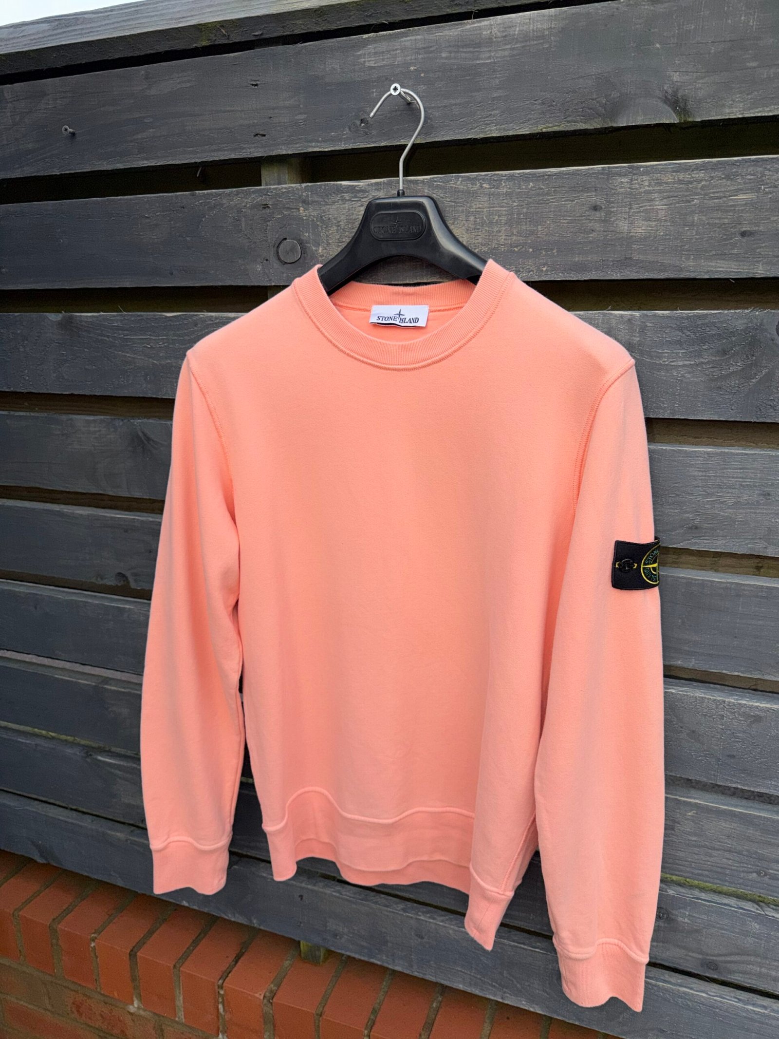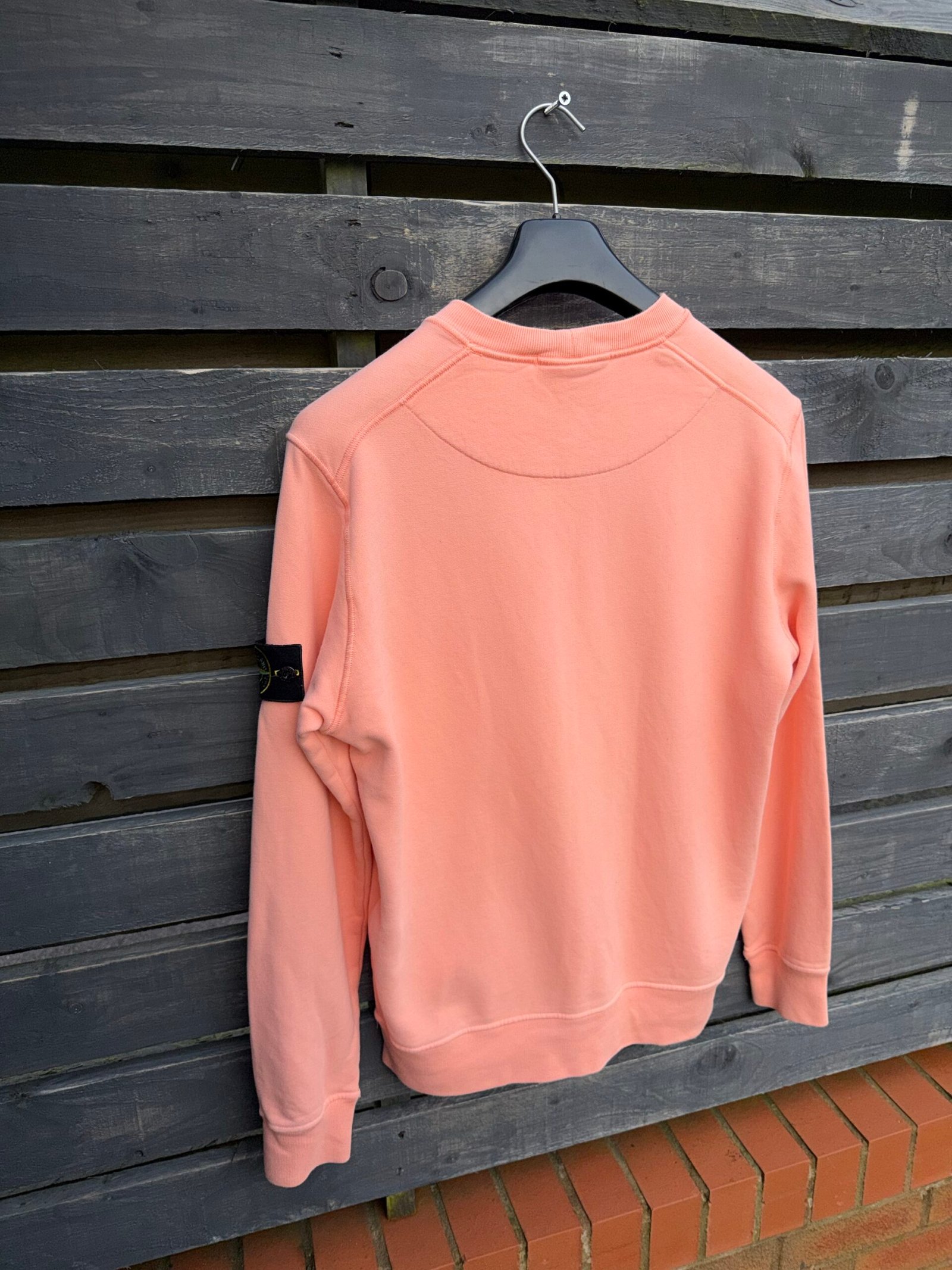 Stone Island Garment Dyed Sweatshirt made from premium cotton fleece and treated with the brand’s signature garment-dye process for deep, rich colour. Designed with a classic crew neck, ribbed trims, and finished with the iconic detachable compass badge on the sleeve — a timeless everyday staple. Very good condition. Please Note this item is pre-owned and may show minor signs of wear.