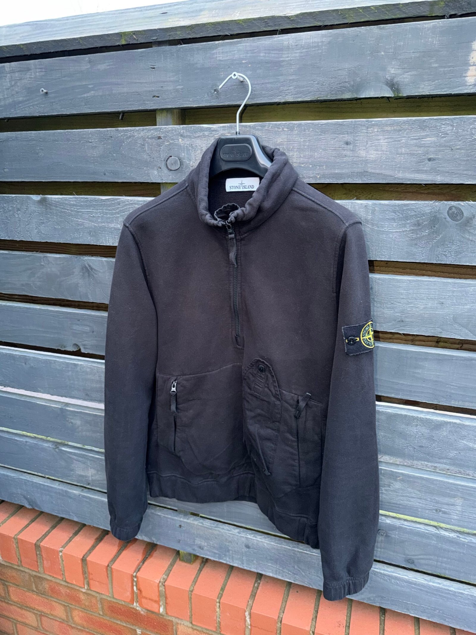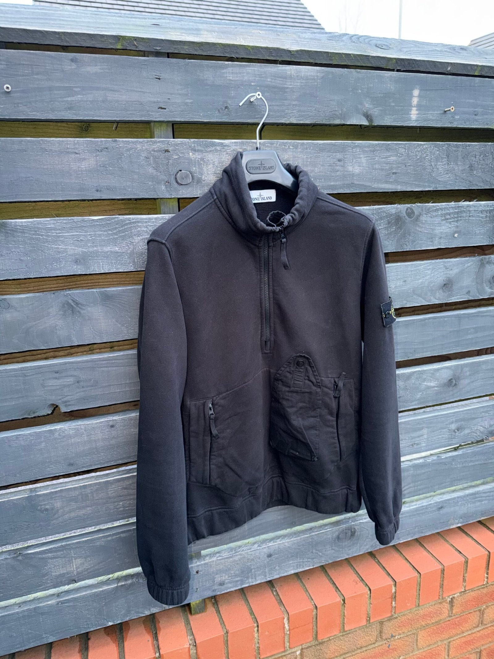 Stone Island Half‑Zip Utility Sweatshirt AW20 – A garment‑dyed fleece‑back sweatshirt from the AW20 collection with a practical half‑zip front, adjustable neck toggles, utility and kangaroo zip pockets, elasticated trims and the removable Stone Island compass patch — blending functional detailing with premium comfort and signature style. Worn, good condition. Please Note this item is pre-owned and may show minor signs of wear.