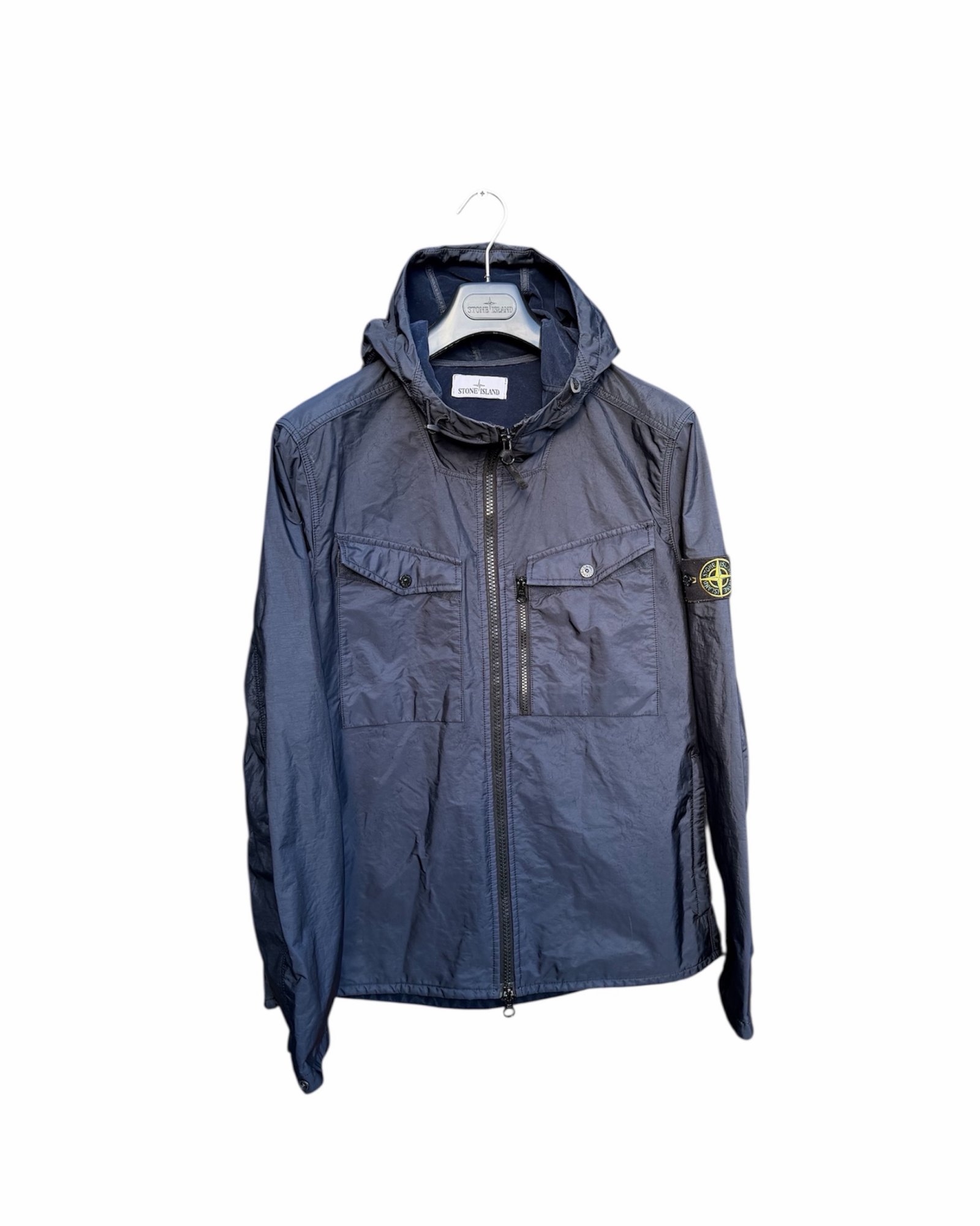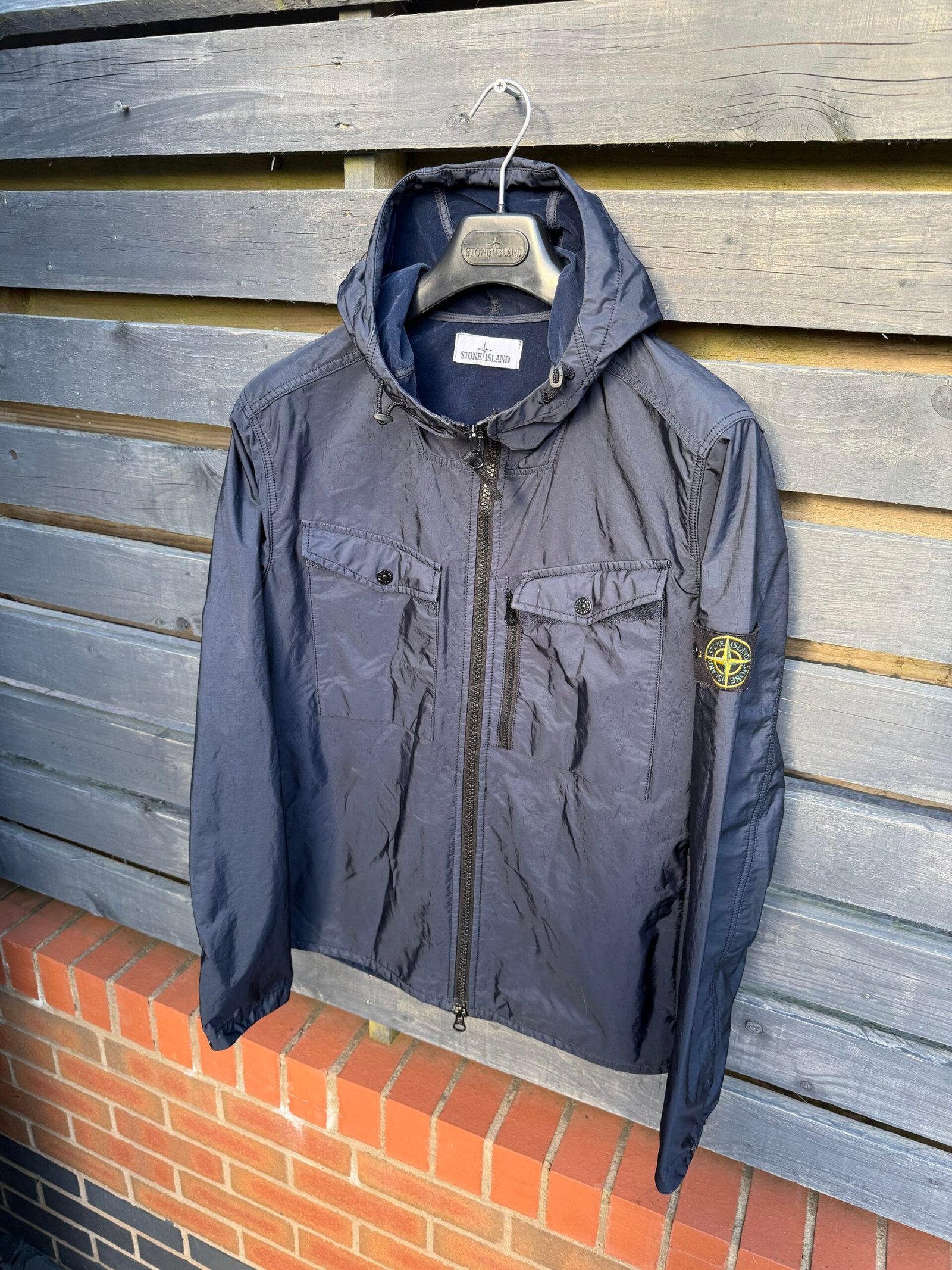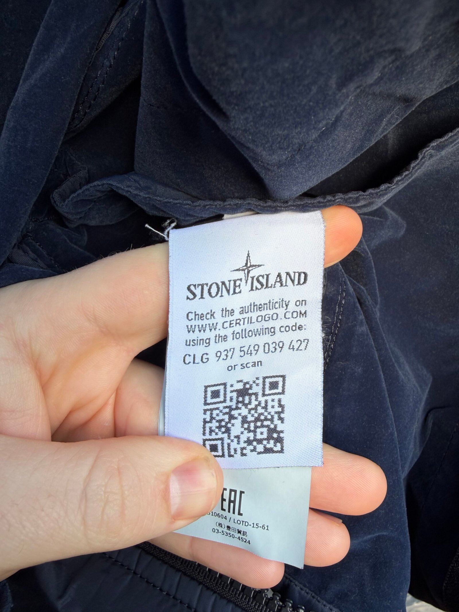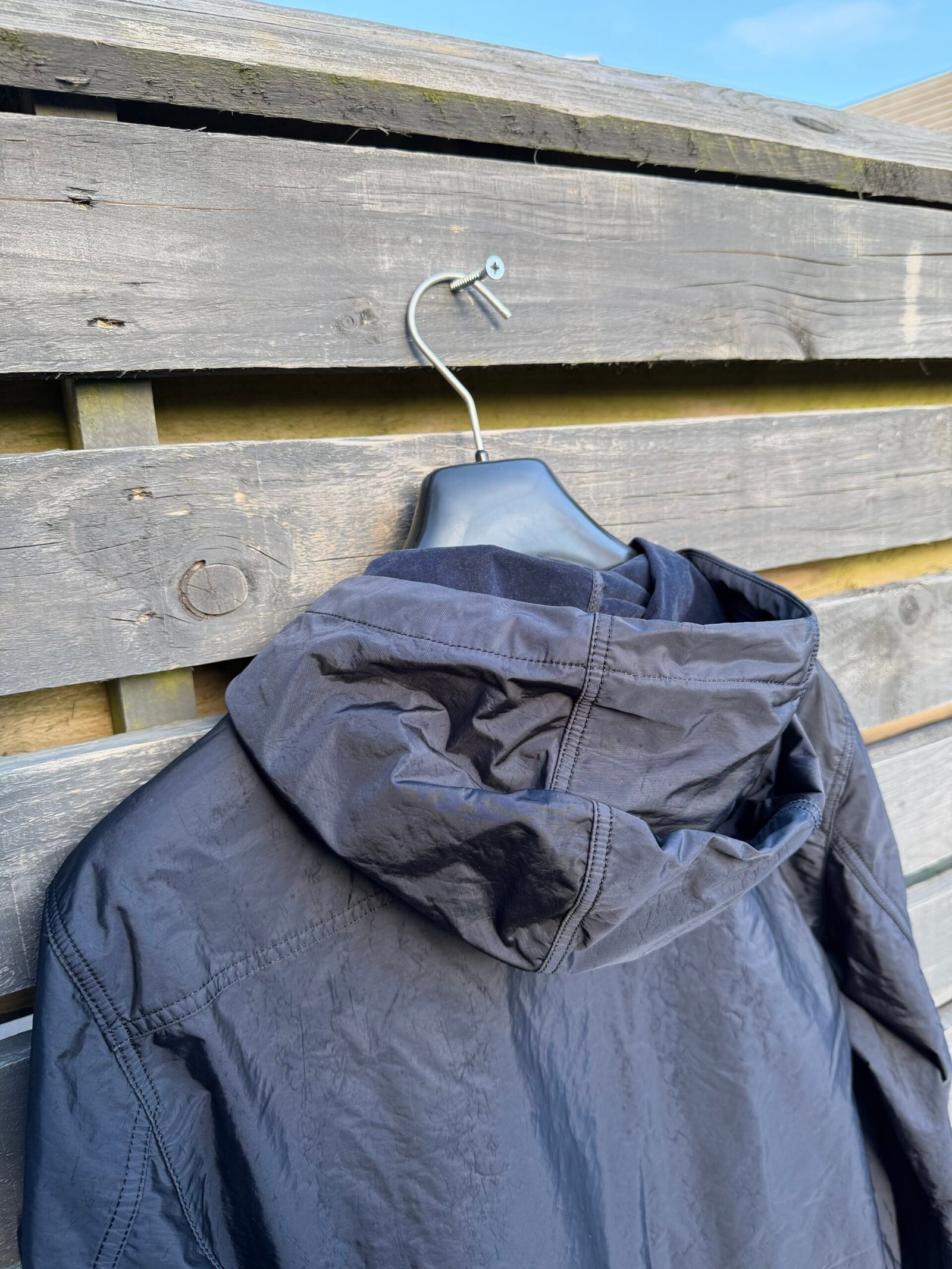 Premium lightweight Lamy construction with flocked detailing, giving it that signature soft, textured finish. Features the iconic detachable Compass badge, two-way zip, and adjustable hood. A standout technical piece with the perfect blend of comfort, durability, and classic Stone Island style. Worn, good condition.