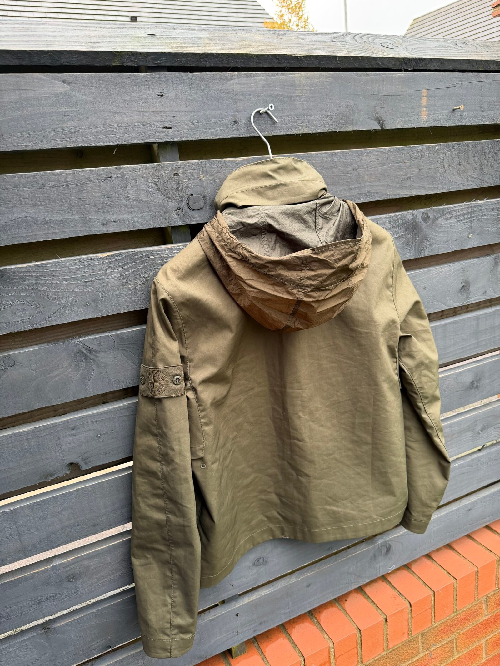 A standout piece from the renowned Ghost Collection by Stone Island, this Mac Supima 2L Ghost Piece is rendered in ultra-premium Supima® cotton canvas, bonded into a two-layer construction for exceptional structure and feel. Very good condition.