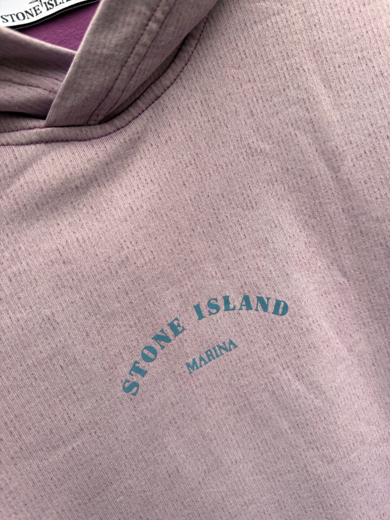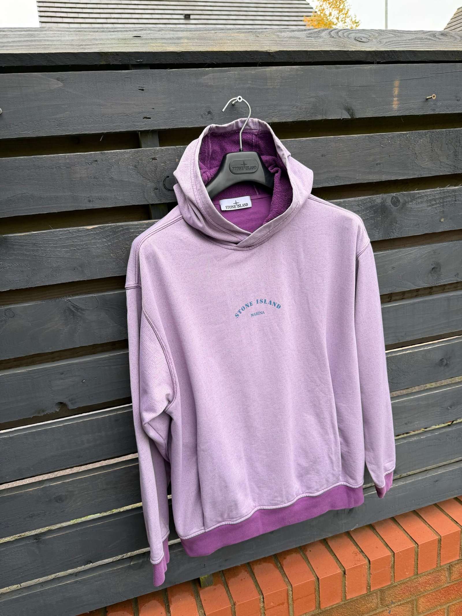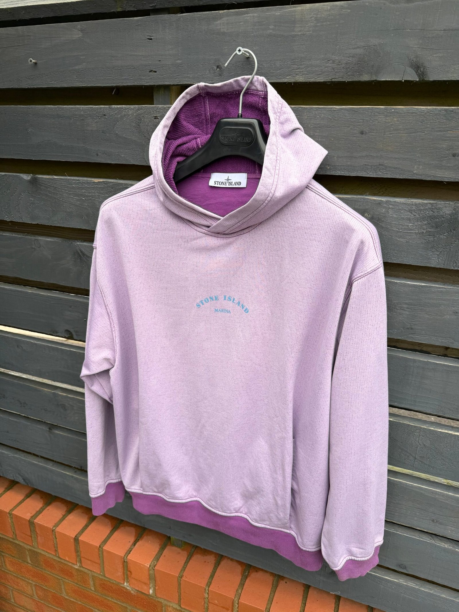 This premium hooded sweatshirt from Stone Island’s Marina line blends minimal design with the brand’s renowned craftsmanship. Made from ultra-soft cotton fleece, it features a relaxed fit with a drawstring hood, ribbed trims, and a tonal zip pocket detail on the chest. The Marina collection strips back the usual compass badge for a more understated aesthetic, with clean embroidery or printed branding inspired by Stone Island’s nautical roots. Very Good condition.