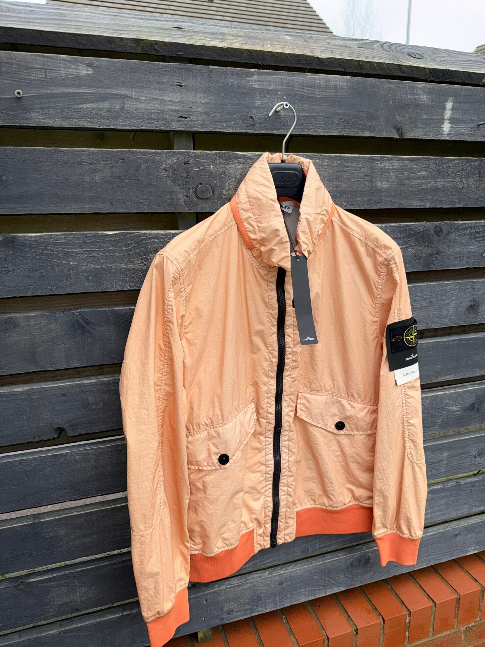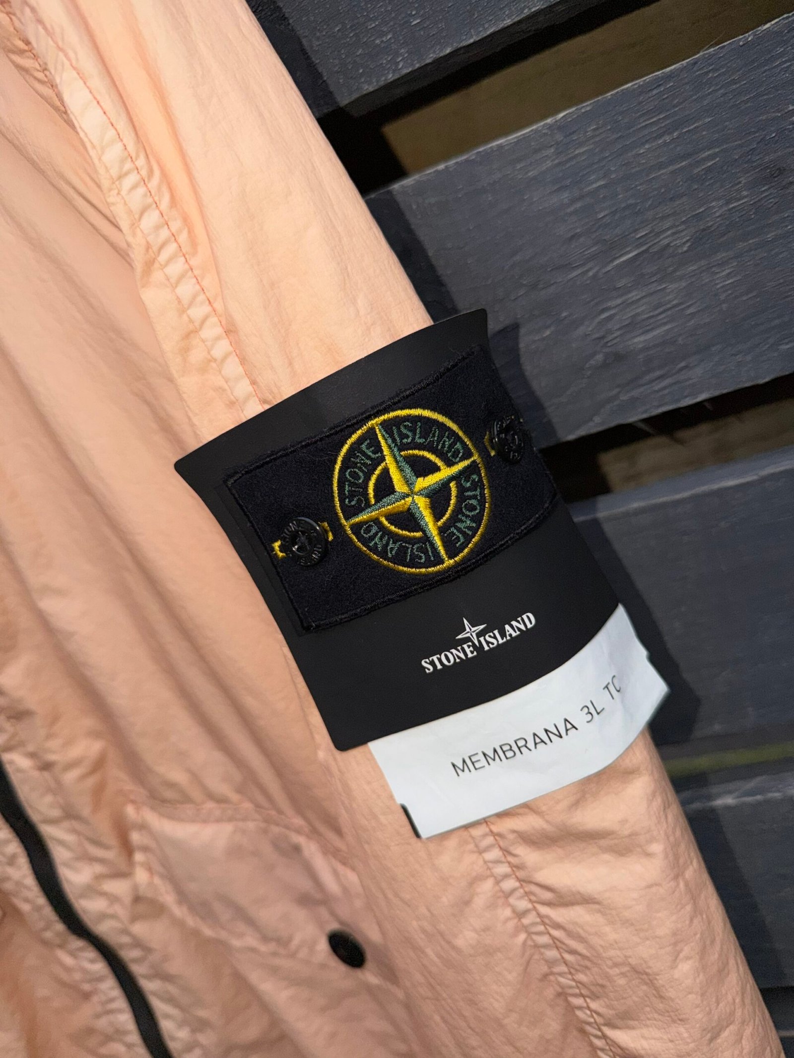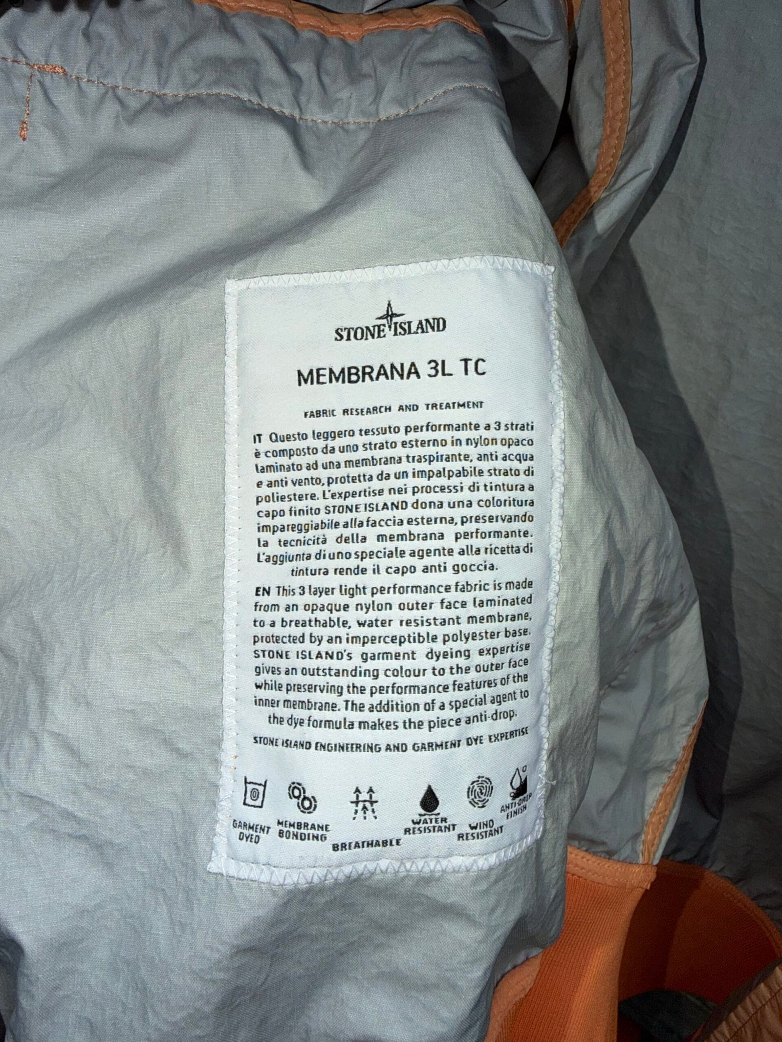 Stone Island Membrana 3L TC – A high-performance outerwear piece made with Membrana 3L TC fabric, offering a three-layer construction for lightweight weatherproofing, breathability, and durability. Features a technical design with the signature Stone Island compass badge for modern, functional style.