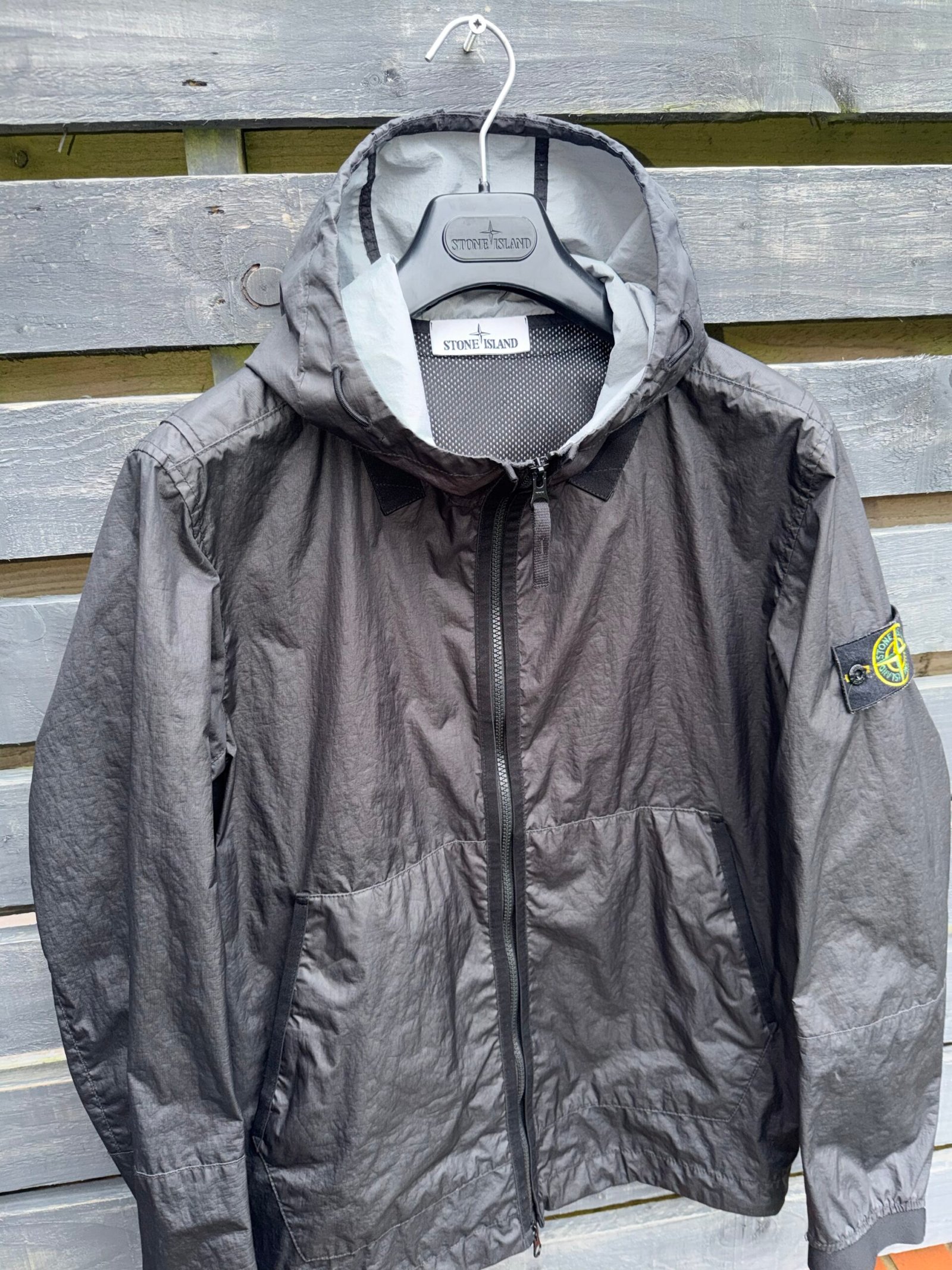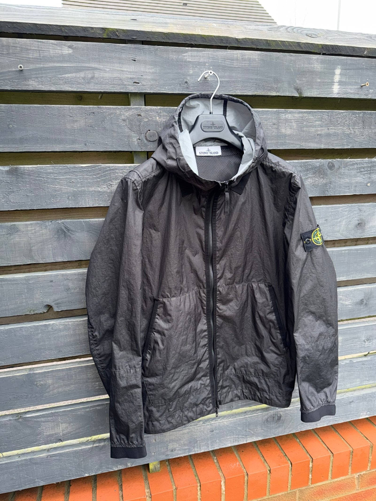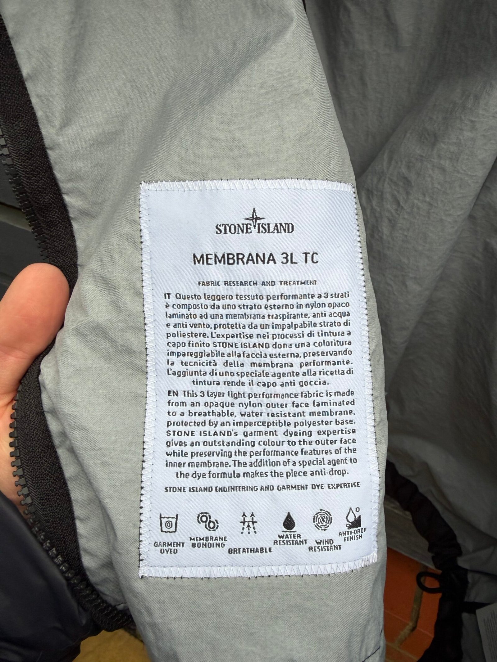 The Stone Island Membrana 3L TC jacket is a premium technical outerwear piece built around Stone Island’s signature three‑layer performance Membrana fabric. This lightweight yet protective textile features an opaque nylon outer face laminated to a breathable, wind‑ and water‑resistant membrane, backed by an imperceptible polyester base — combining comfort with everyday weather defence. Very good condition. Please Note this item is pre-owned and may show minor signs of wear.