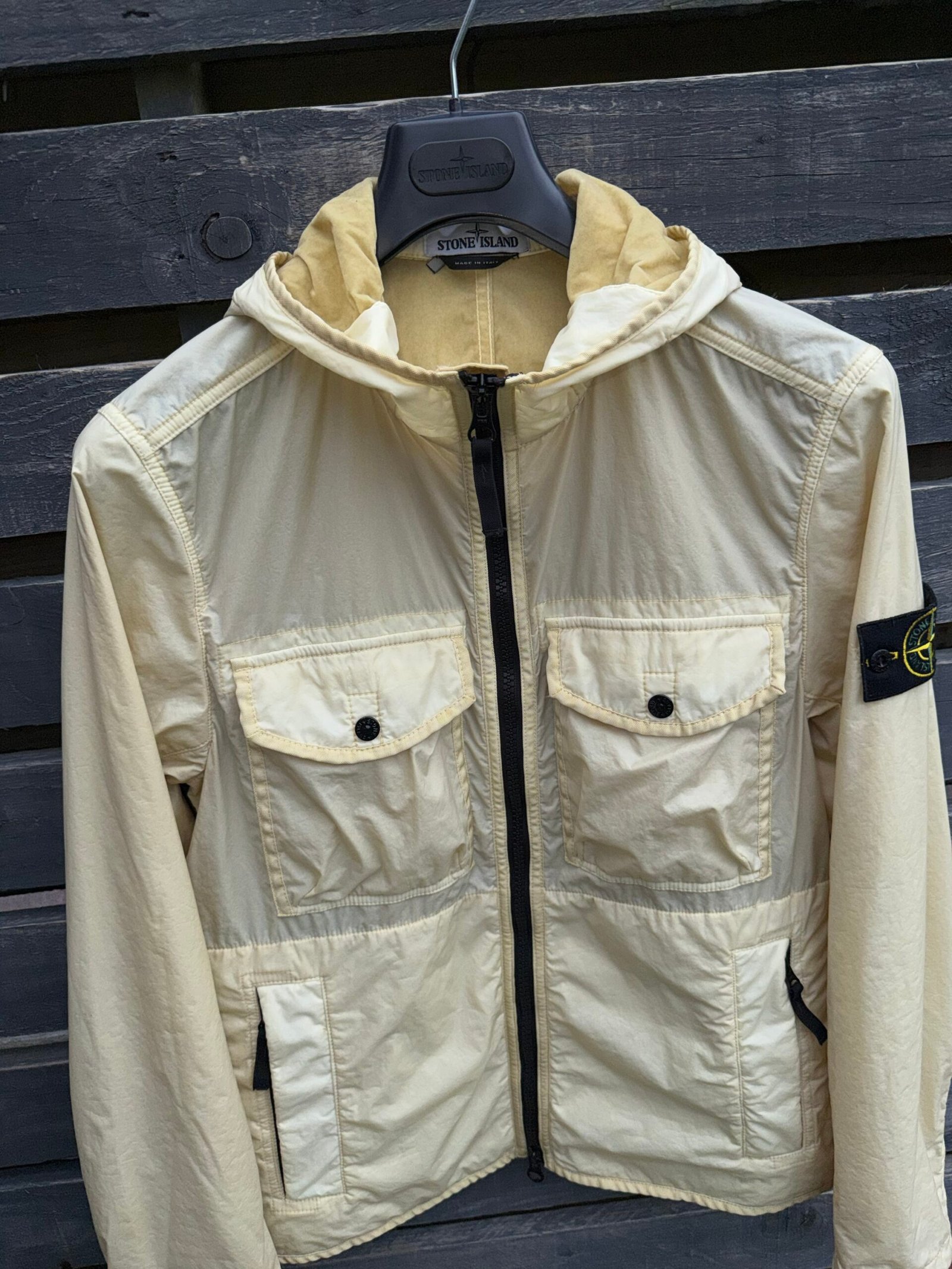 The Stone Island Multipocket Lamy Flock Jacket is a standout technical piece that combines innovative fabric treatment with functional design. Made from Lamy Flock fabric, it features a unique textured finish created through a specialised flocking process that gives the surface a distinctive tactile feel. Designed with multiple utility pockets, a full zip fastening, and the iconic Stone Island compass badge on the sleeve, this jacket blends practicality with the brand’s signature experimental aesthetic. Very good condition. Please Note this item is pre-owned and may show minor signs of wear.