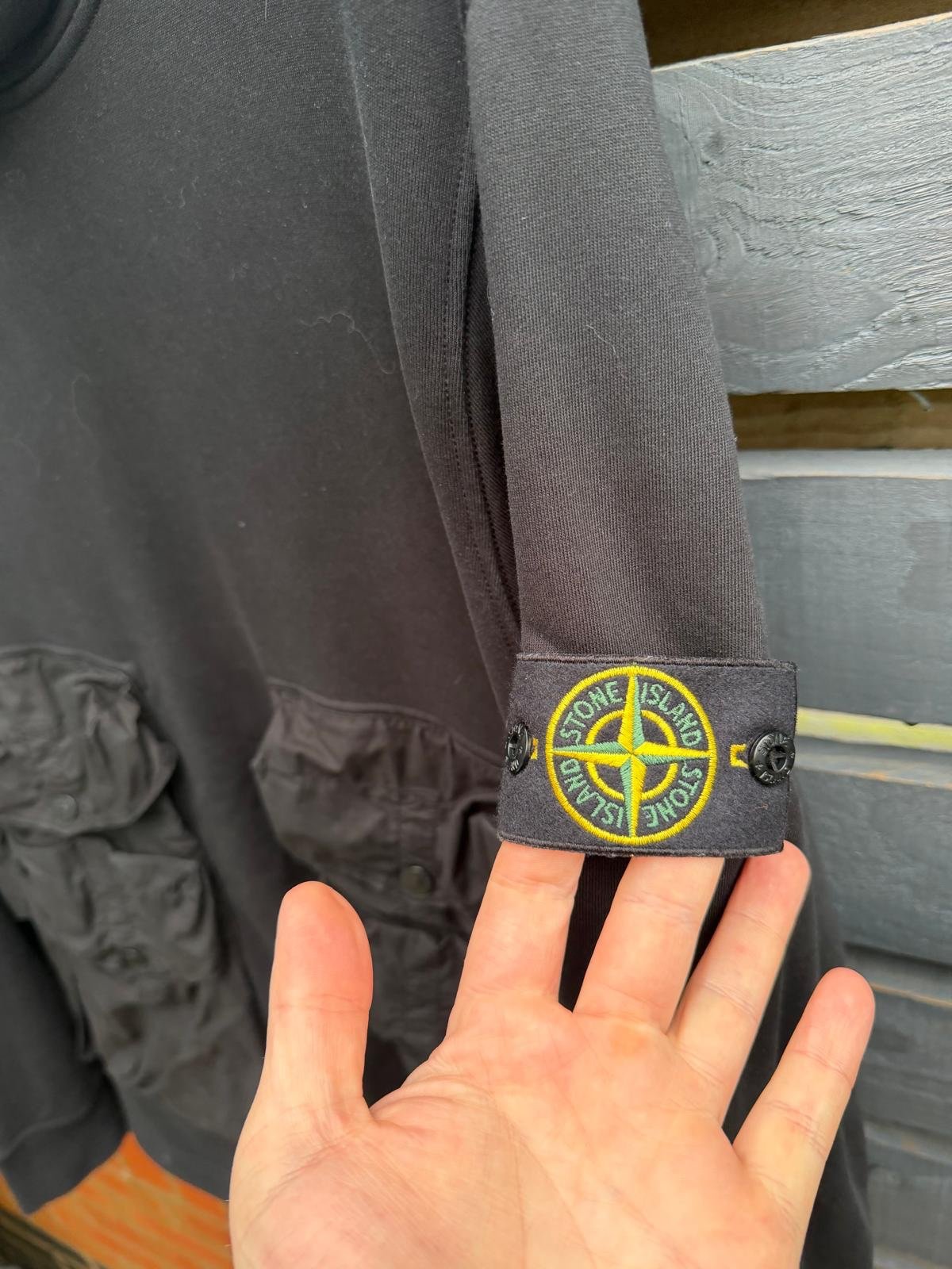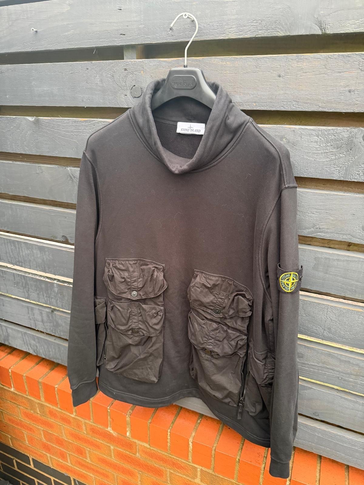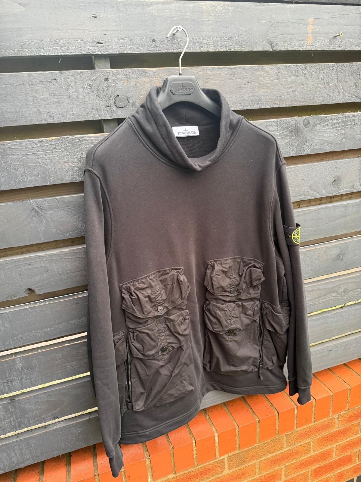A versatile, utility-inspired smock sweatshirt from Stone Island, blending streetwear comfort with tactical practicality. Featuring multiple functional pockets, a relaxed pullover silhouette with drawstring hem/hood/adjustable cuffs (depending on version), and the brand’s signature badge, it’s ideal for layering or as a lightweight standalone outer layer — perfect for transitional weather or urban styling. Very good condition.