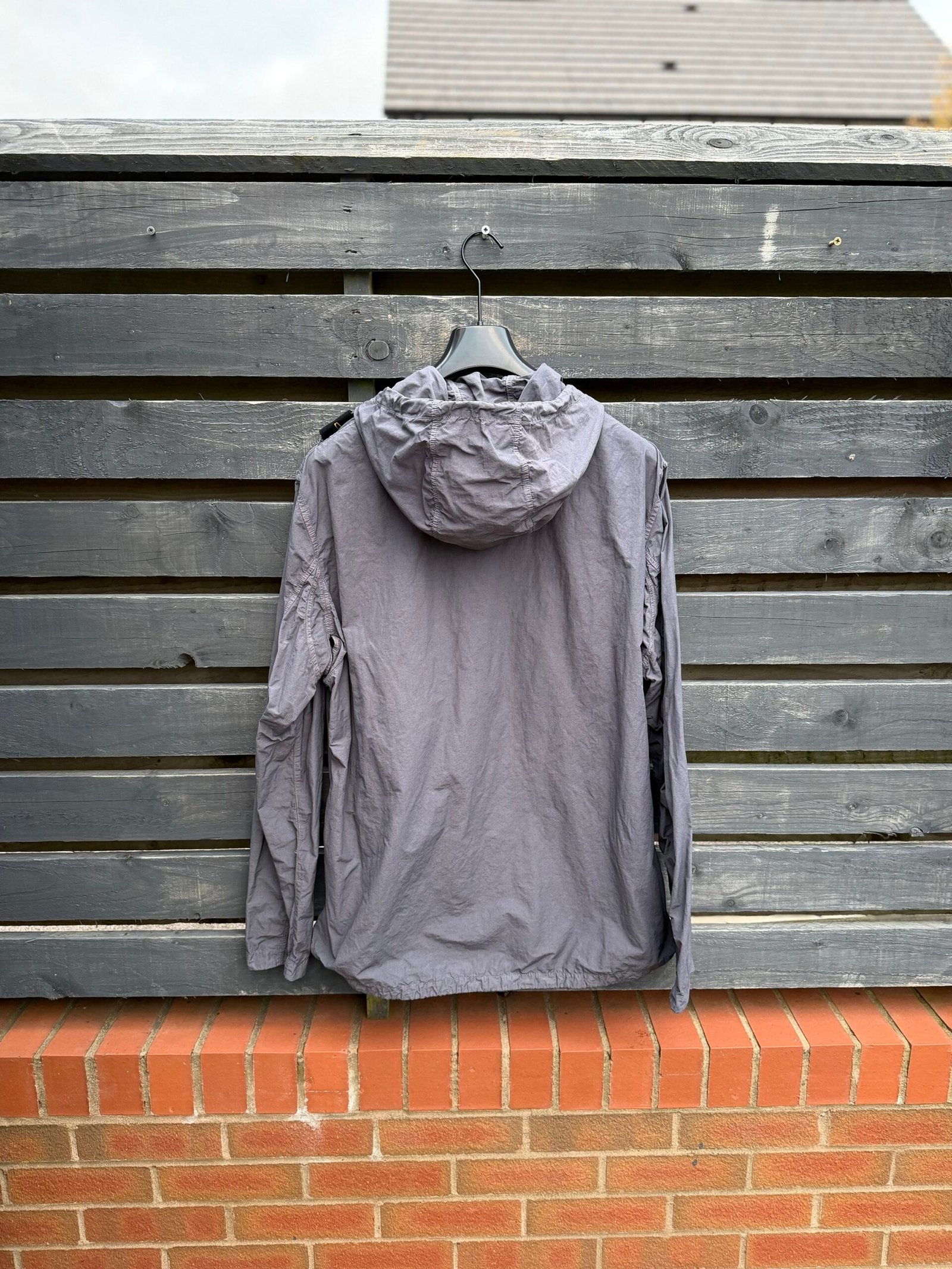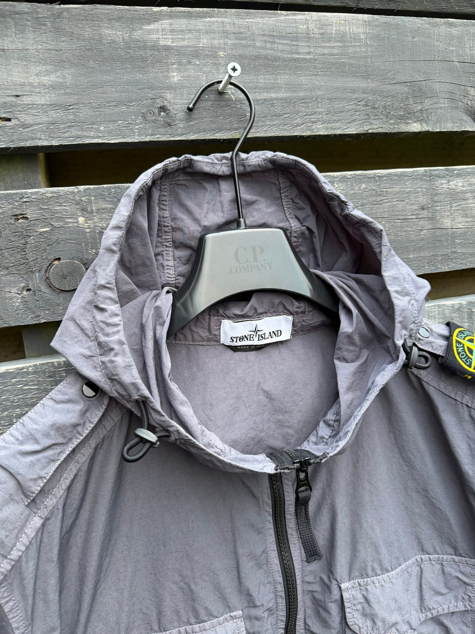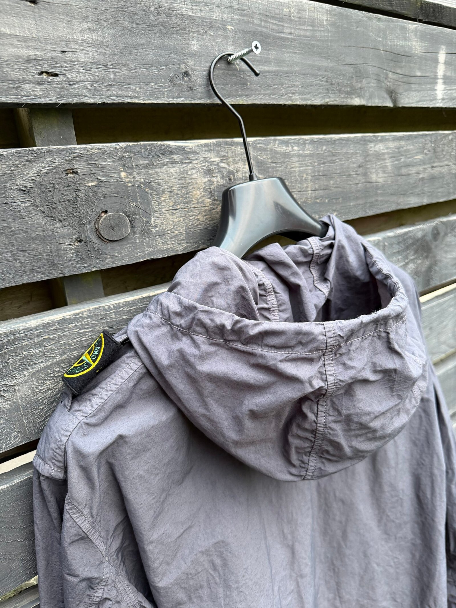 A lightweight, technical-leaning overshirt crafted from stone-durable Naslan-TC nylon — mechanically spun for abrasion resistance. Garment-dyed for rich colour variation and treated with a corrosion/anti-drop finish that gives each piece a unique, slightly weathered look. Features a two-way zip, a hood, elastic cuffs and hem, and the classic Stone Island compass badge for an urban utilitarian finish. Very good condition.