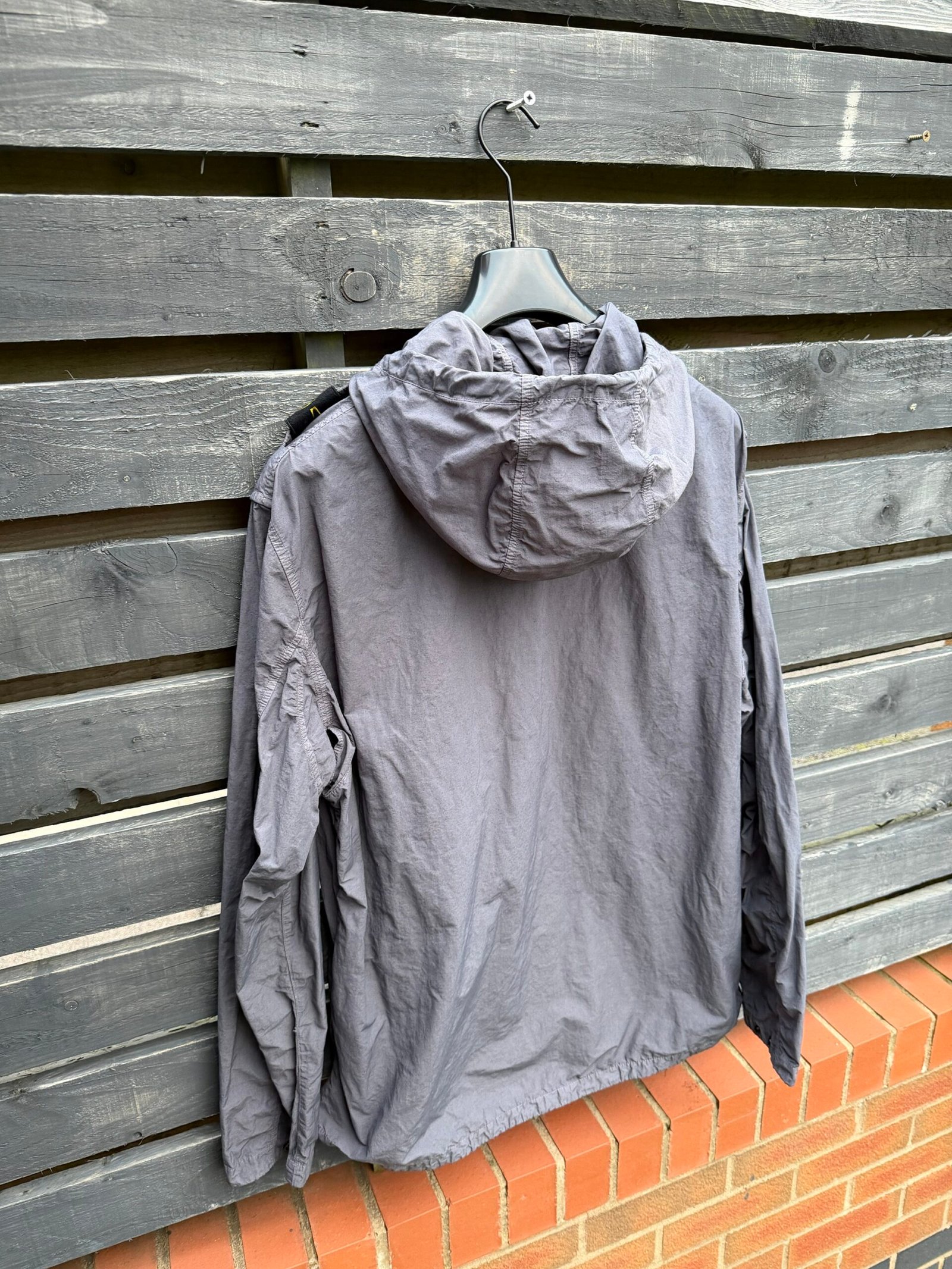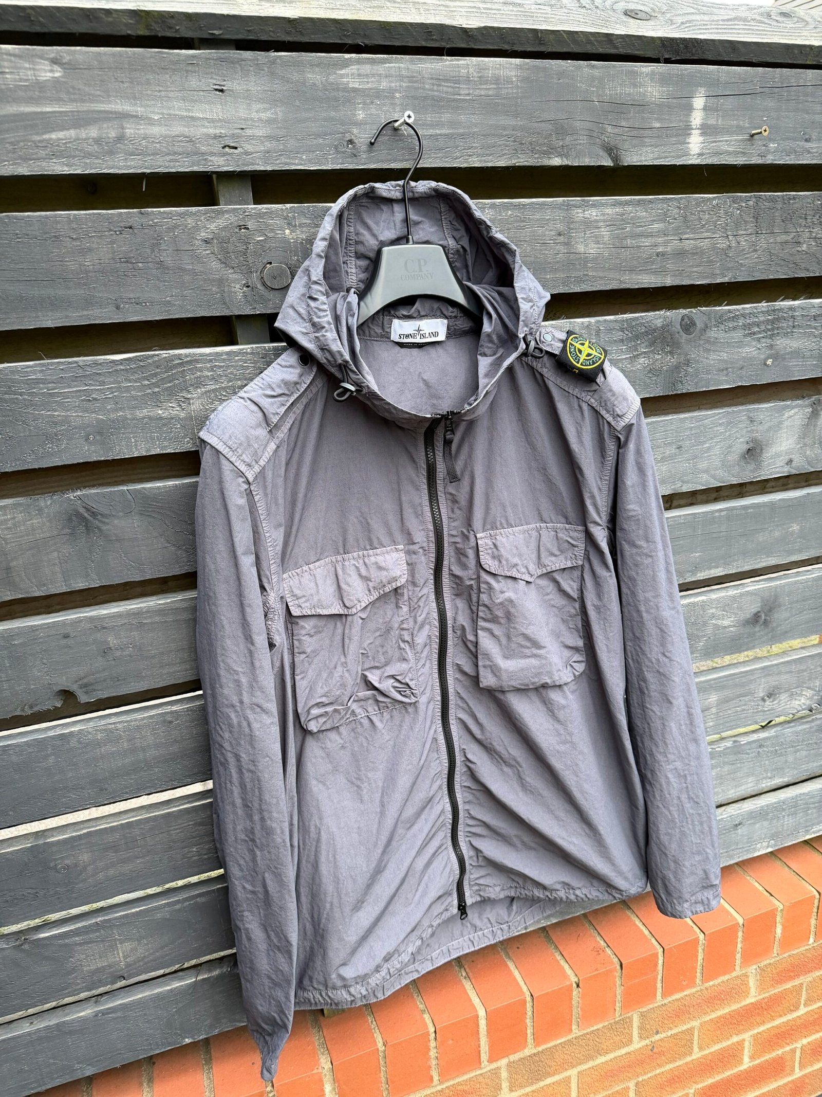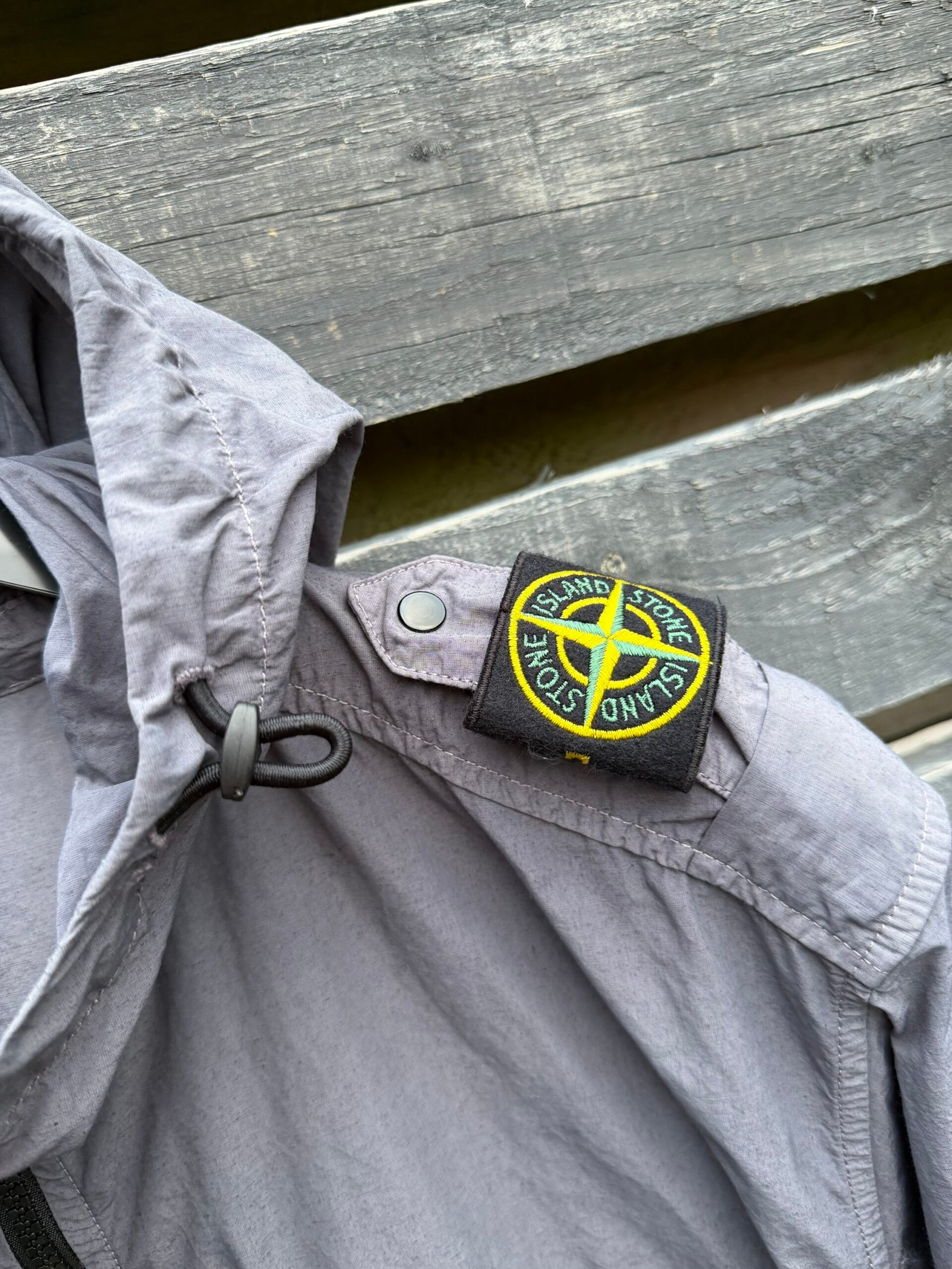 A lightweight, technical-leaning overshirt crafted from stone-durable Naslan-TC nylon — mechanically spun for abrasion resistance. Garment-dyed for rich colour variation and treated with a corrosion/anti-drop finish that gives each piece a unique, slightly weathered look. Features a two-way zip, a hood, elastic cuffs and hem, and the classic Stone Island compass badge for an urban utilitarian finish. Very good condition.
