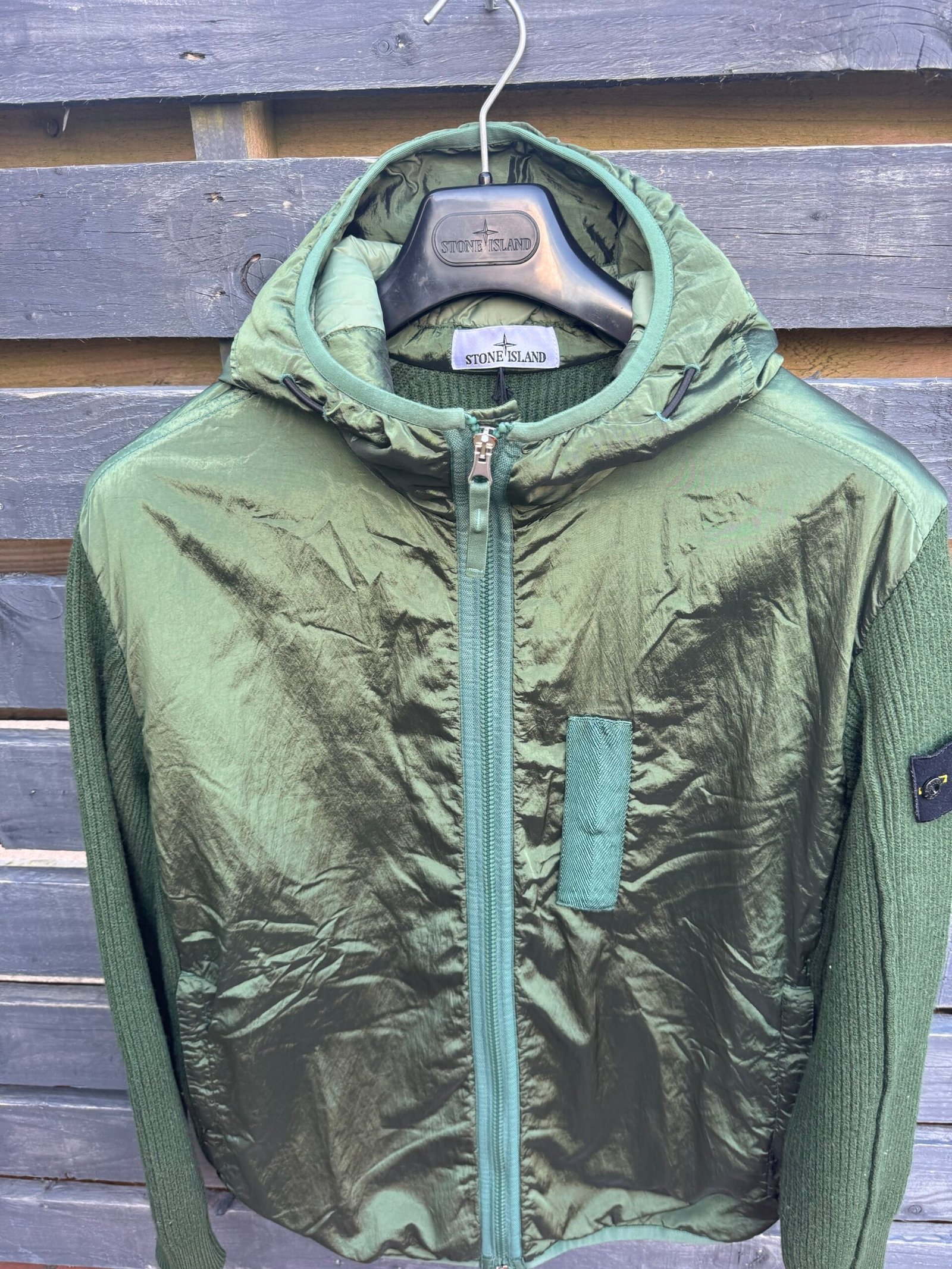 Slick, sharp, and sustainably made — this jacket means business. Crafted from recycled Econyl nylon, it’s got that signature Stone Island shimmer with a deep green hue that works anywhere.