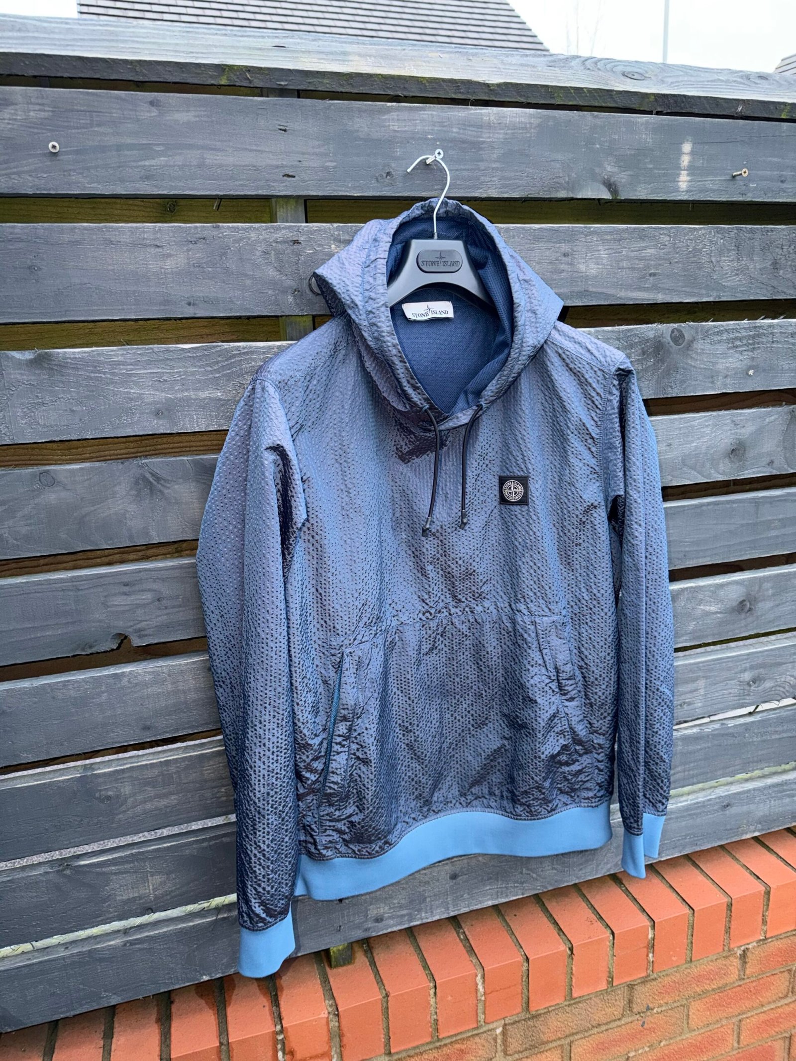 Stone Island Poly Colour Frame Smock crafted from lightweight technical poly fabric with the signature Colour Frame treatment for a distinctive, depth-rich finish. Designed with a functional smock silhouette, it features utilitarian detailing and a clean, modern edge—an innovative outerwear piece rooted in Stone Island’s experimental heritage. Very good condition. Please Note this item is pre-owned and may show minor signs of wear.