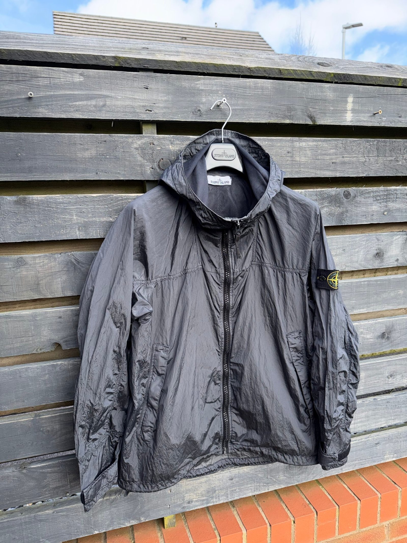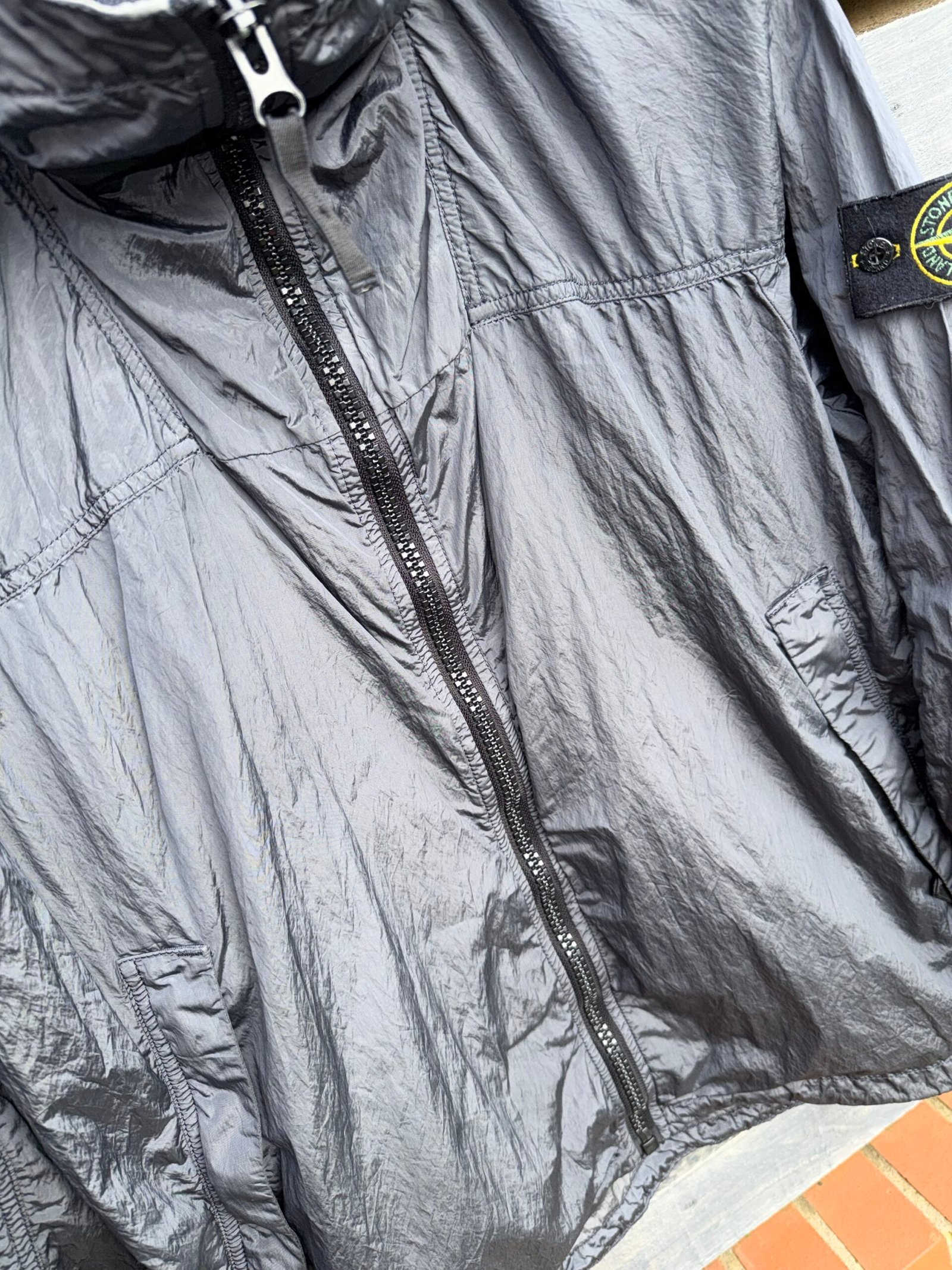 Stone Island Nylon Metal Watro Jacket. Crafted from the brand’s signature Nylon Metal fabric with a Watro treatment for a lightly crinkled texture and water-resistant finish. This lightweight jacket features a full-zip closure, adjustable hood, and practical pockets for everyday wear. Finished in a distinctive iridescent tone and completed with the iconic Stone Island compass badge on the sleeve, combining technical performance with the brand’s unmistakable aesthetic. Very good condition. Please Note this item is pre-owned and may show minor signs of wear.