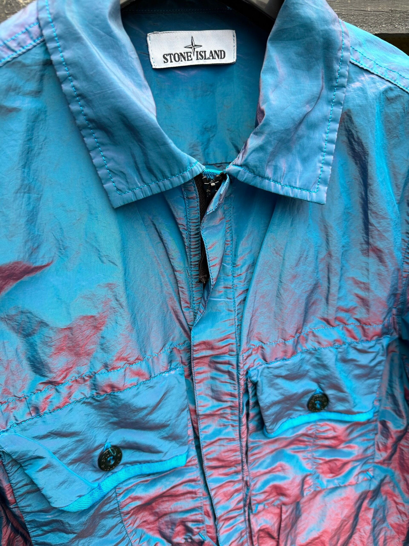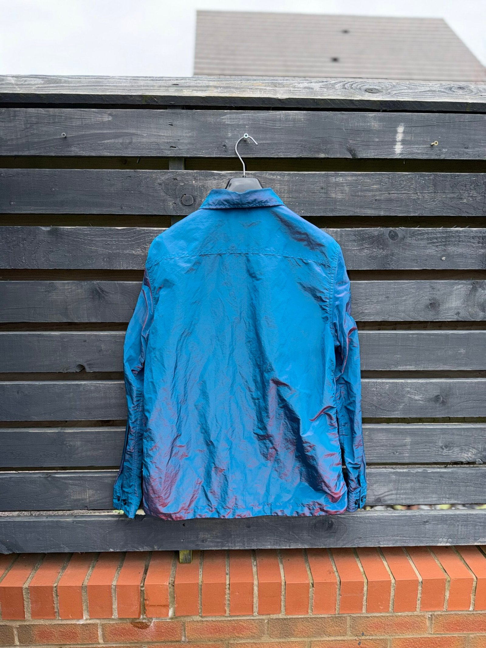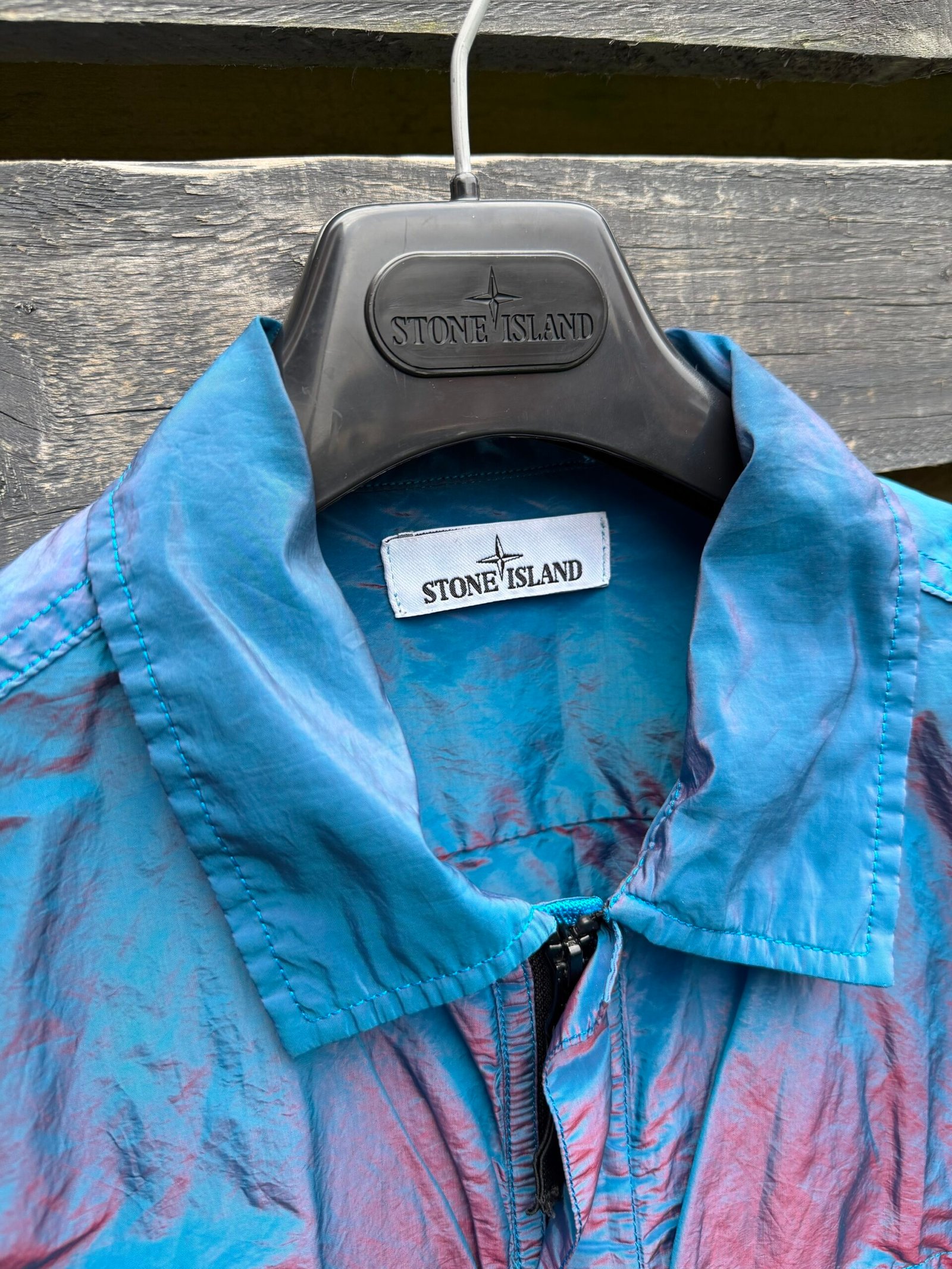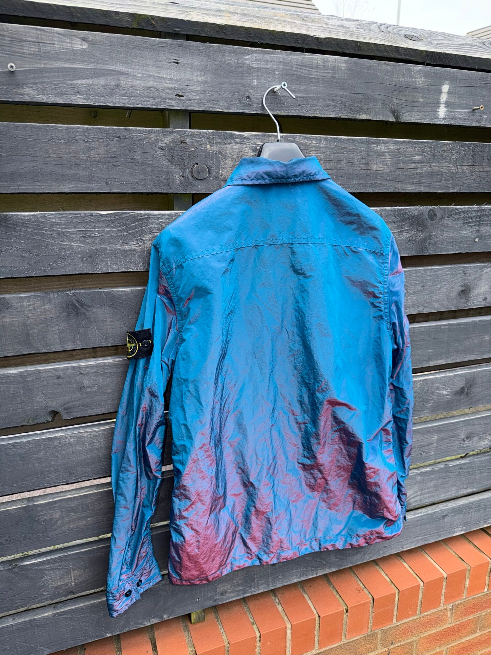 Crafted from Stone Island’s advanced Nylon Metal Weft fabric, this overshirt delivers a subtle iridescent sheen with a more textured, technical finish. Garment-dyed for rich depth, lightweight yet durable, and styled with clean utility detailing. Finished with the iconic compass badge — a standout layer that blends SI innovation with everyday wearability. Very good condition for the price, few neck marks.