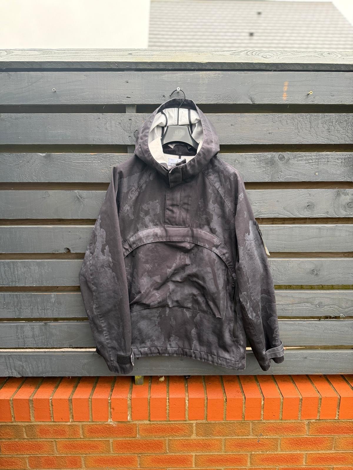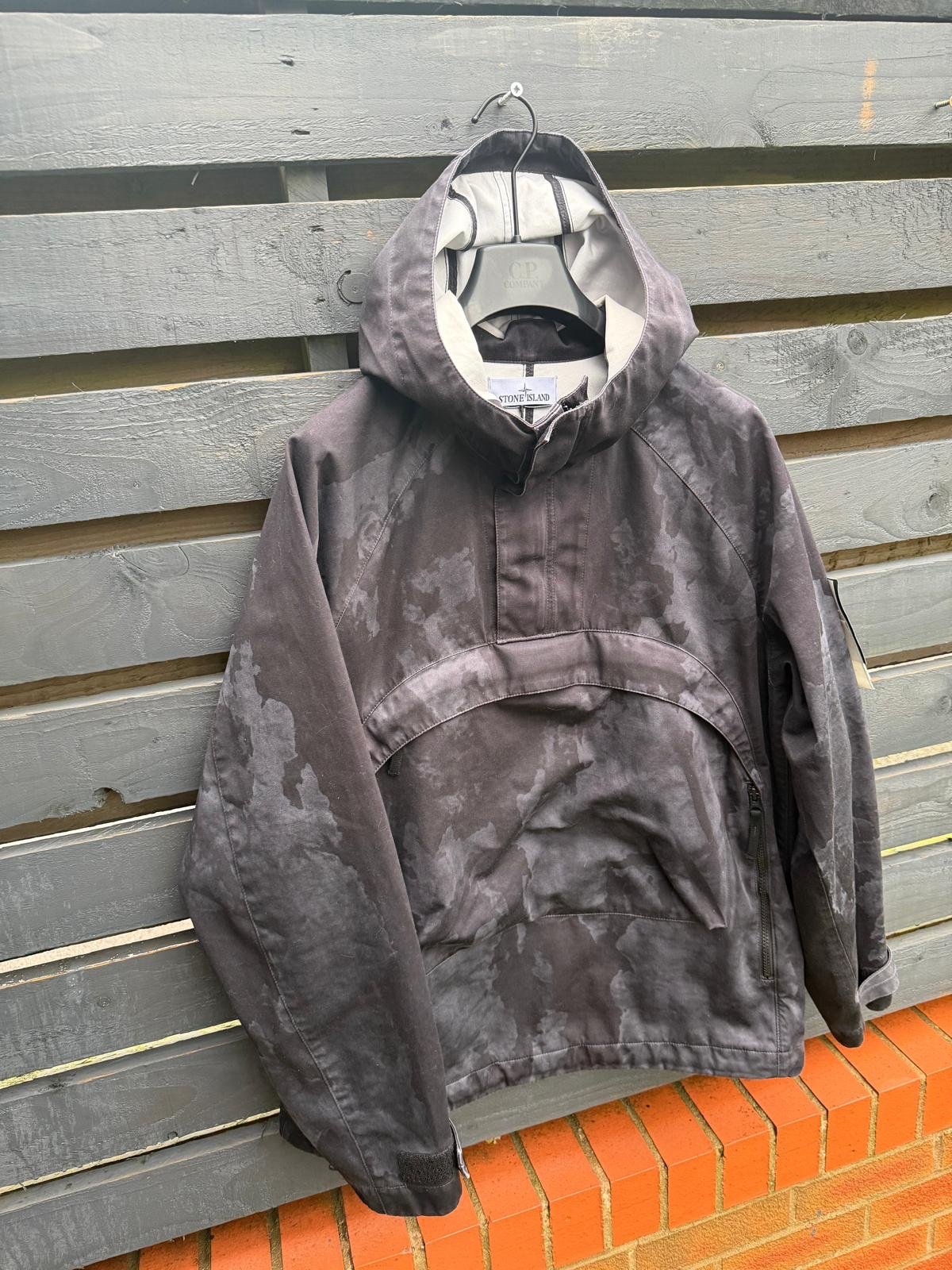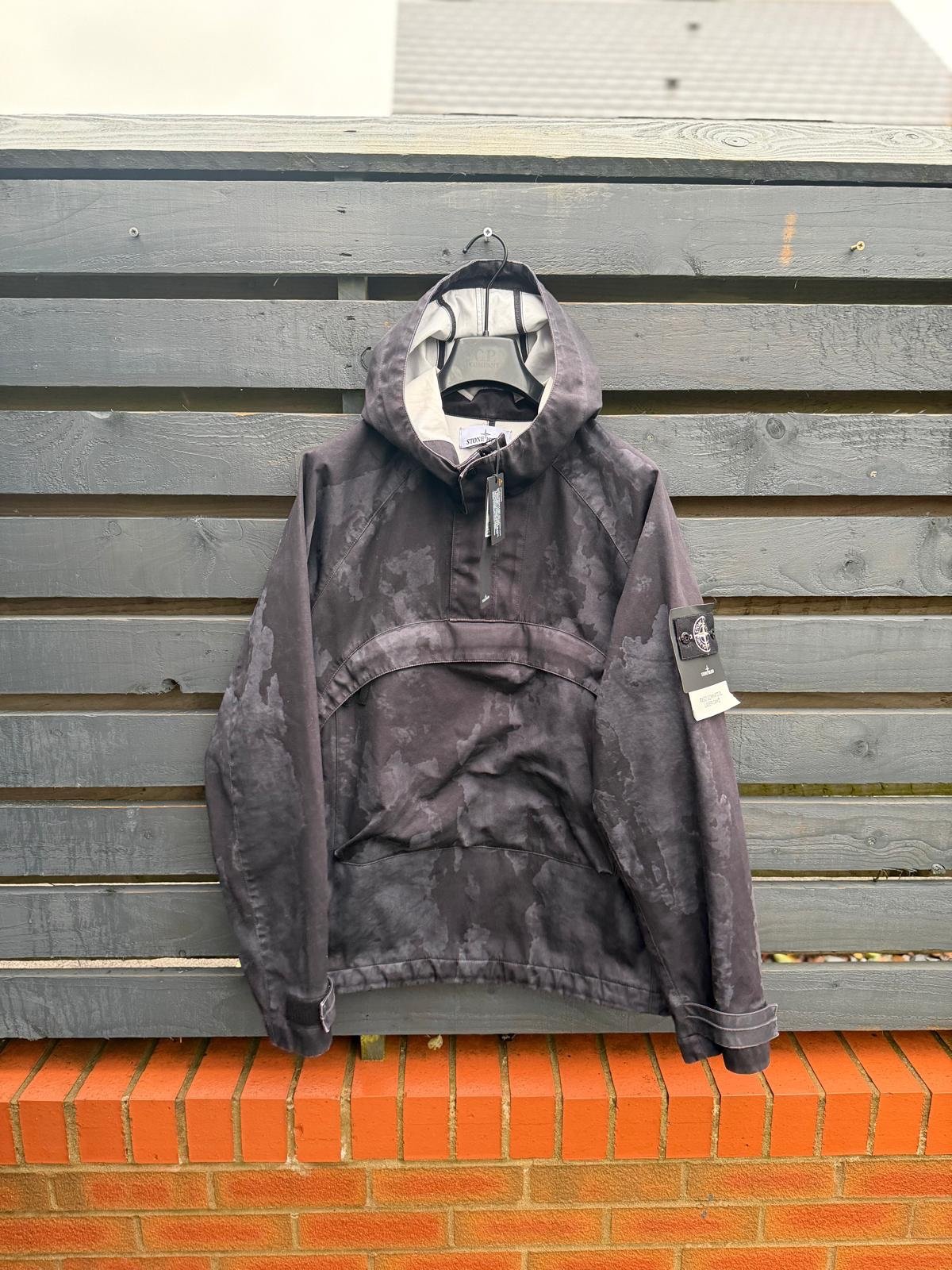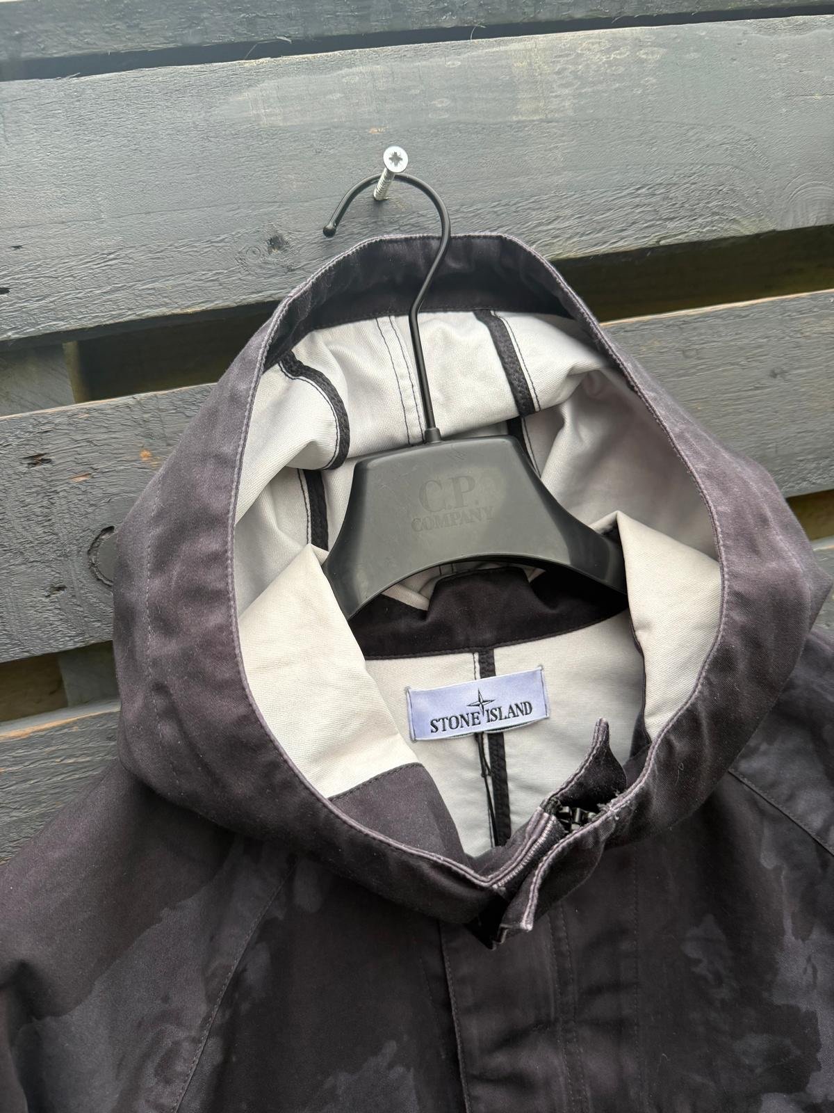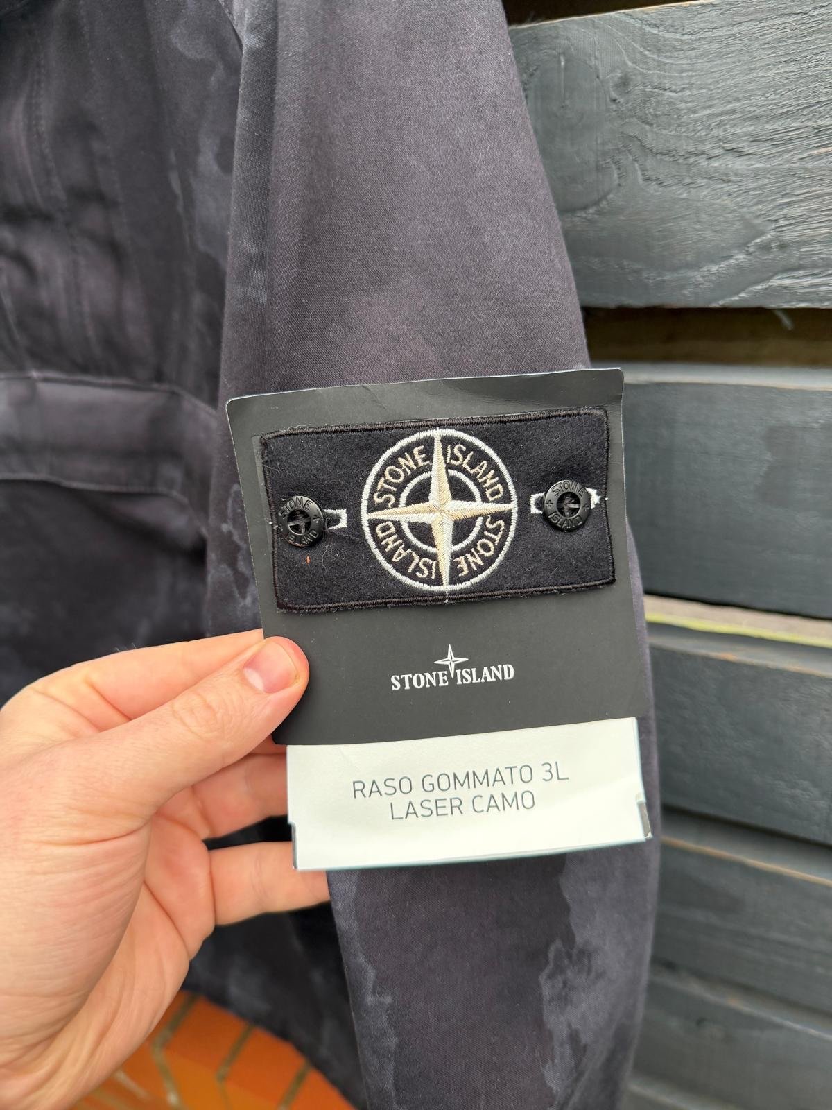 A cutting-edge reinterpretation of Stone Island’s classic Raso Gommato outerwear: this 3-layer “Laser Camo” jacket pairs a satin-cotton base with a waterproof, windproof, breathable membrane and is finished with a unique laser-etched camouflage motif. Garment-dyed and treated with an anti-drop coating for weather resistance, it delivers technical performance without sacrificing distinctive style. Complete with concealed zip closure, multiple secure pockets and the signature Stone Island badge, it’s an elevated field jacket for urban or outdoor use.