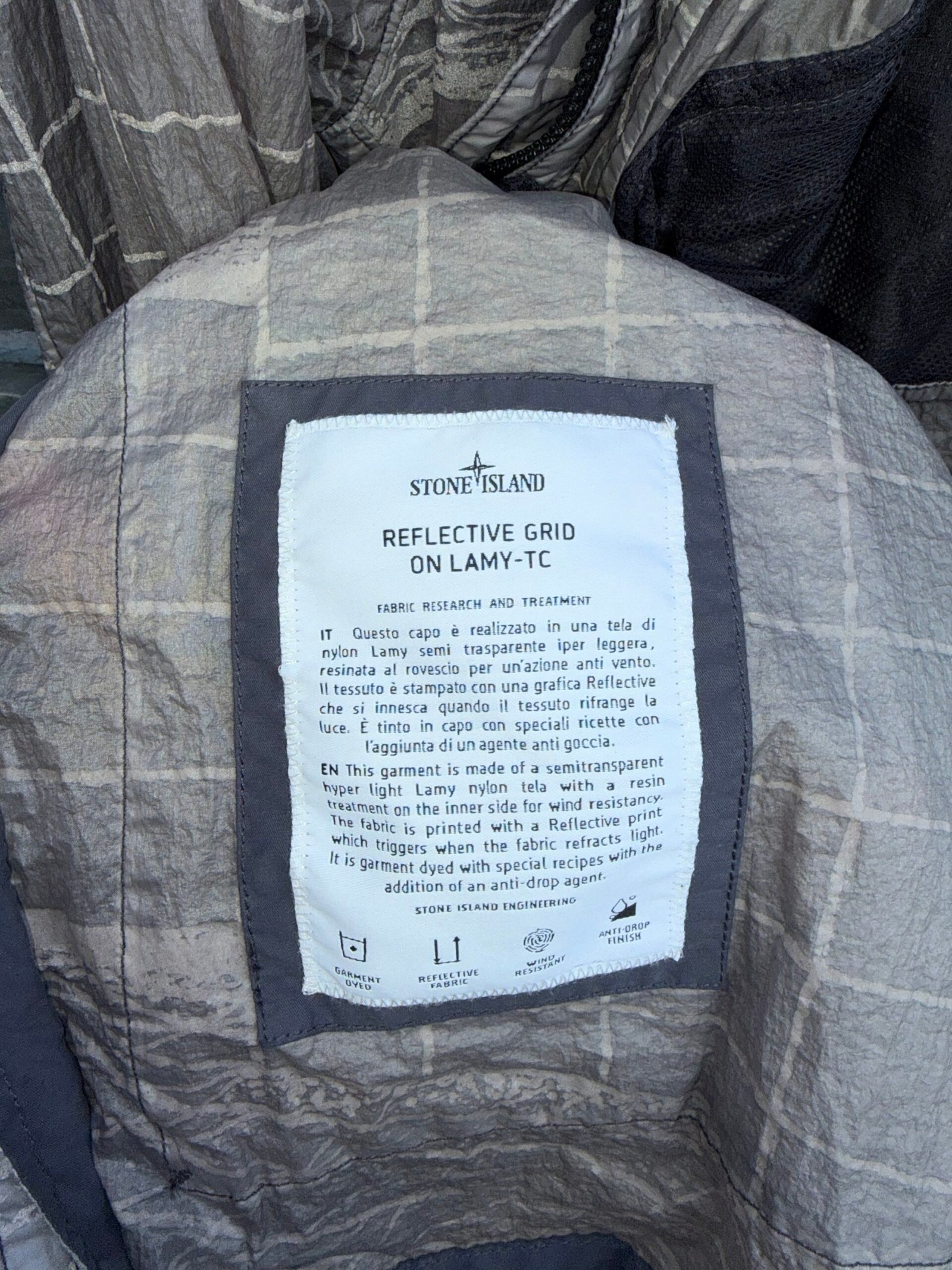Stone Island Reflective Grid on Lamy-TC Jacket – a technical outerwear piece showcasing Stone Island’s innovative fabric development. Constructed from Lamy-TC nylon canvas and garment dyed for a rich depth of colour, the jacket features a striking reflective grid pattern that enhances visibility and adds a distinctive aesthetic. Finished with functional detailing and the iconic Stone Island compass badge on the sleeve, it perfectly blends technical performance with the brand’s signature casualwear style. Immaculate. Please Note this item is pre-owned and may show minor signs of wear.