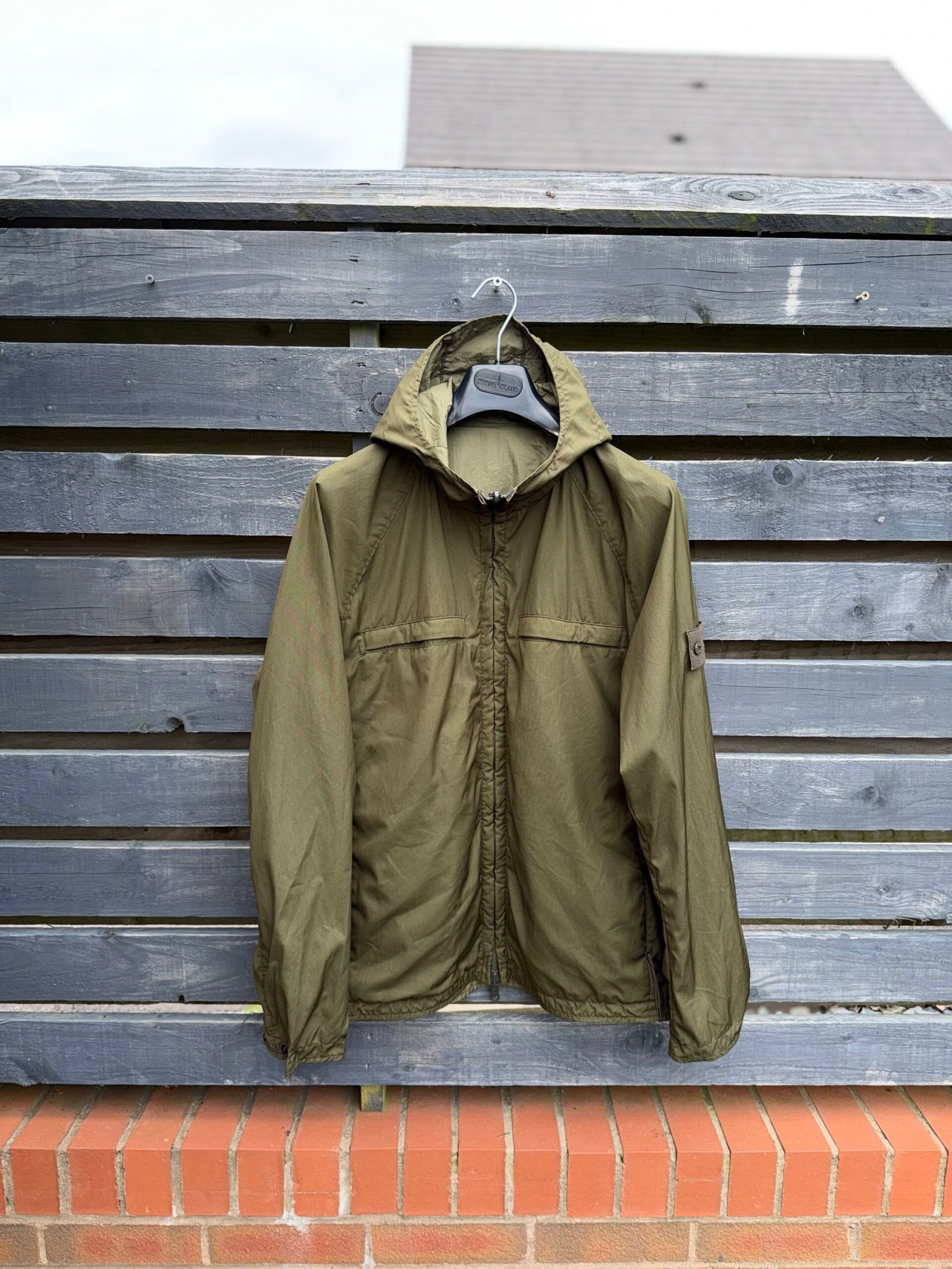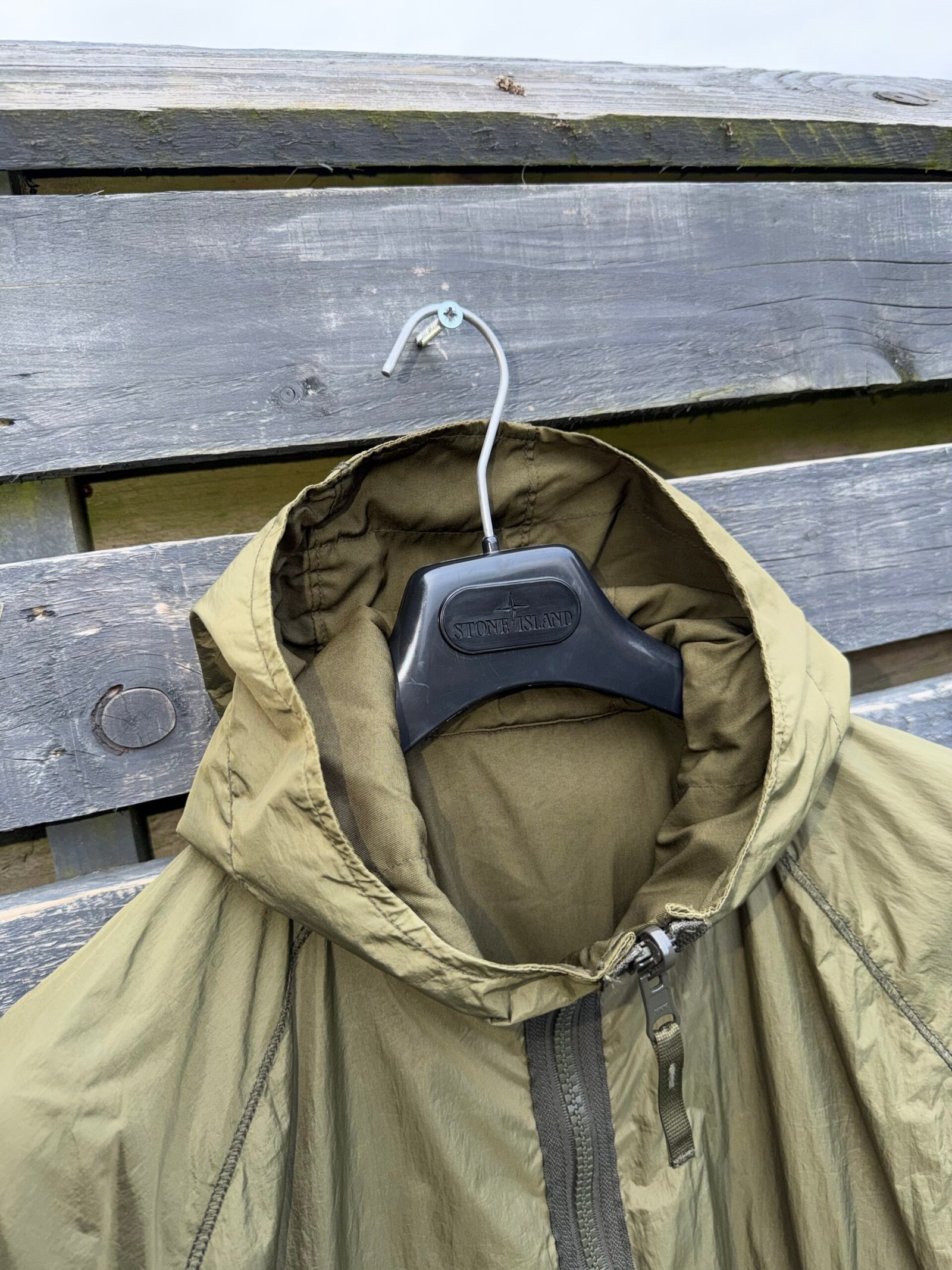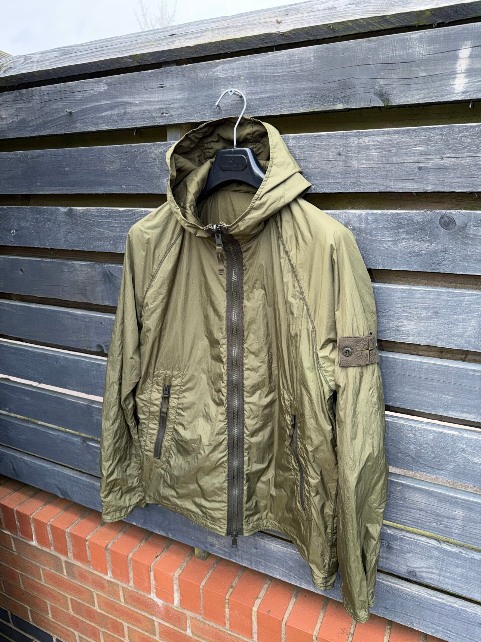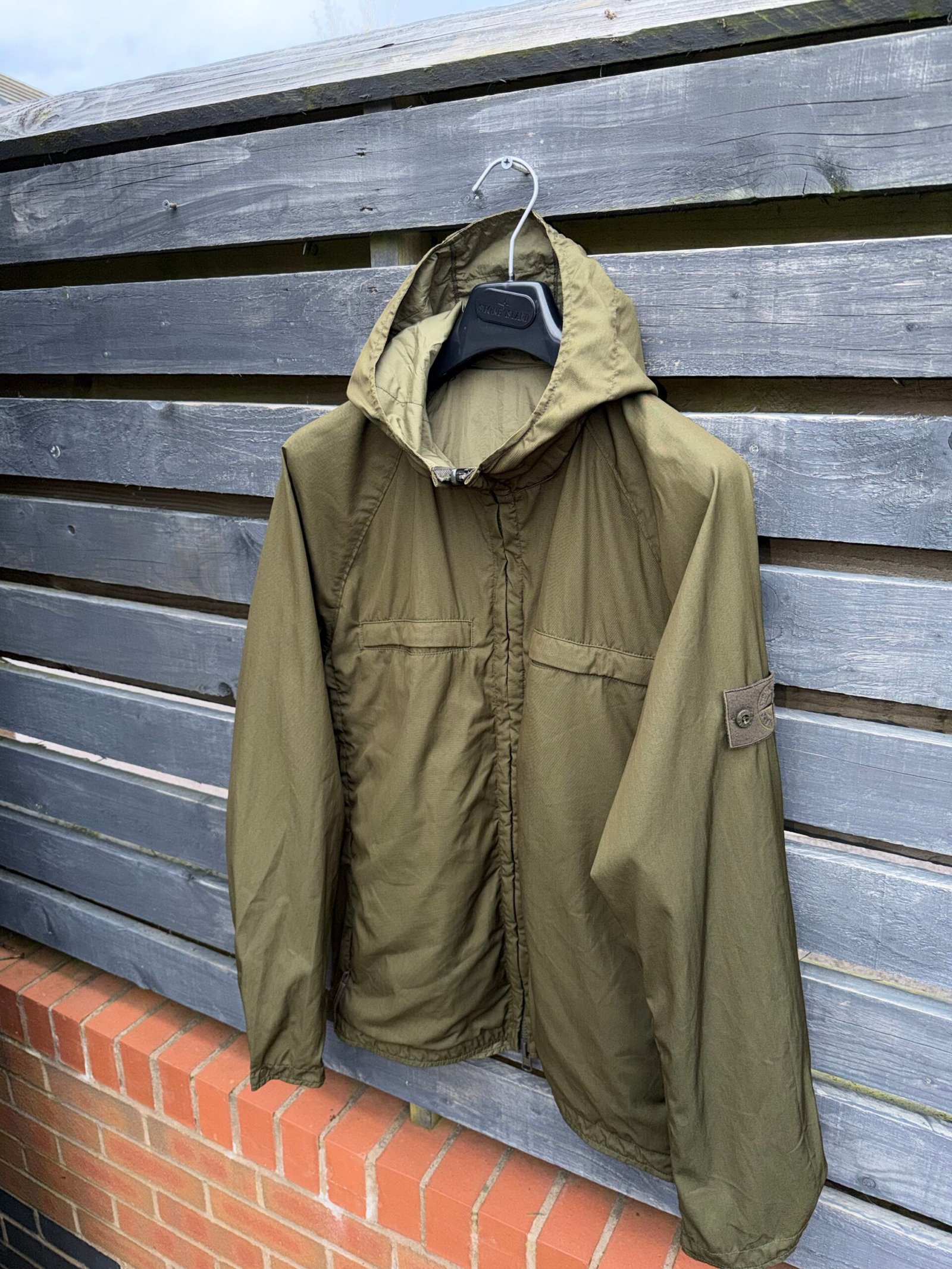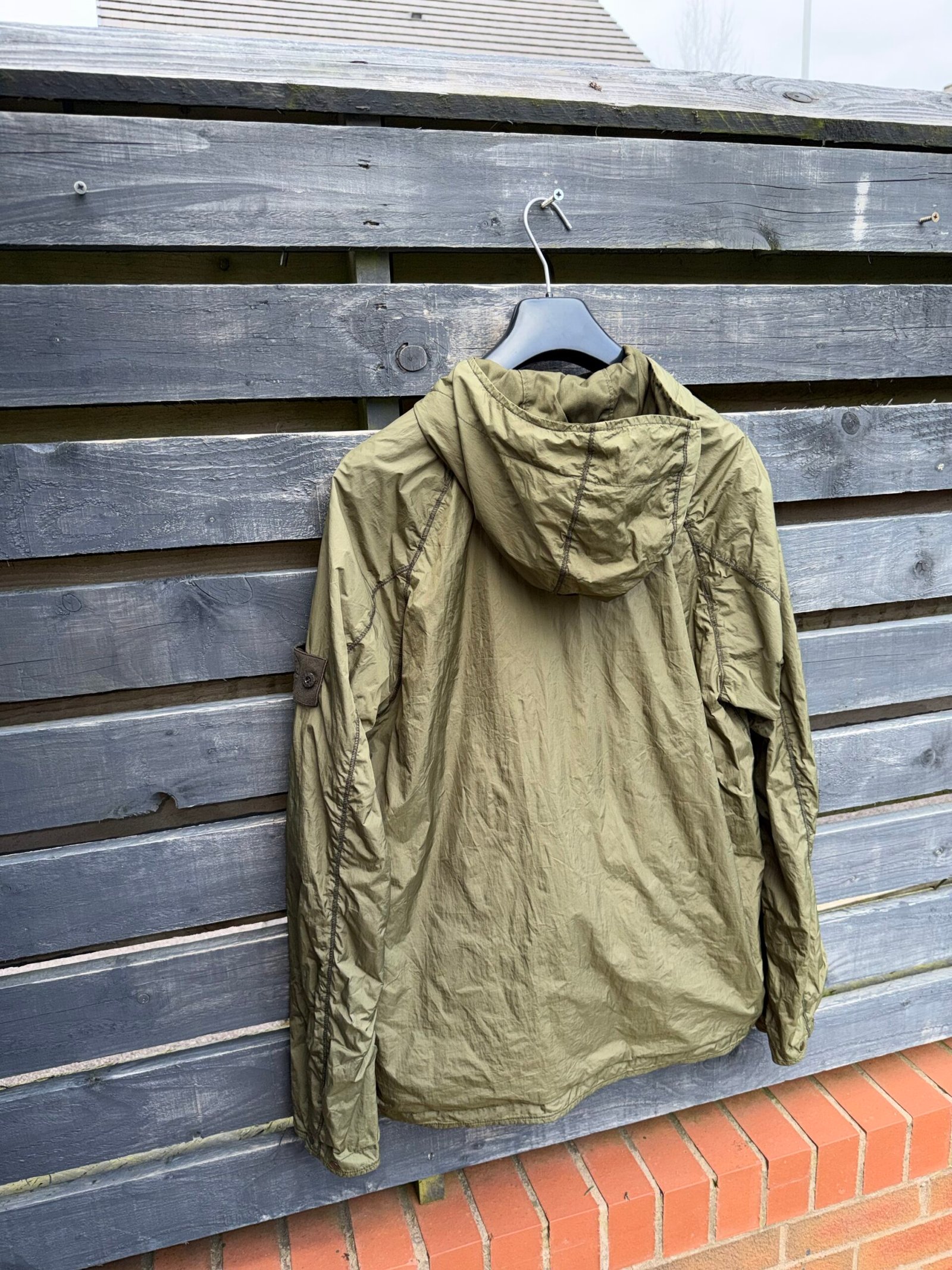 Stone Island Reversible Ghost Piece Jacket – a unique technical jacket designed for versatility and style. Crafted with innovative fabrics, it features a fully reversible design allowing two distinct looks in one piece, with subtle tonal detailing and functional construction. Finished with the iconic Stone Island compass badge, it perfectly balances performance, utility, and contemporary casualwear aesthetics. A rare and highly sought-after piece for collectors and fans of the brand’s experimental outerwear. Immaculate. Please Note this item is pre-owned and may show minor signs of wear.