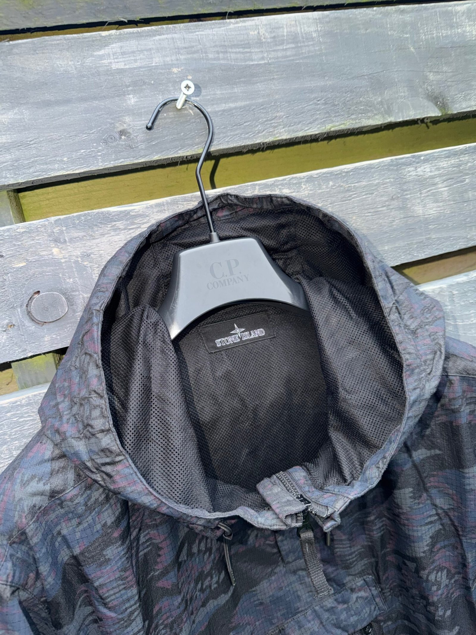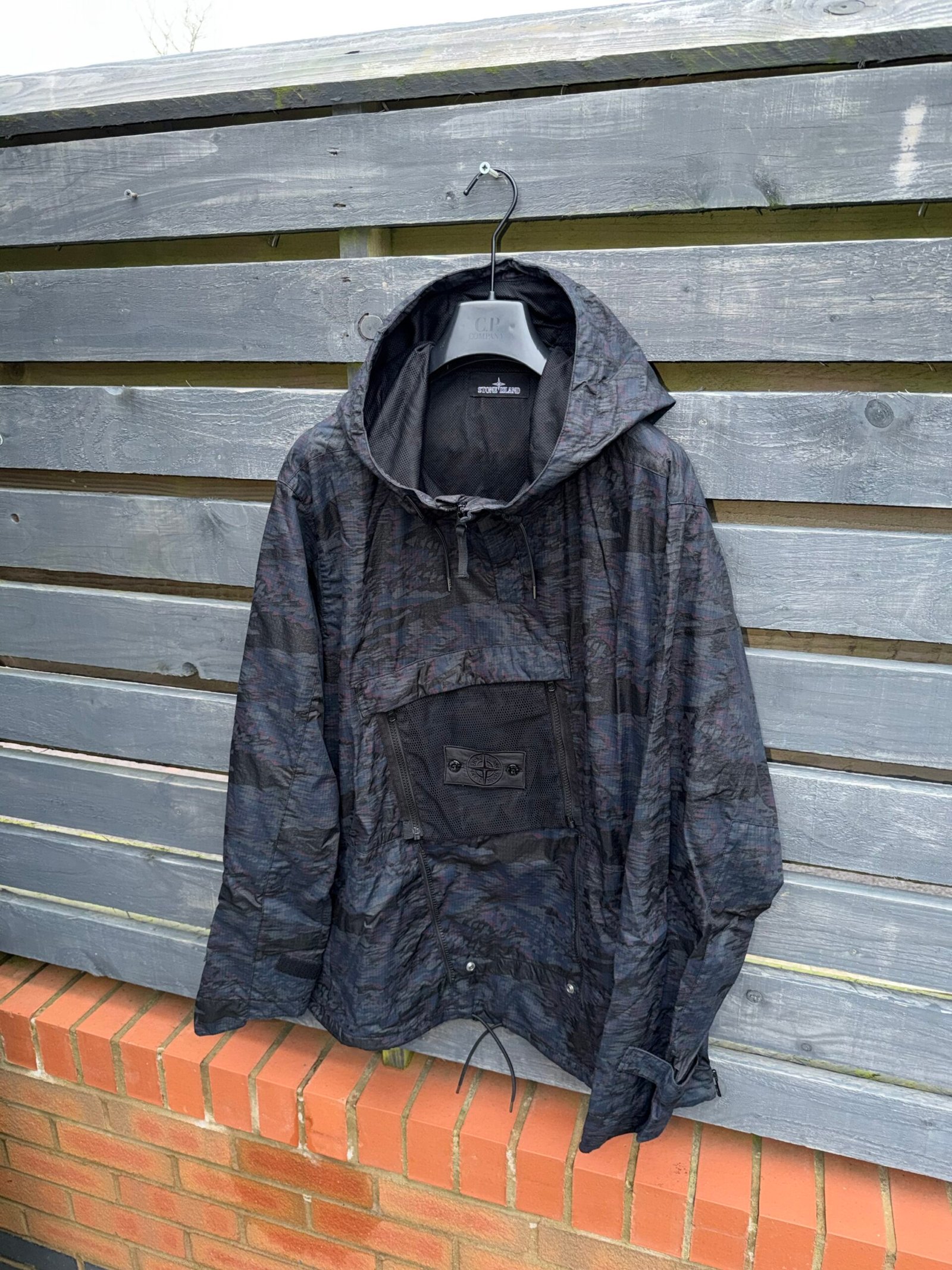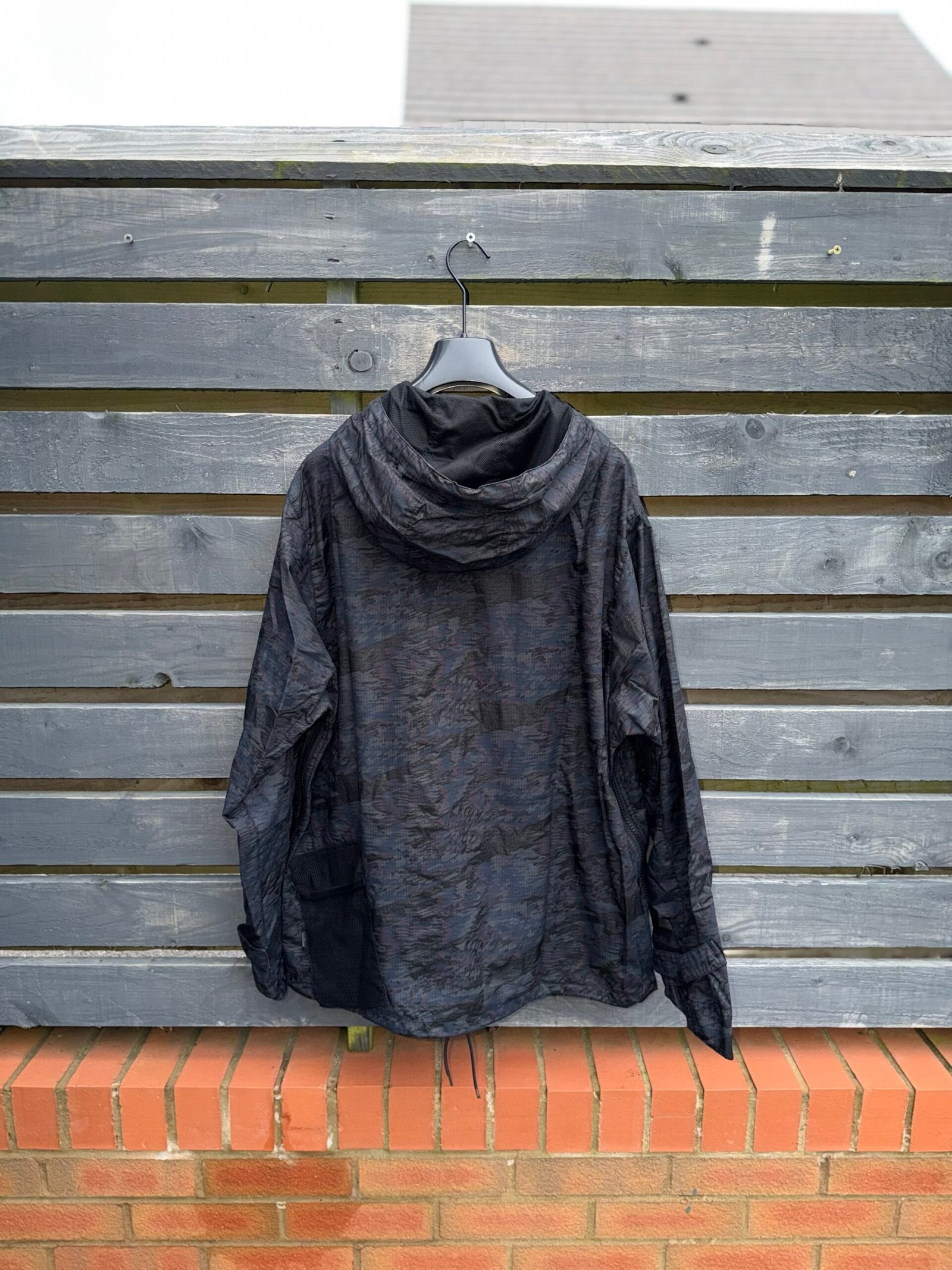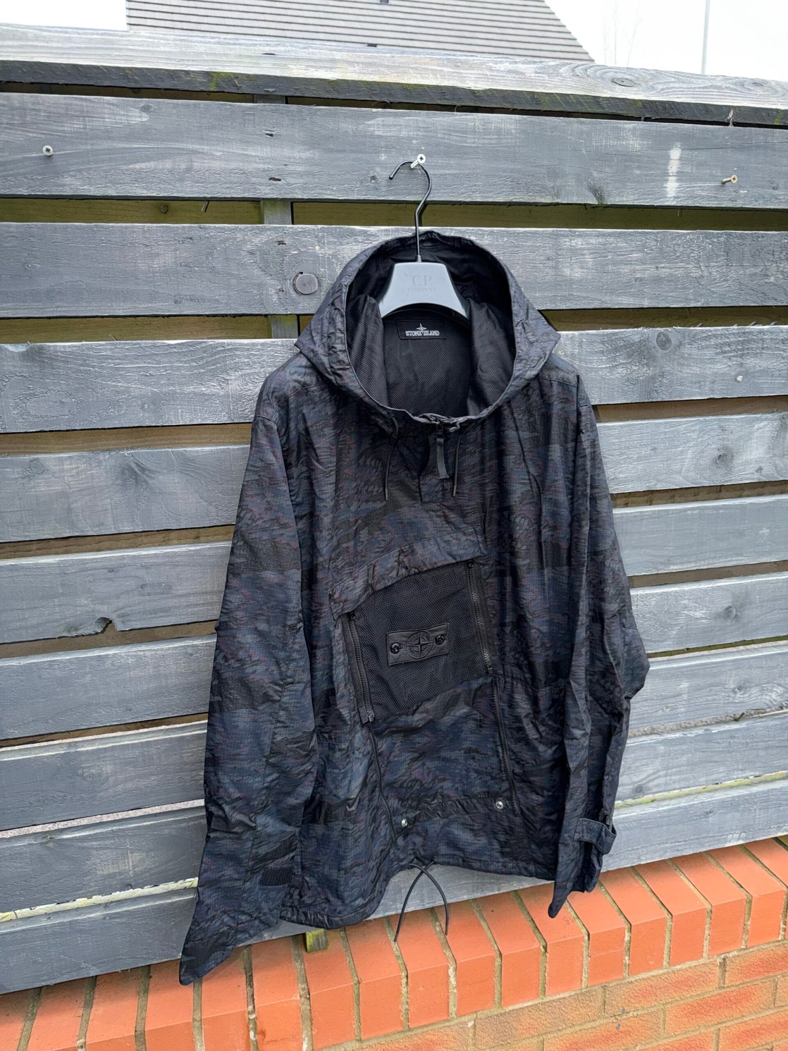 Stone Island Shadow Project DPM Jacquard Smock — a technical outer layer built for function and form. Crafted in an intricate jacquard fabric with a tonal DPM camo pattern, it features a structured smock silhouette, adjustable hood, and utilitarian detailing throughout. Lightweight yet protective, this piece blends military influence with cutting-edge Italian design for a sharp, understated finish. Very good condition. Note this item is pre-owned and may show minor signs of wear.