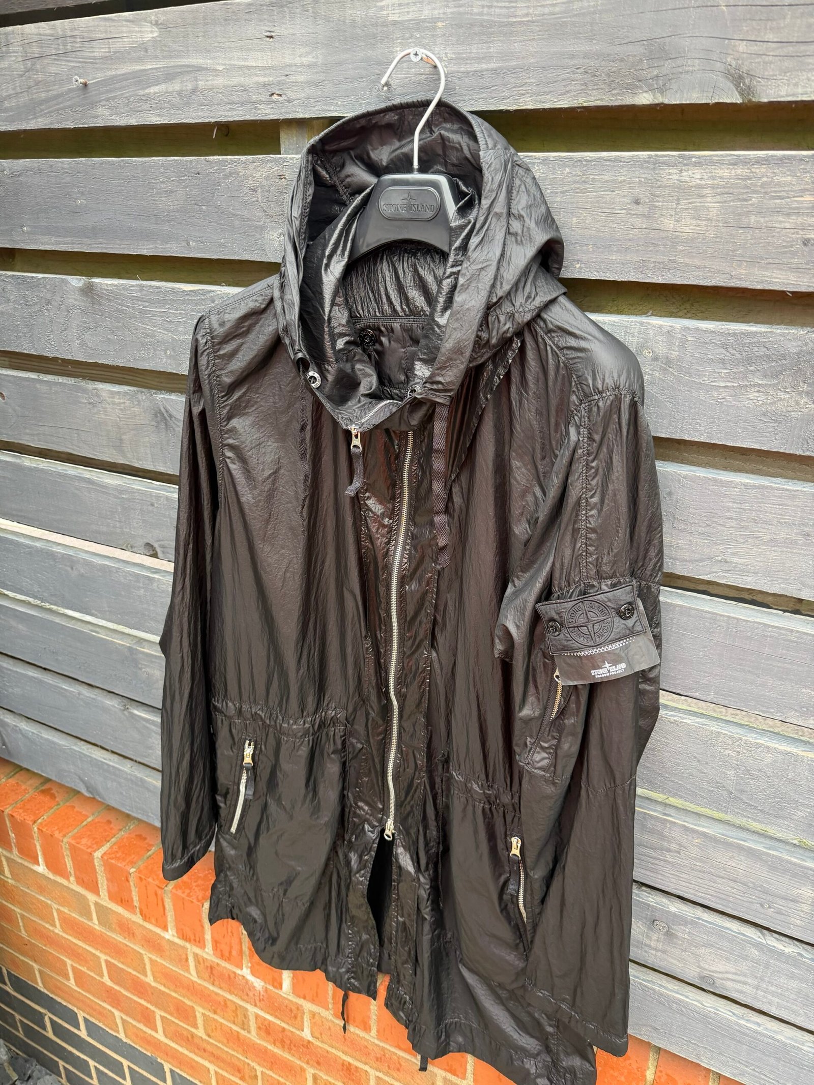 The Lucid Ultralight Parka from Stone Island’s SS17 Shadow Project collection is a standout piece built for performance and modern urban style. Crafted from an ultra-light, translucent nylon with a distinctive “lucid” finish, it delivers exceptional breathability while maintaining weather-resistant protection. Featuring ergonomic panel construction, adjustable hood, and signature Shadow Project detailing, this parka blends technical innovation with sleek, minimalist design. A rare and highly sought-after piece for collectors and fans of cutting-edge outerwear.