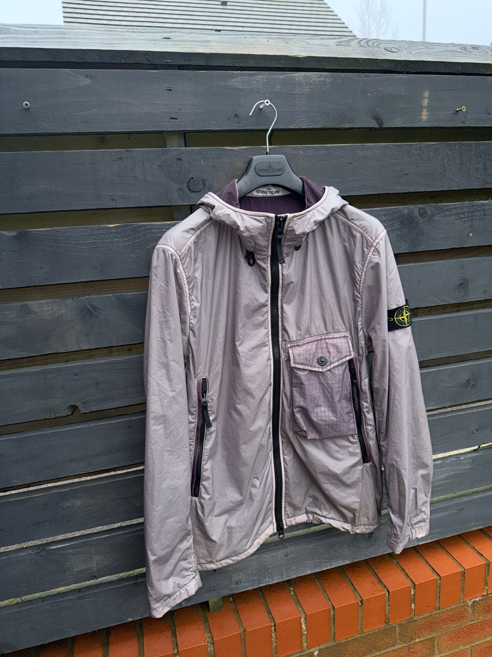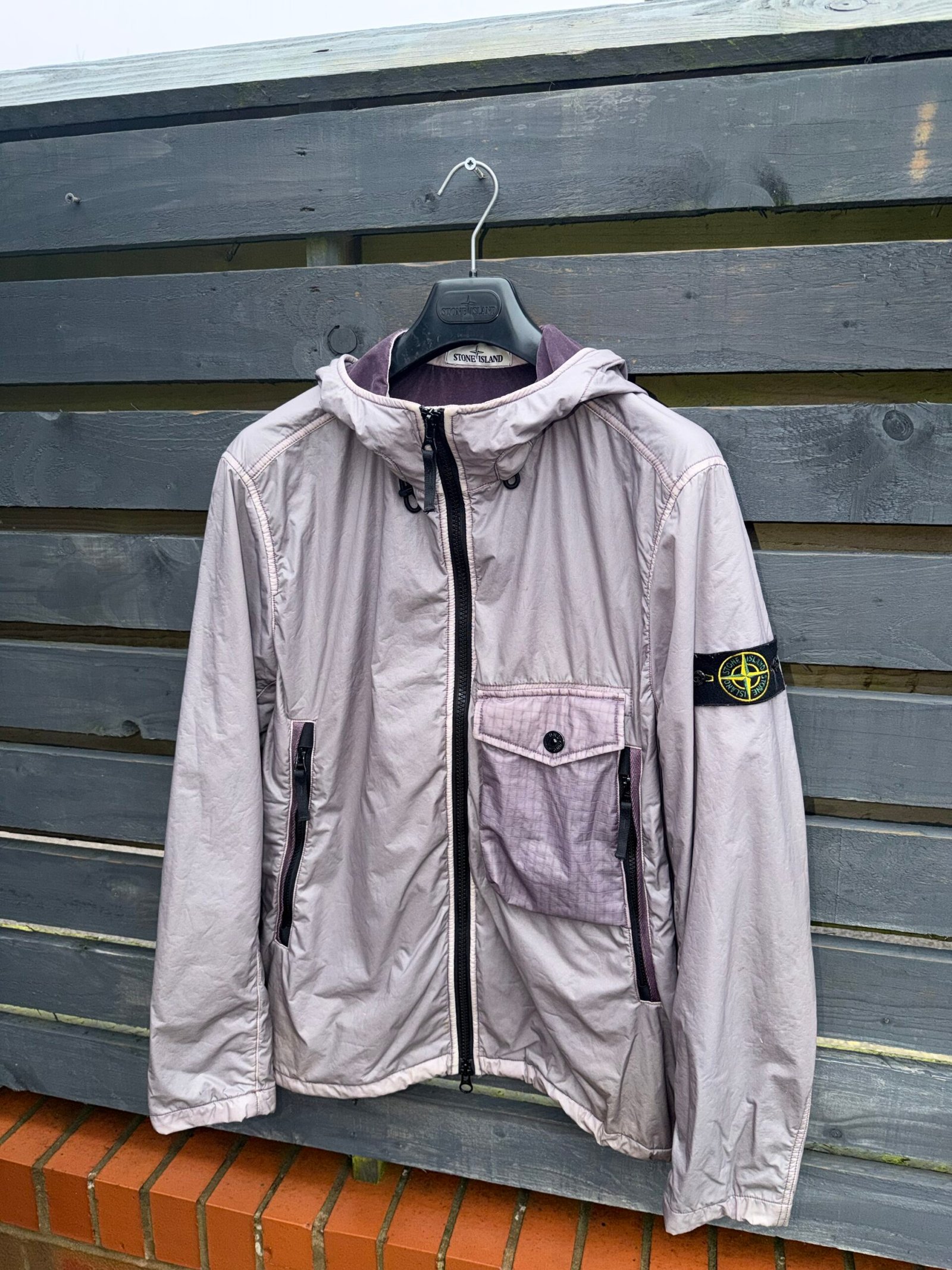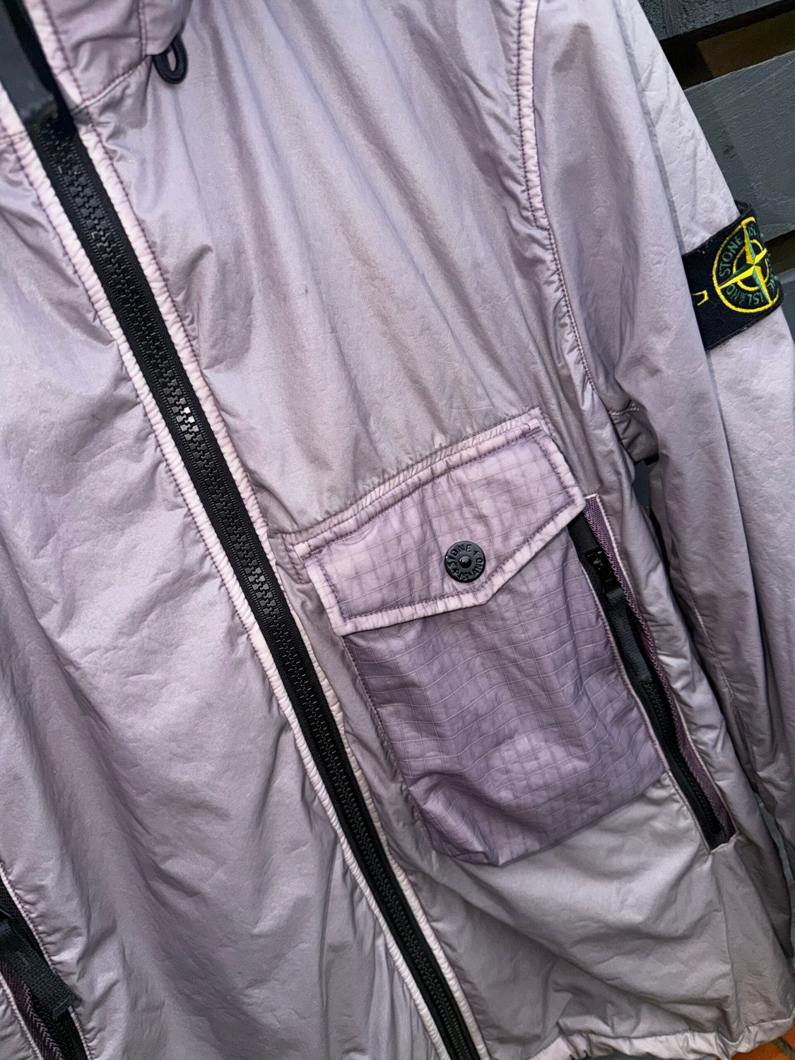 Stone Island Single Pocket Lamy Flock jacket in a sleek, technical finish. Crafted from Lamy Flock fabric with a unique matte texture, it features a classic single chest pocket and the iconic Stone Island compass badge on the sleeve. Lightweight, water-resistant, and built for both function and street-ready style. Good condition. Please Note this item is pre-owned and may show minor signs of wear.